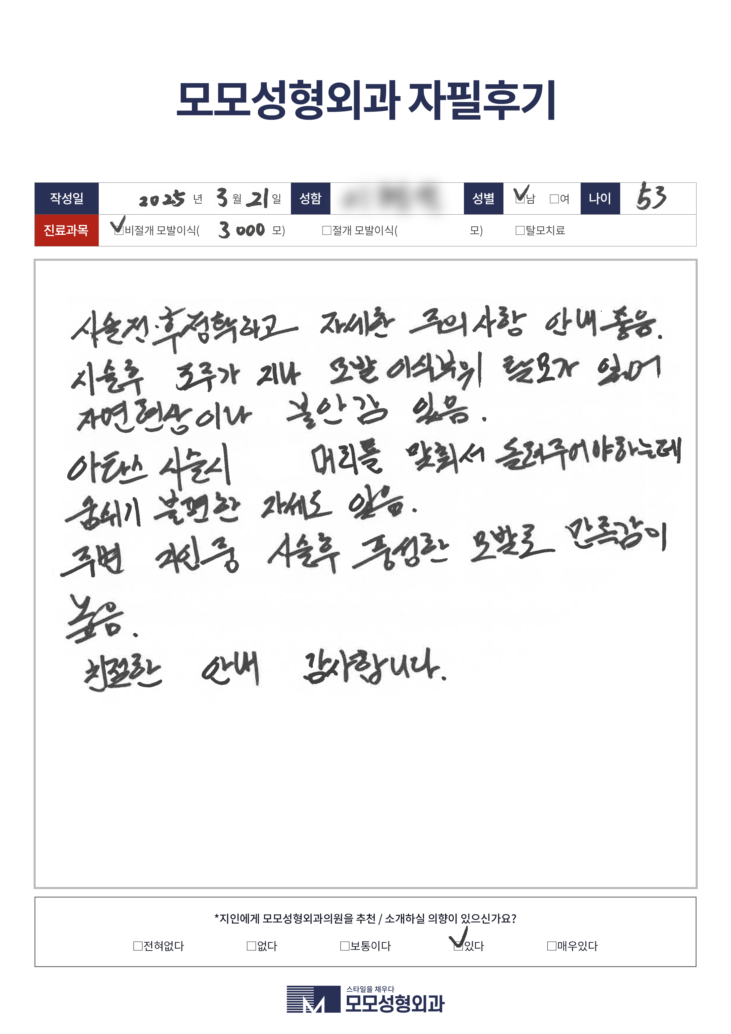 [50대]절개모발이식3000모, M자이마