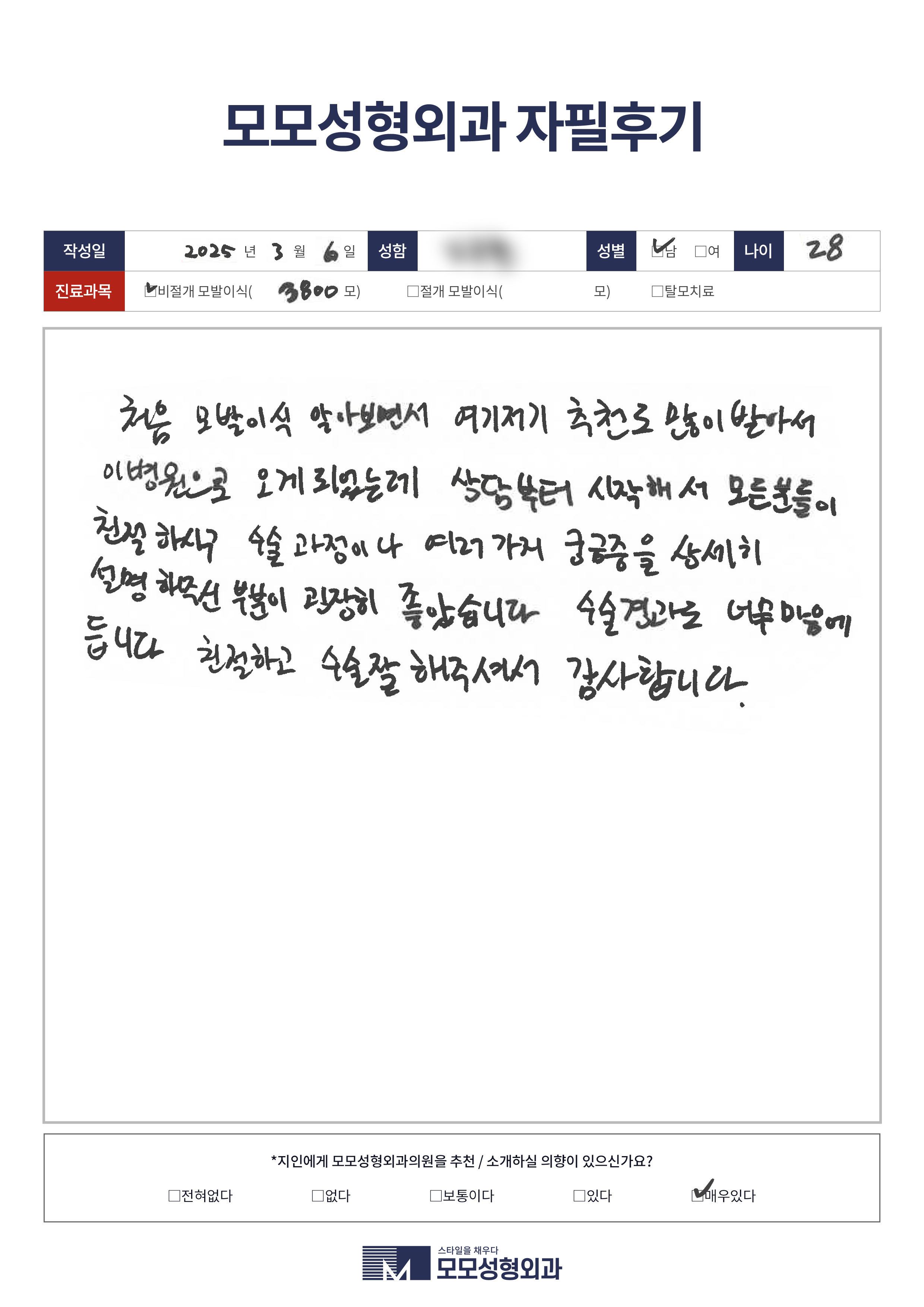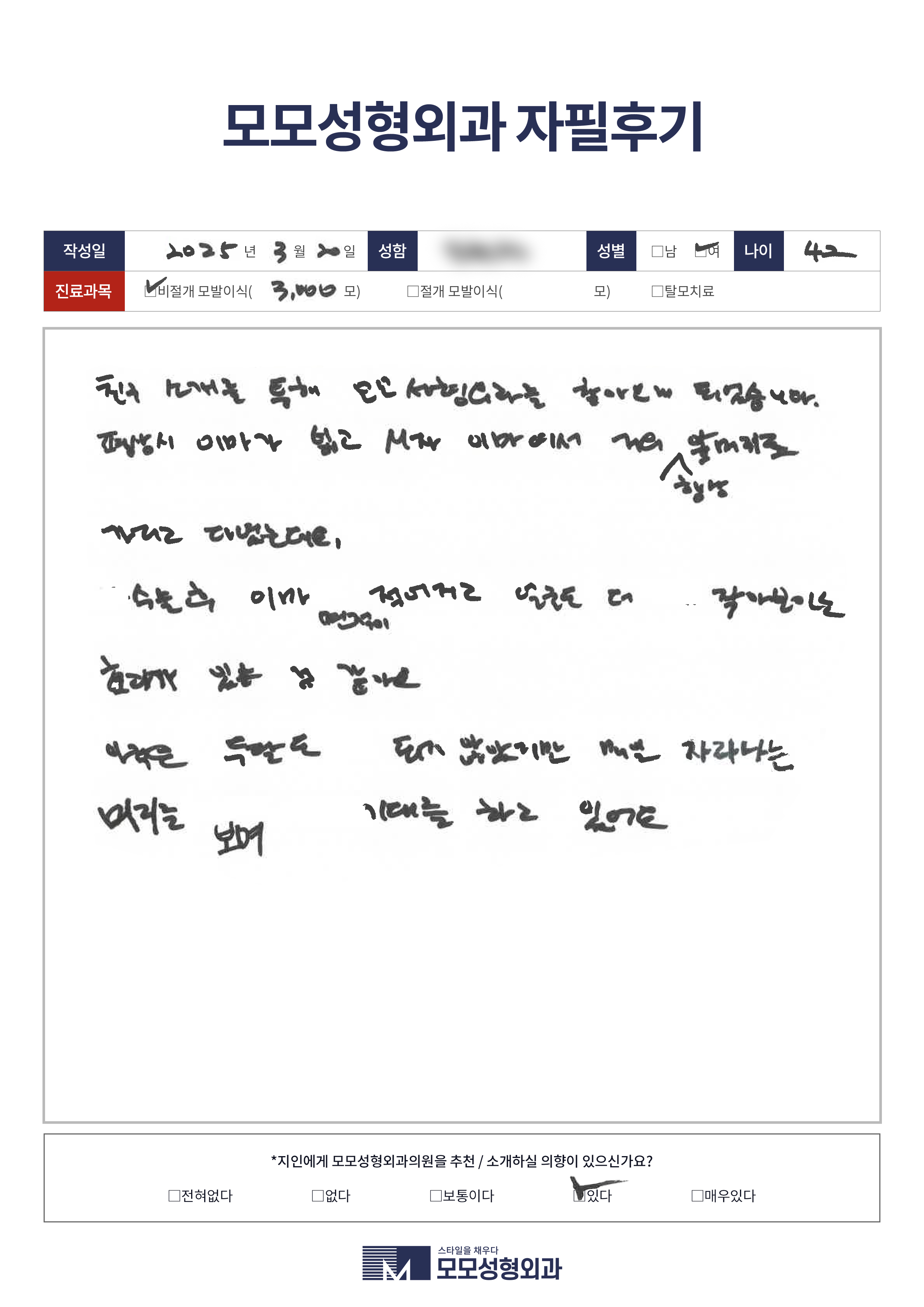 [20대]비절개모발이식3500모이상, M자이마