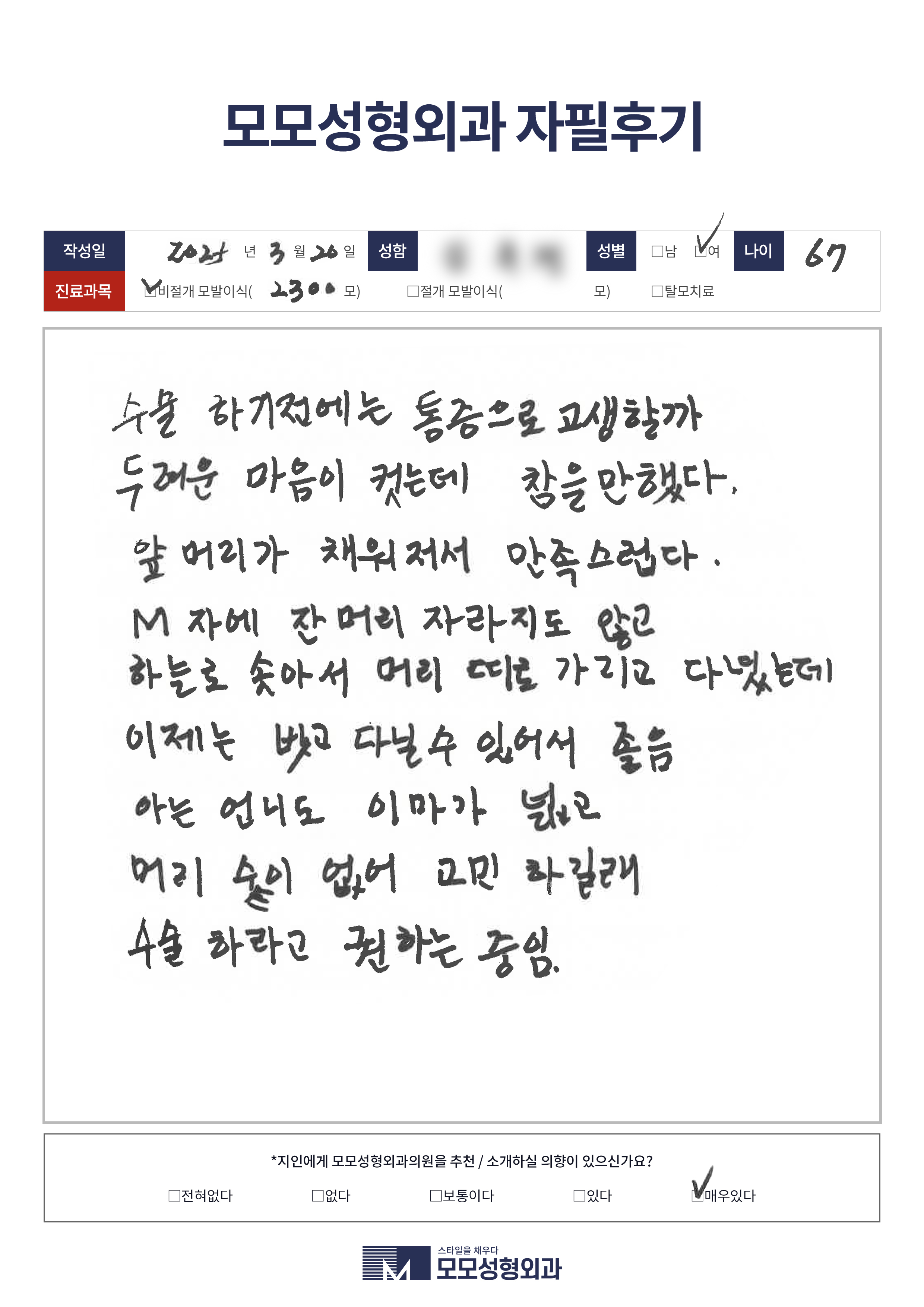 [20대]비절개모발이식1500모이상, M자이마