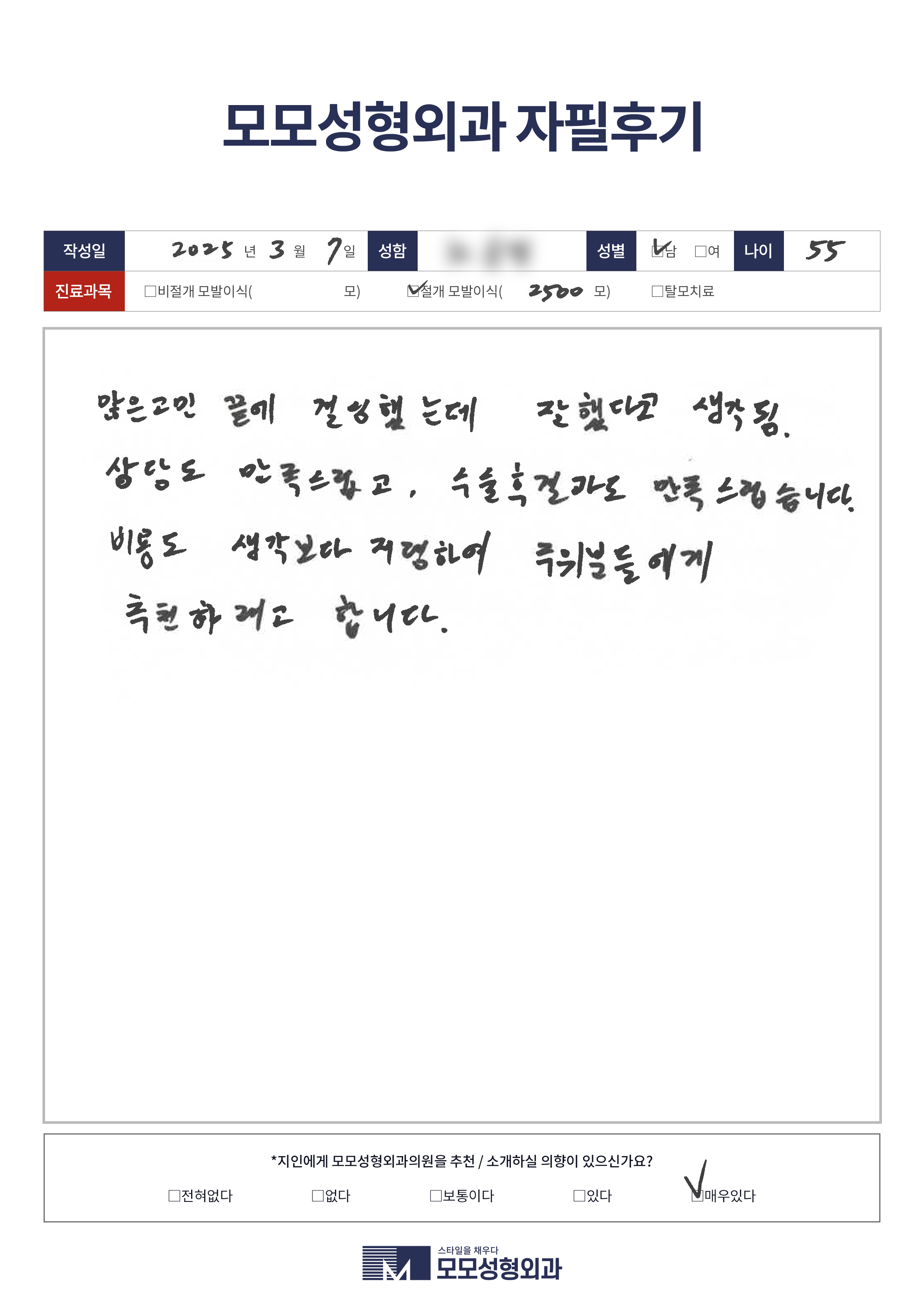 [50대]비절개모발이식2000모이상, 헤어라인