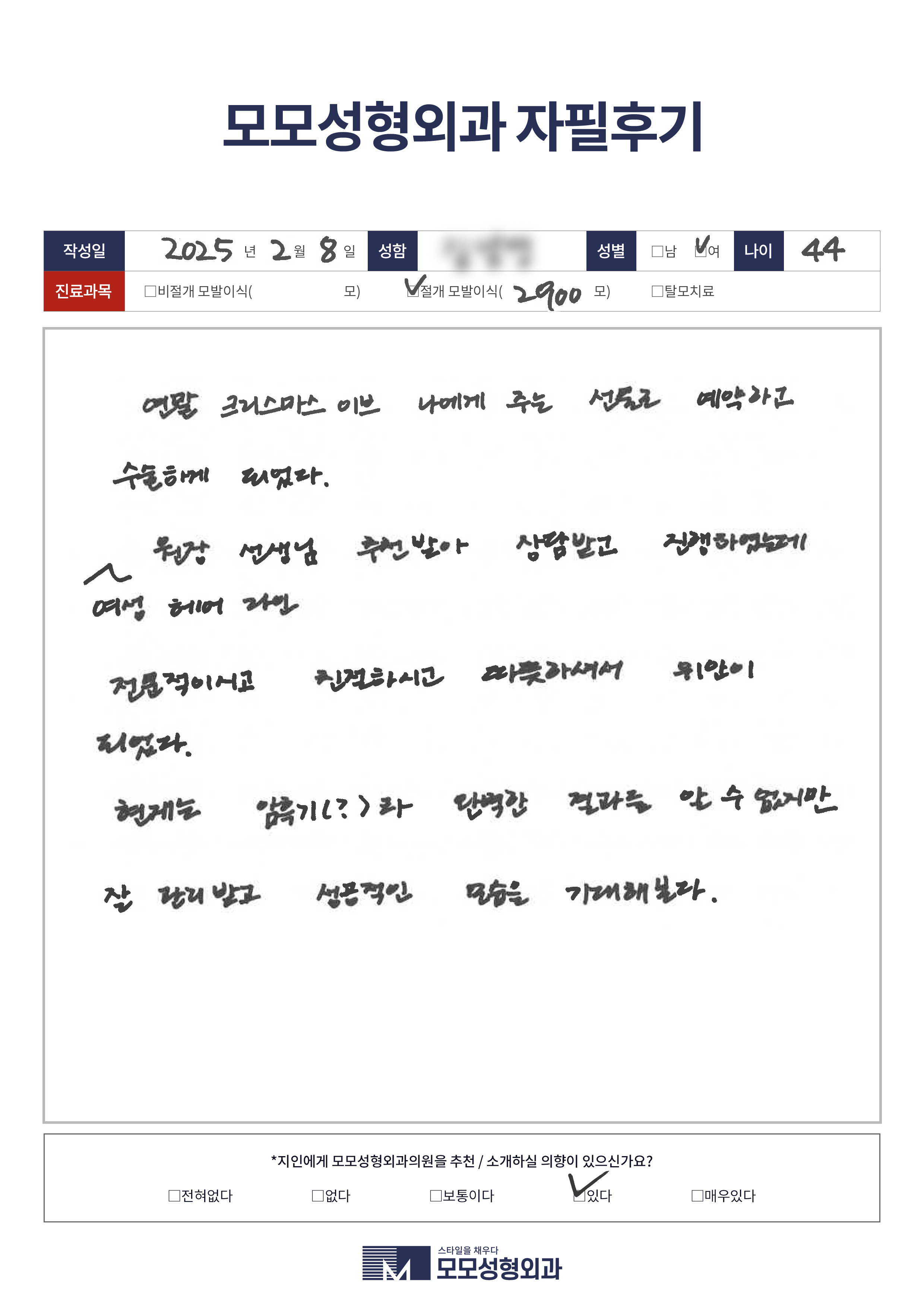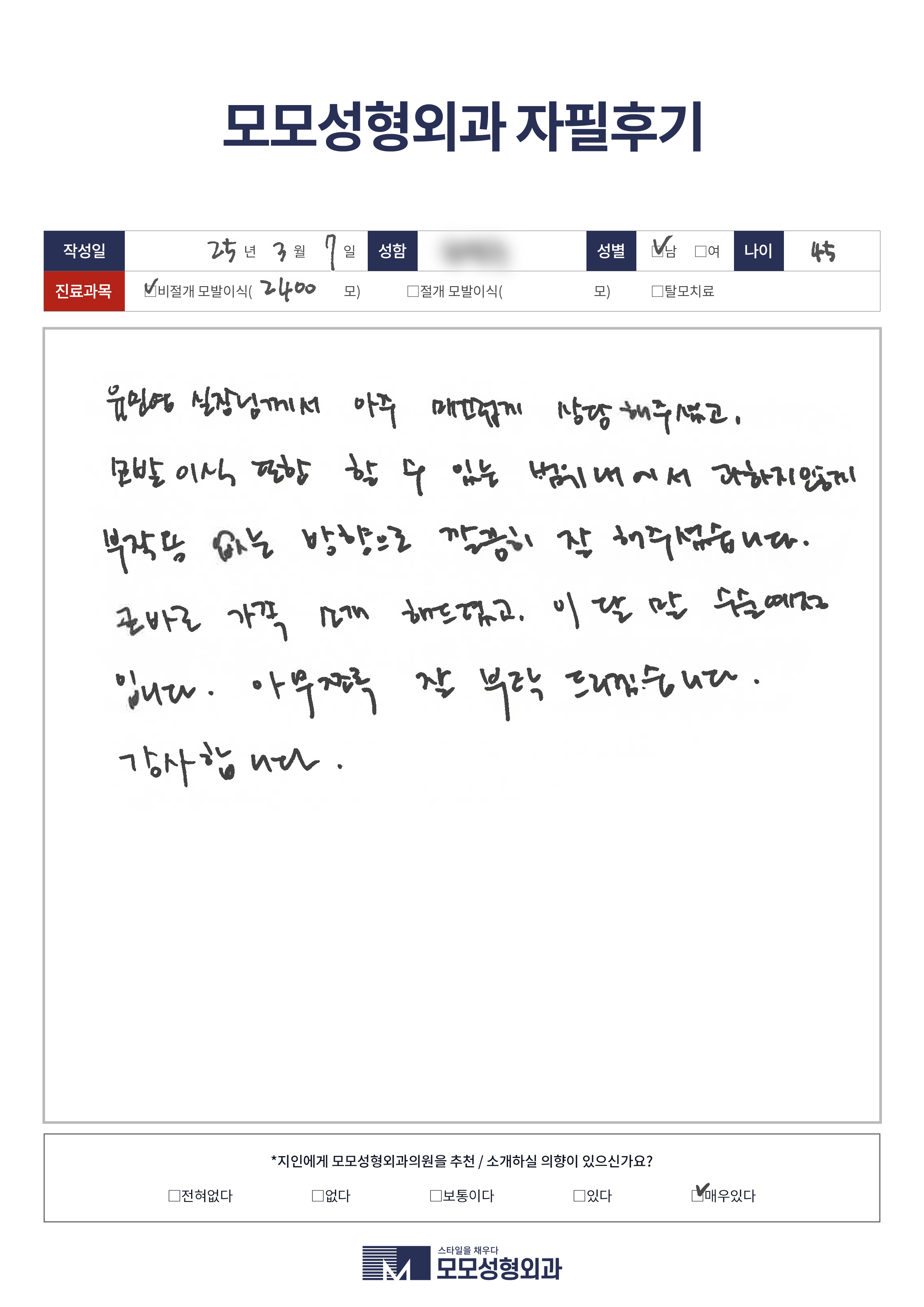 [40대]비절개모발이식3000모이상, 헤어라인
