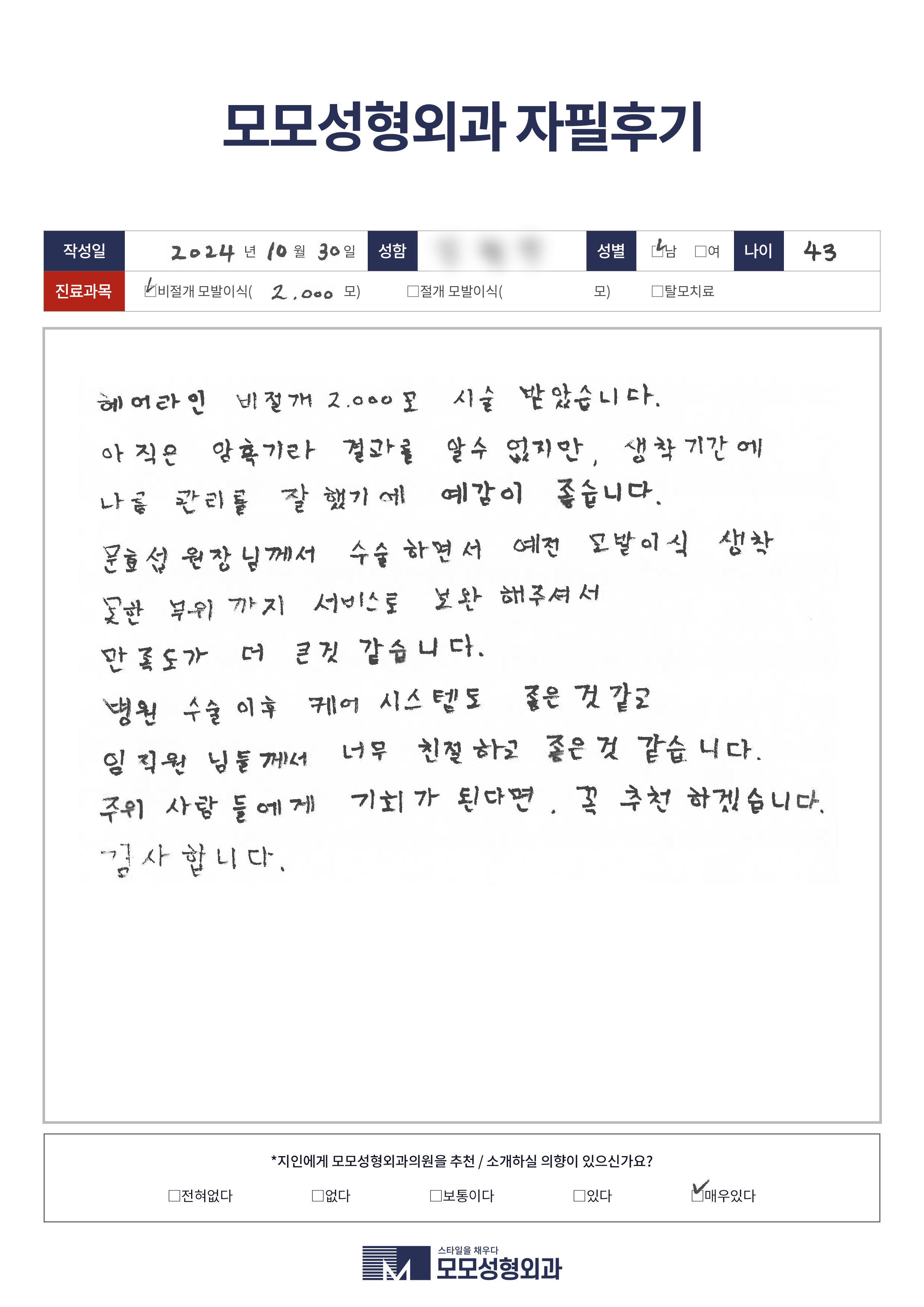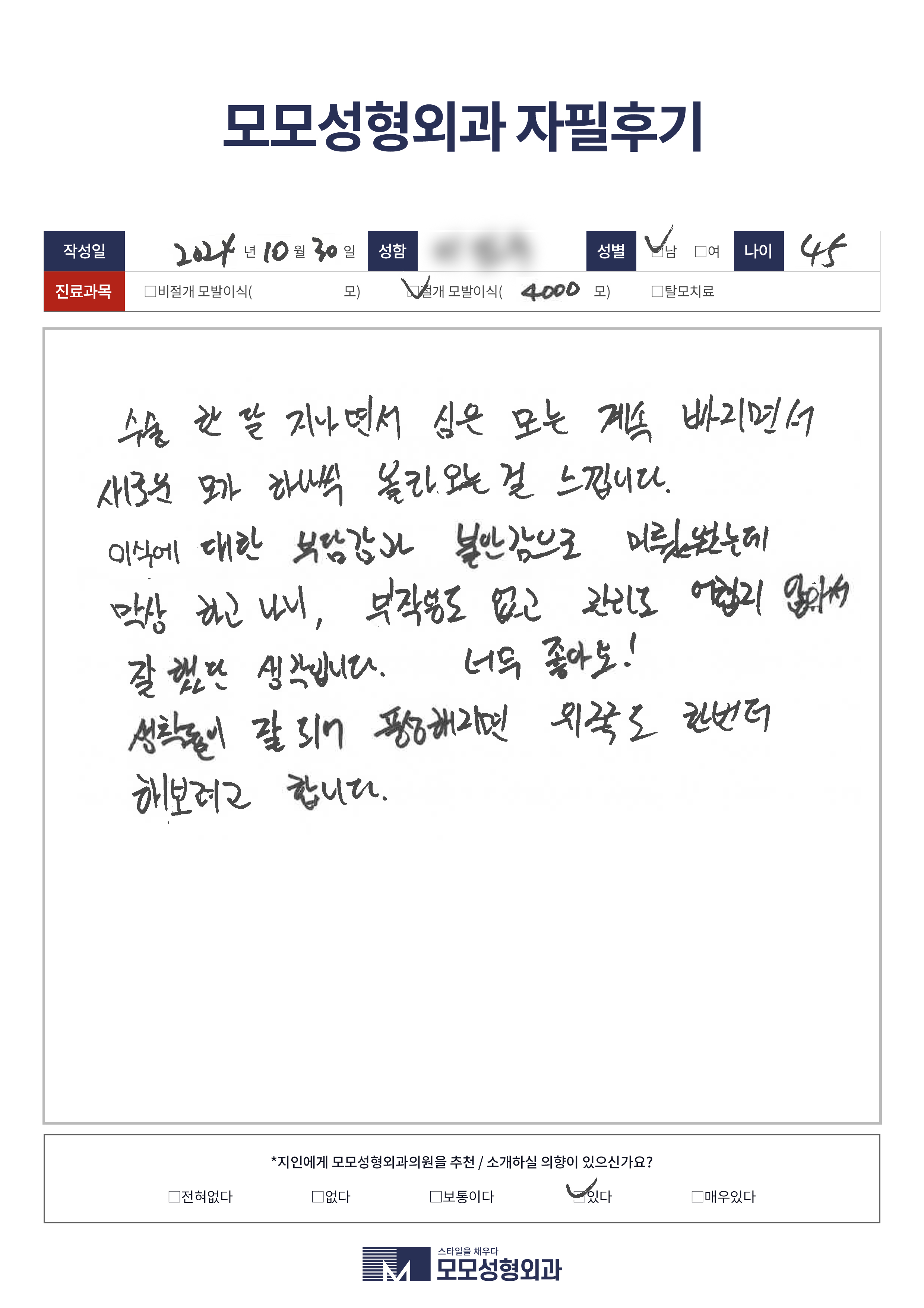 [40대]비절개모발이식2500모, M자이마