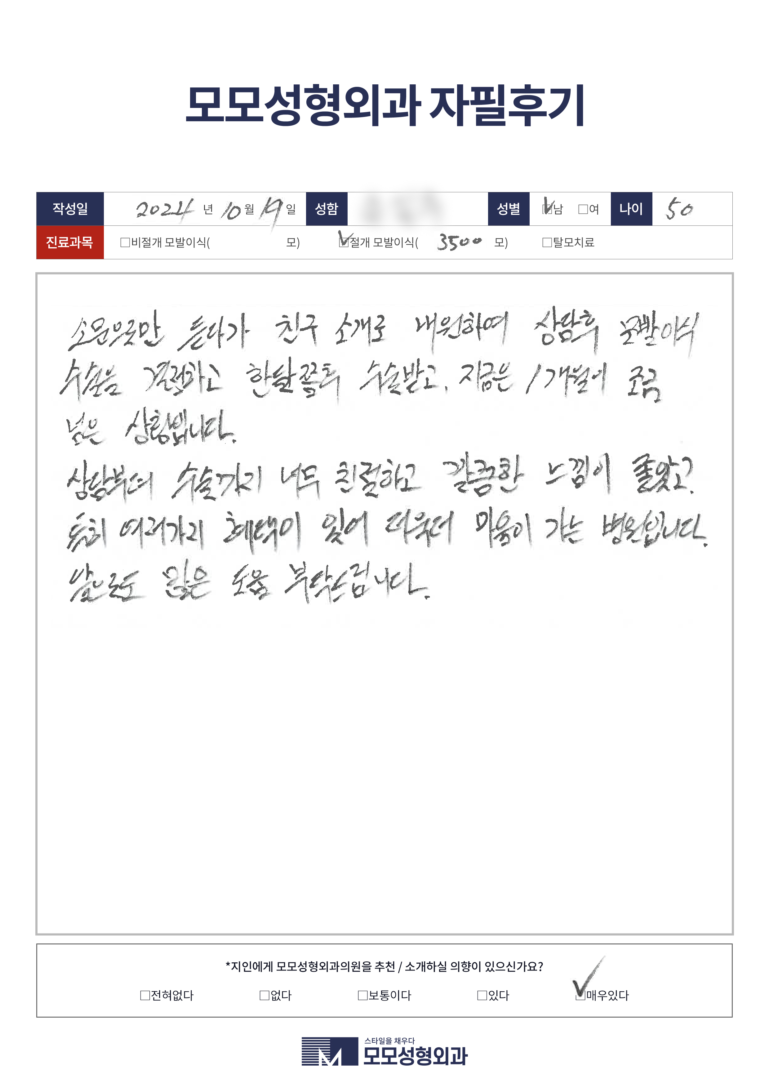 [50대이상]절개모발이식3500모, M자이마