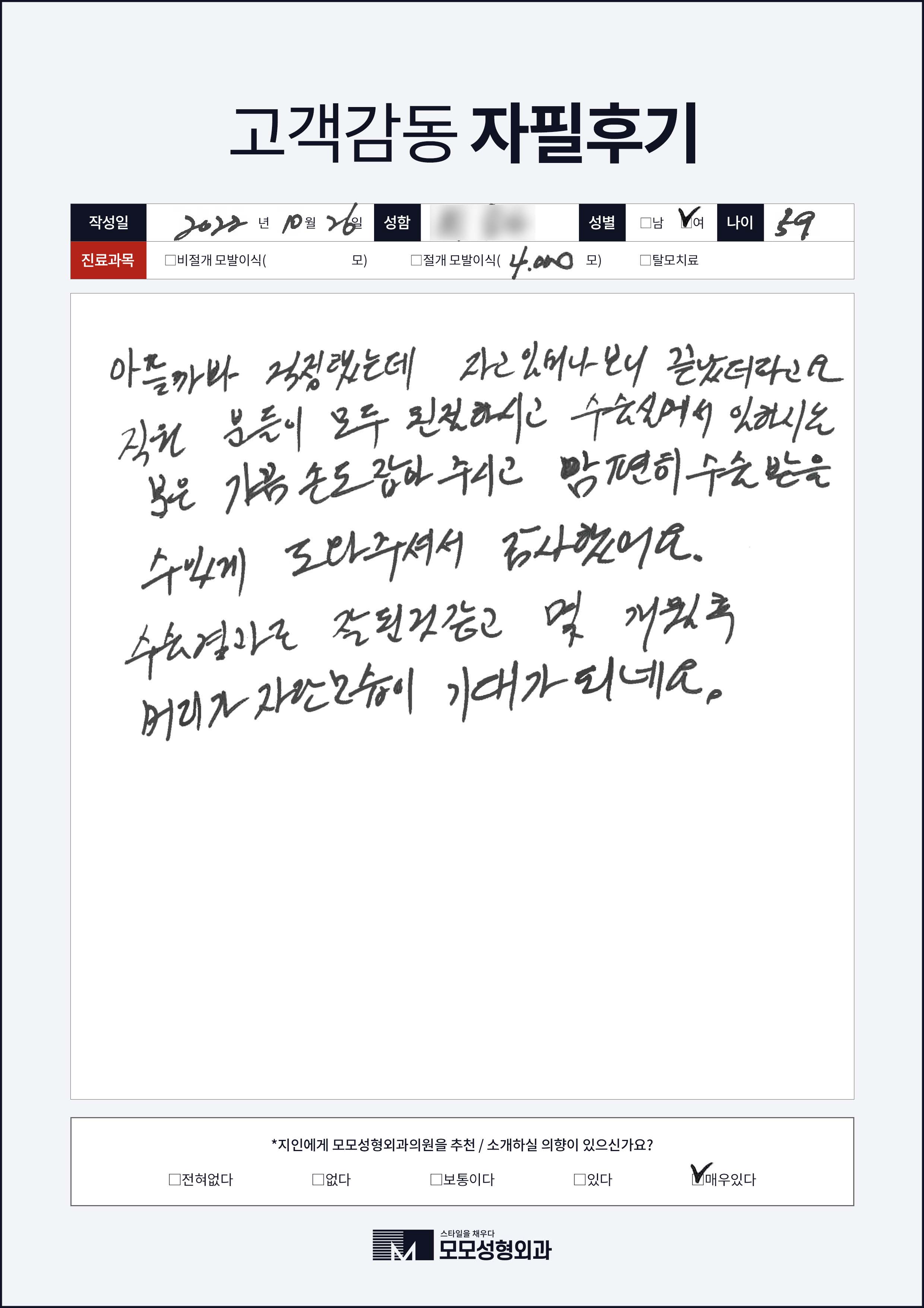 [50대이상]절개모발이식4000모이상, M자형이마