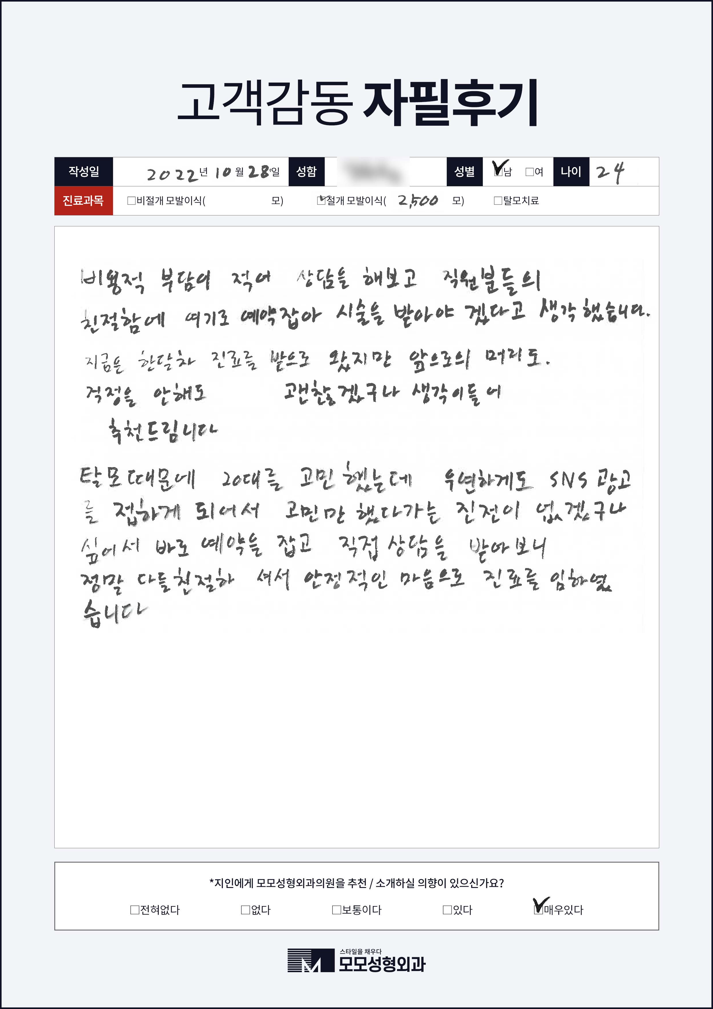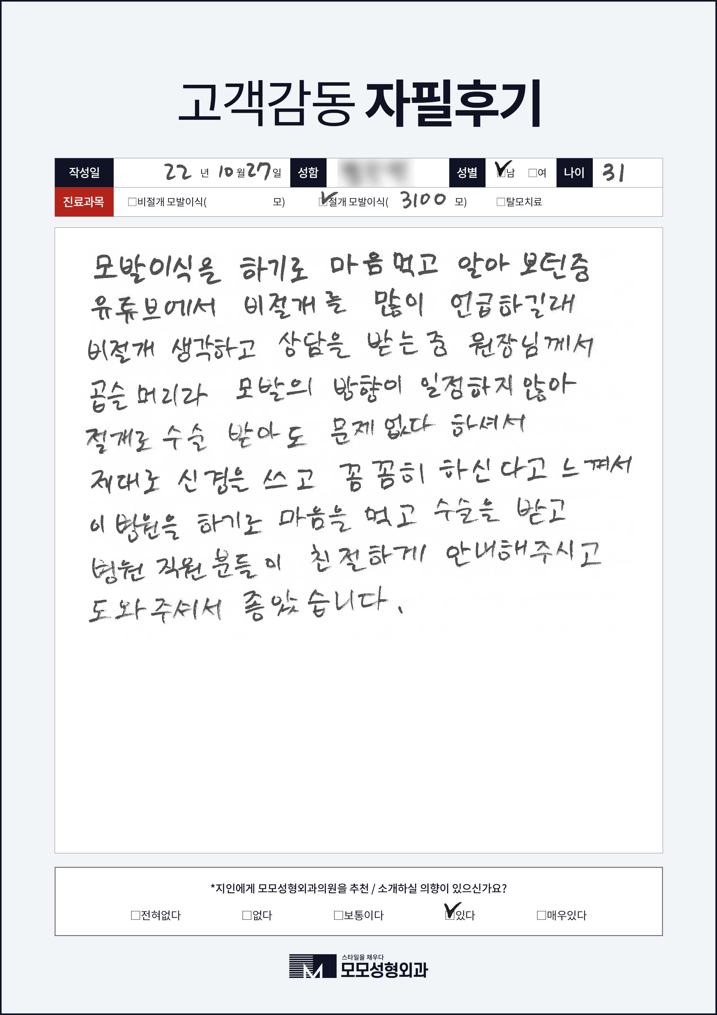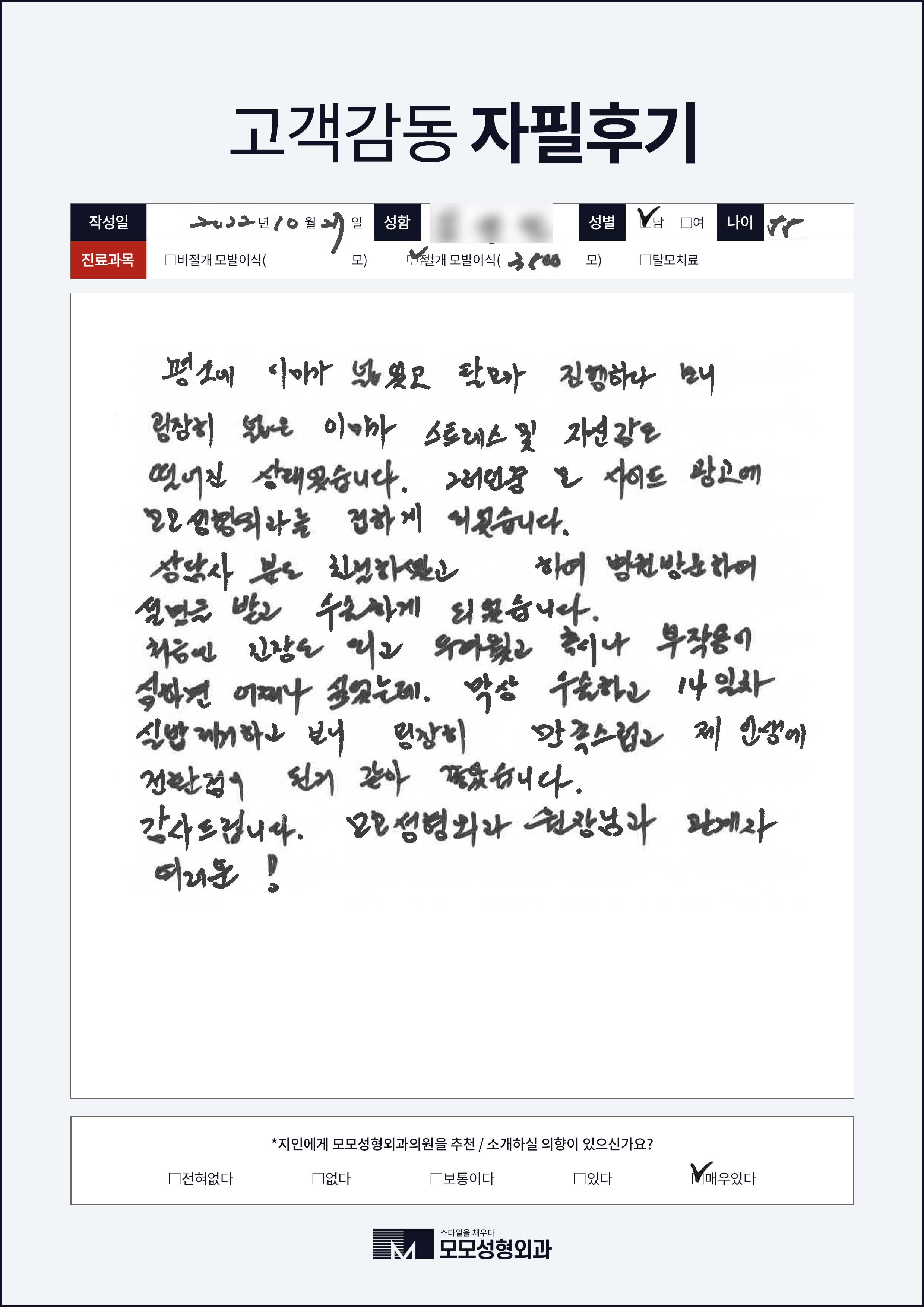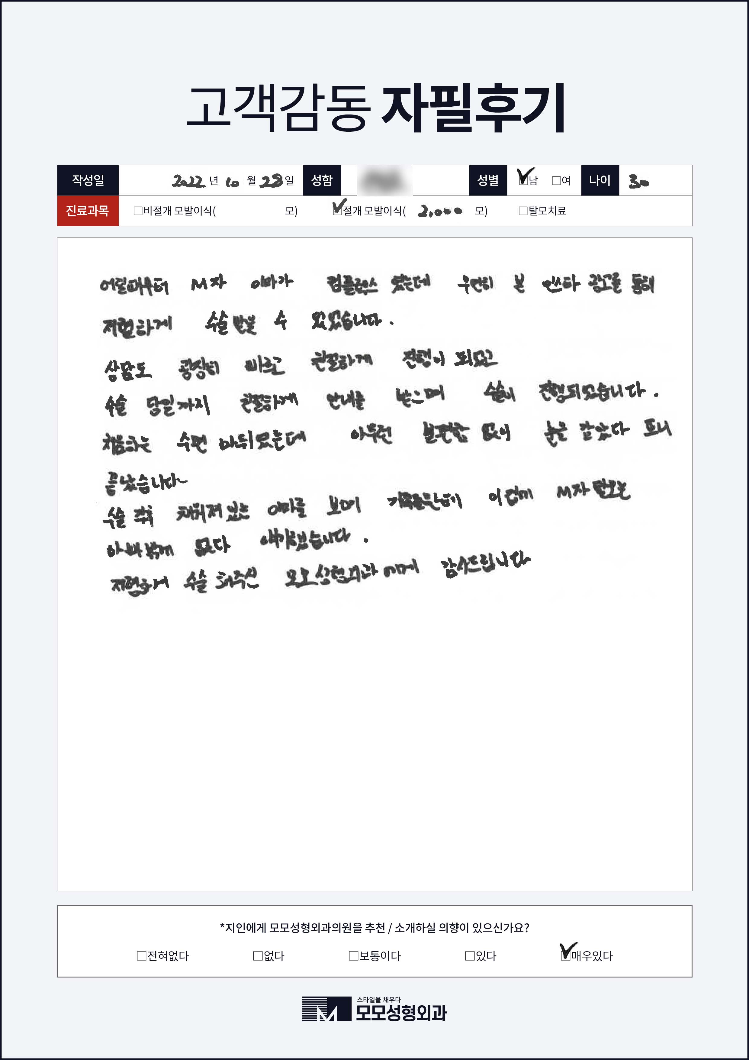 [30대]절개모발이식2000모, M자이마