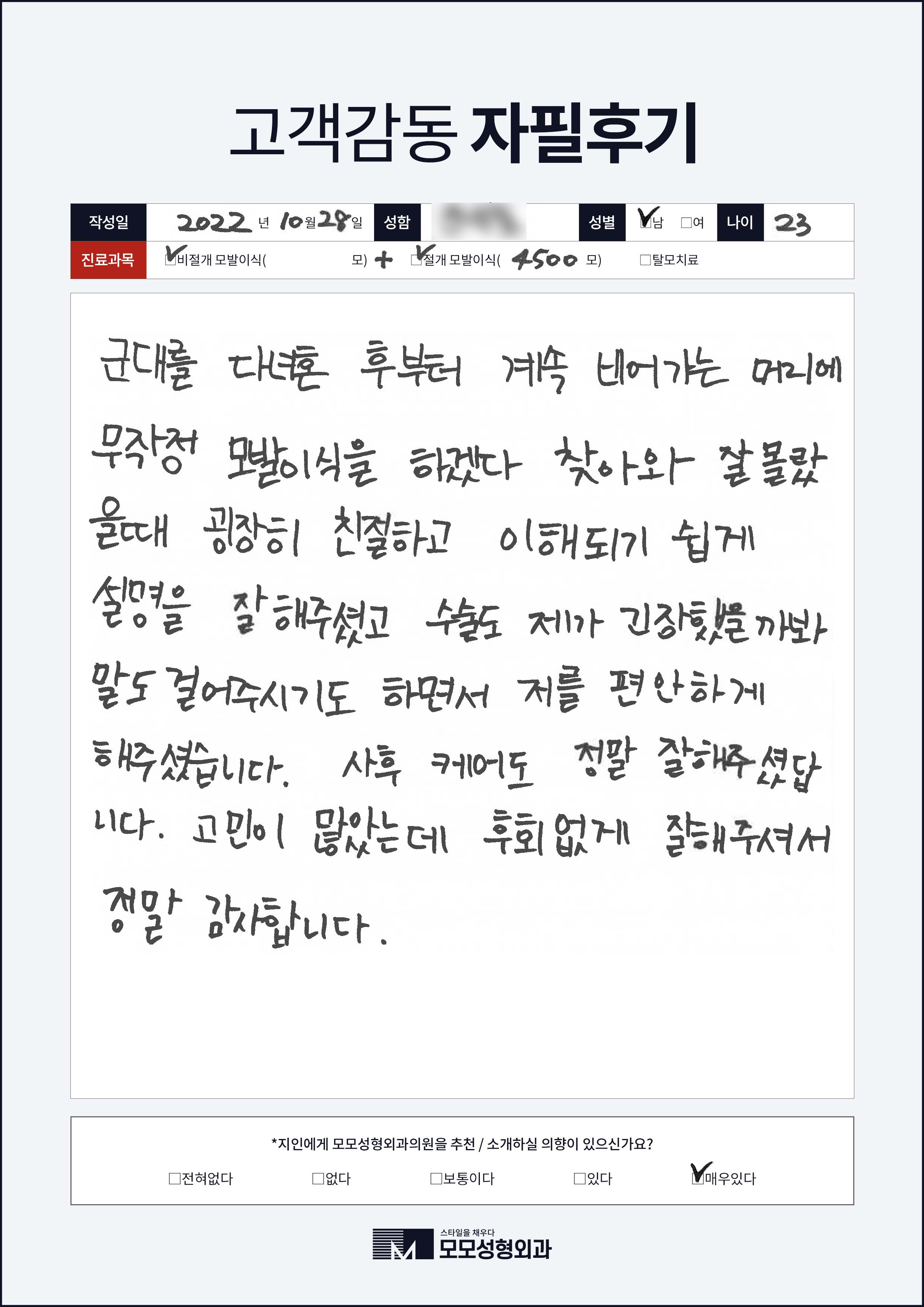 [20대]절개모발이식2000모, M자이마
