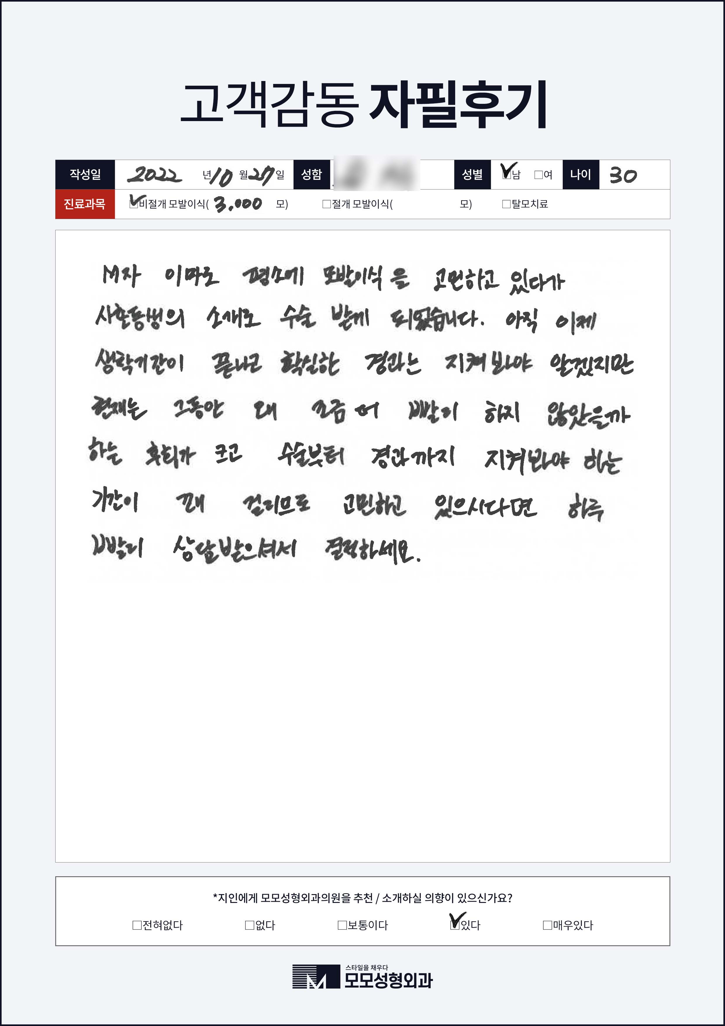 [30대]비절개모발이식3000모, M자이마