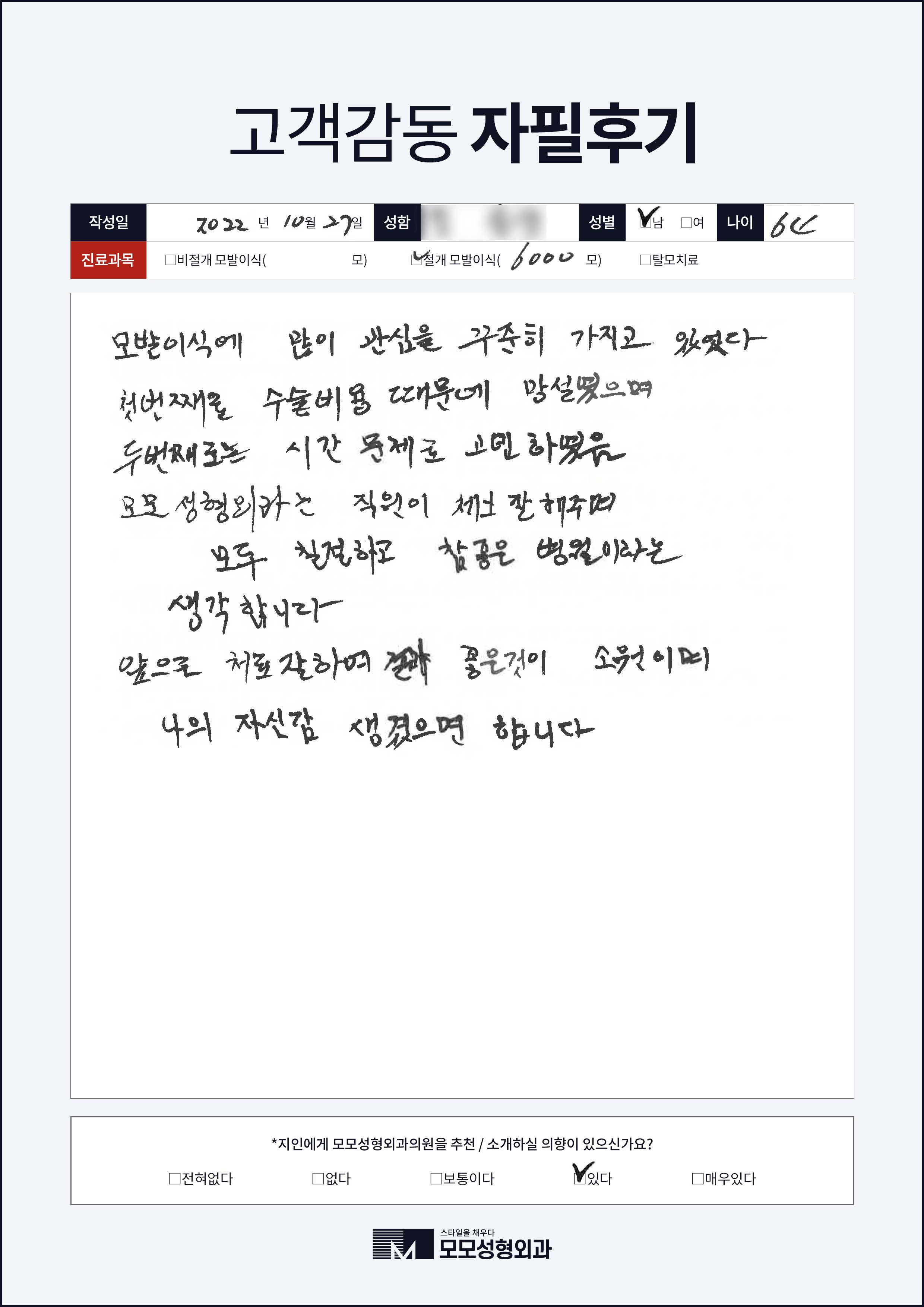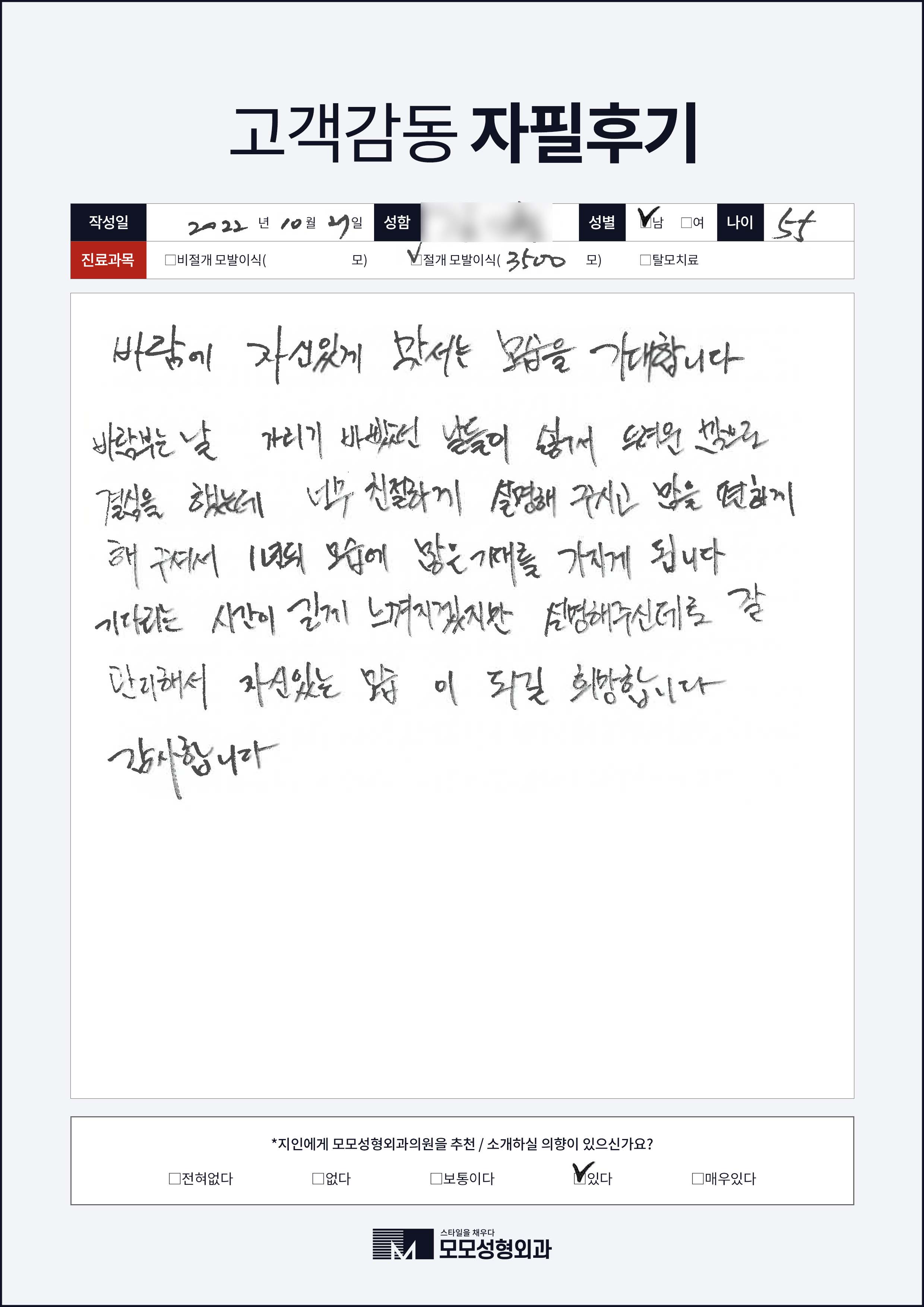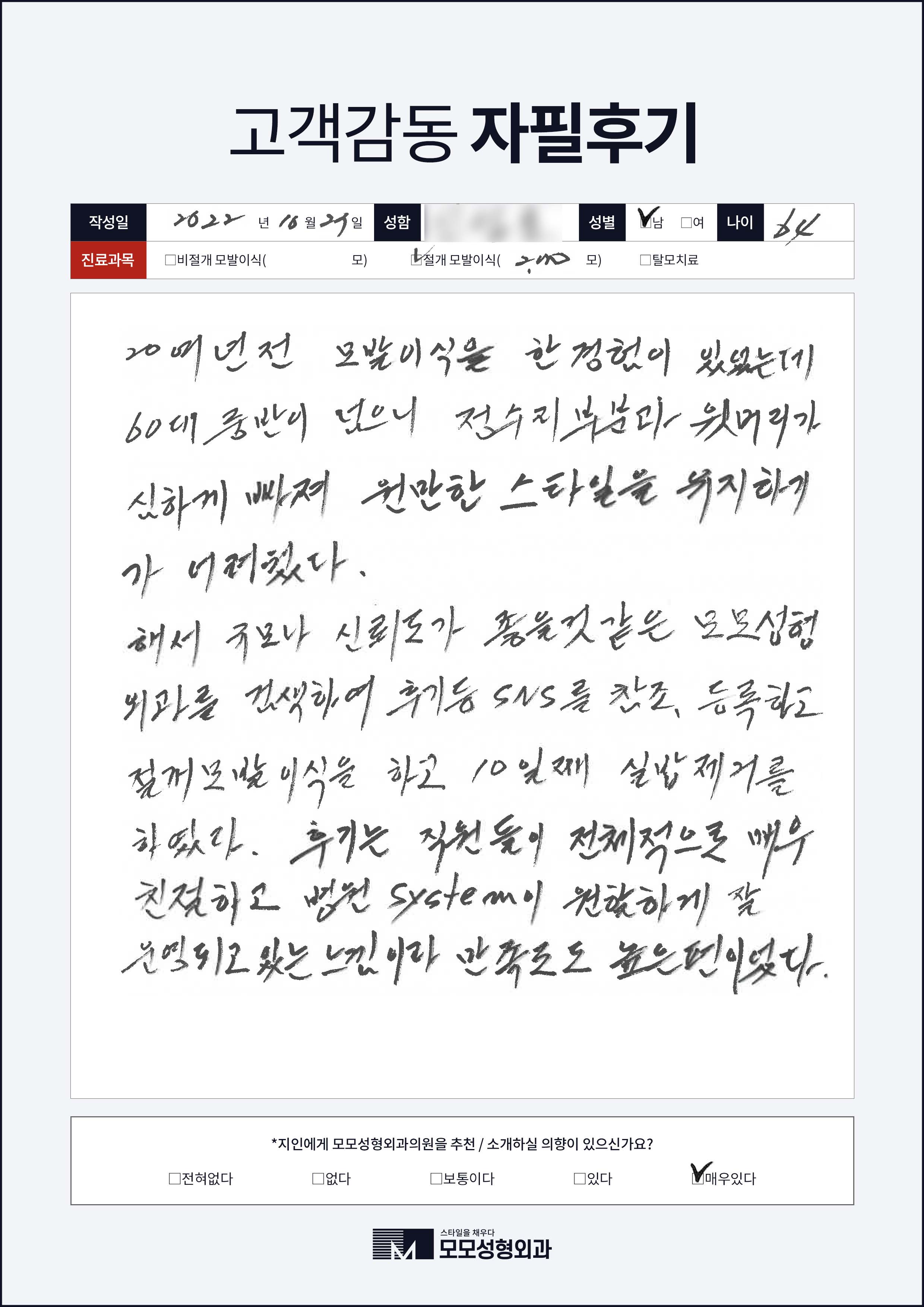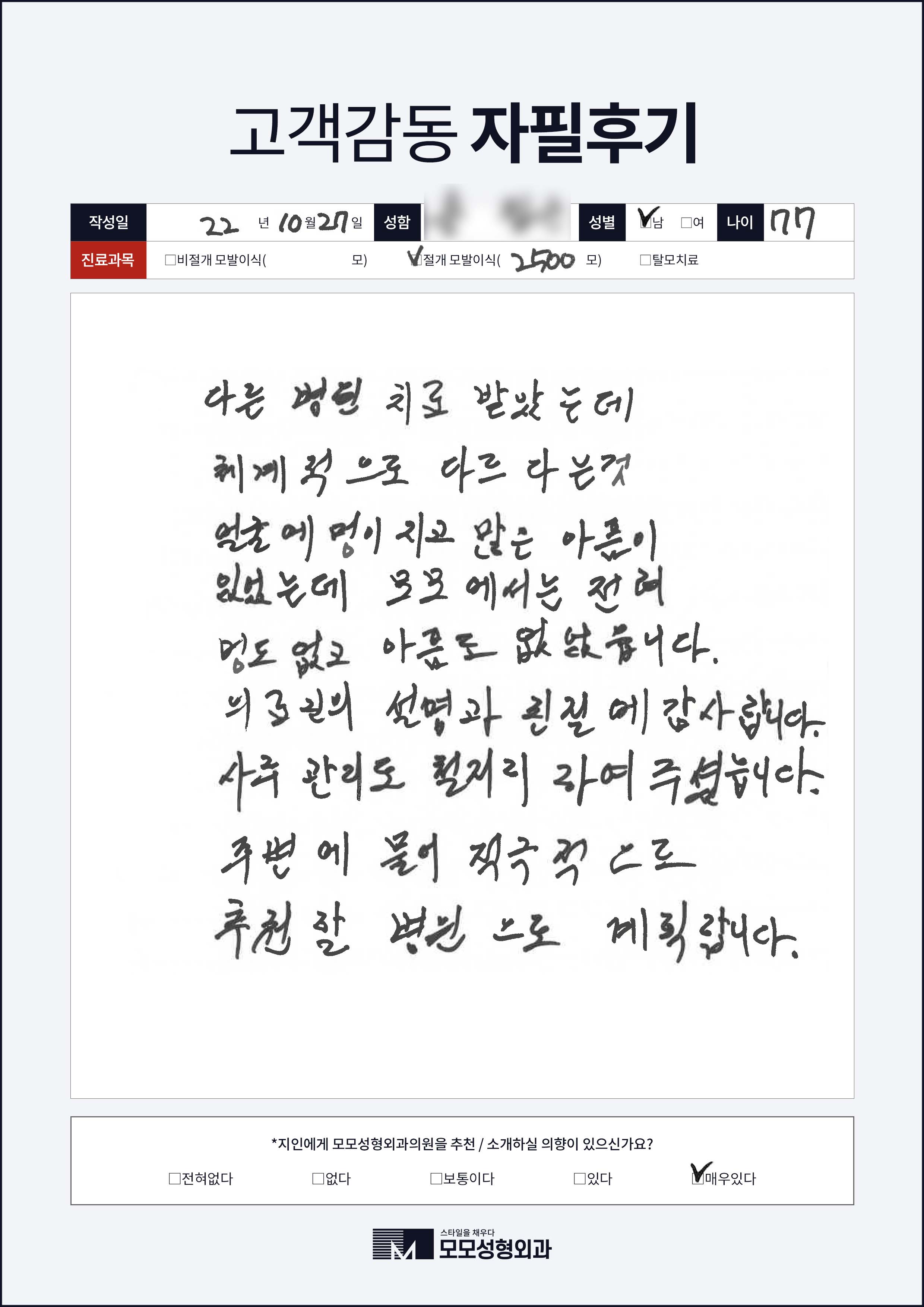 [50대이상]절개모발이식3000모, M자이마