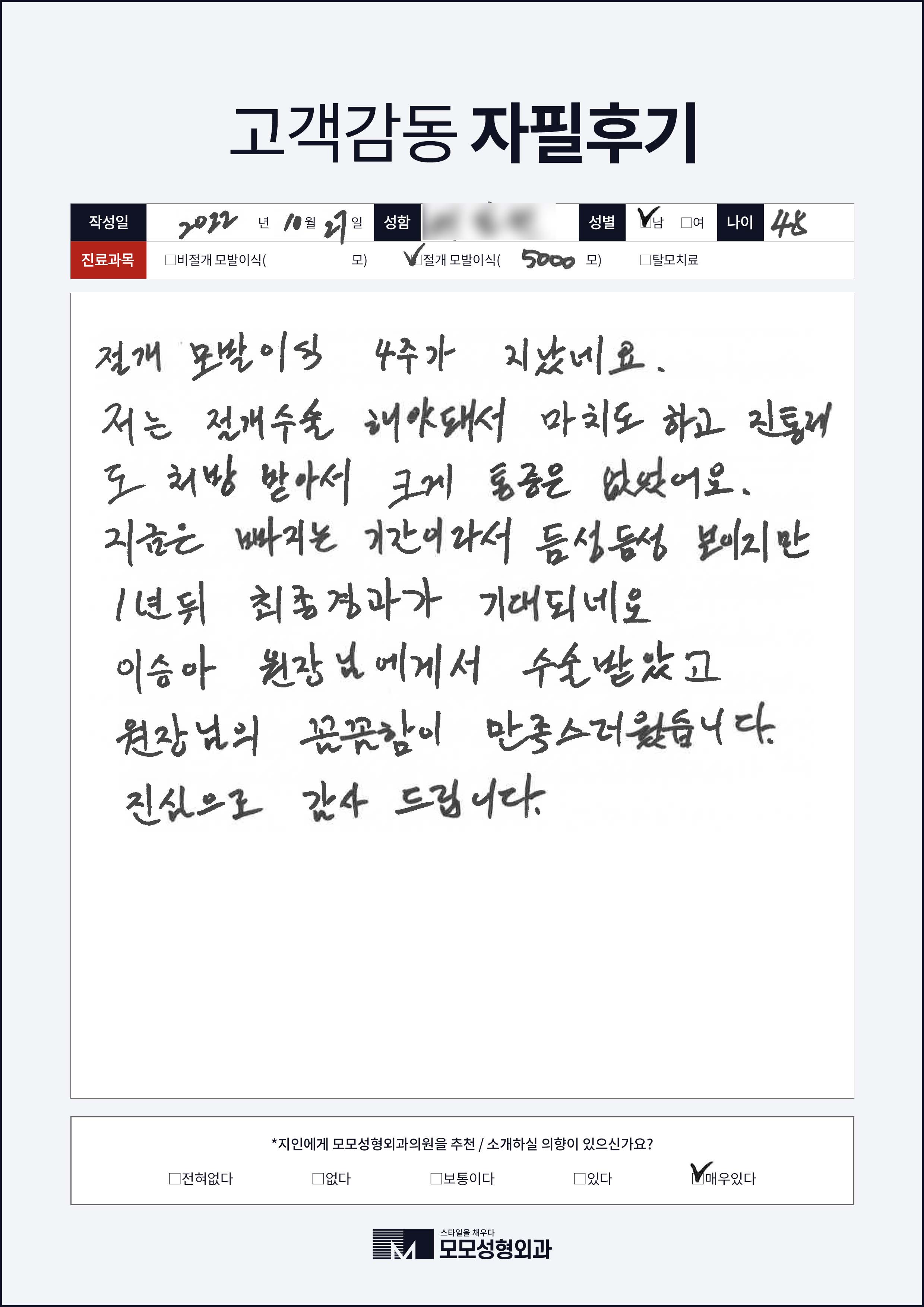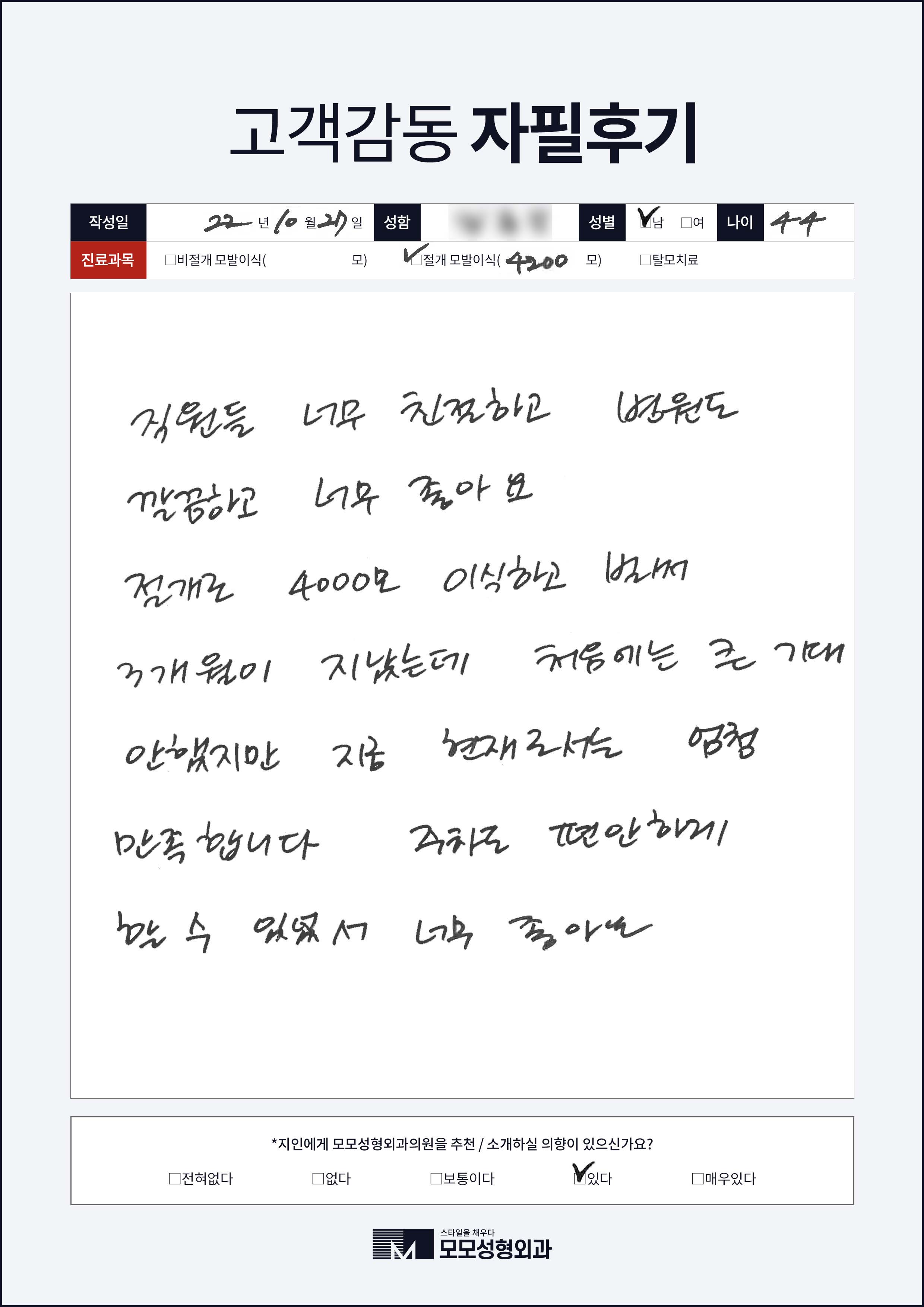[40대]절개모발이식4000모이상, M자이마