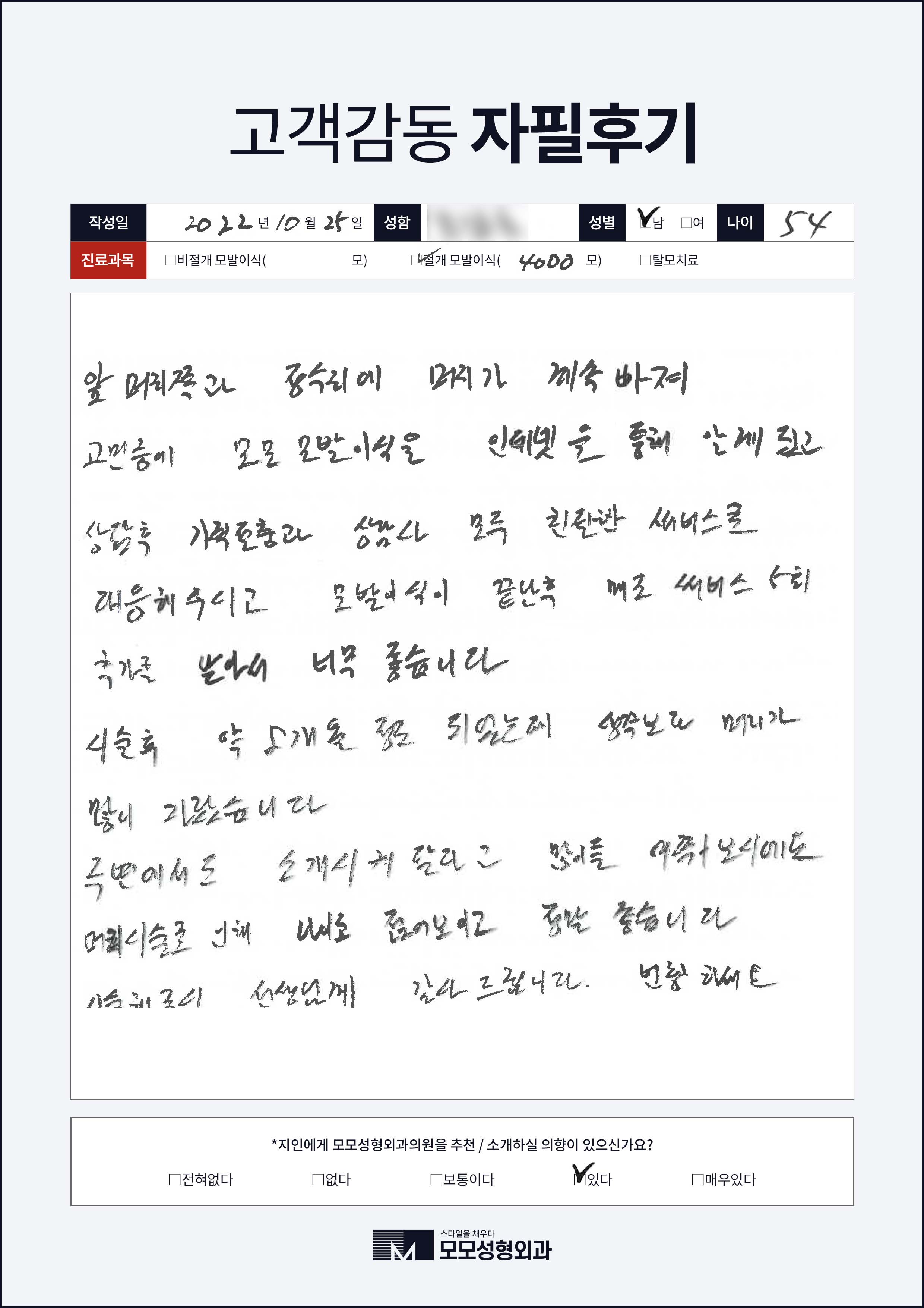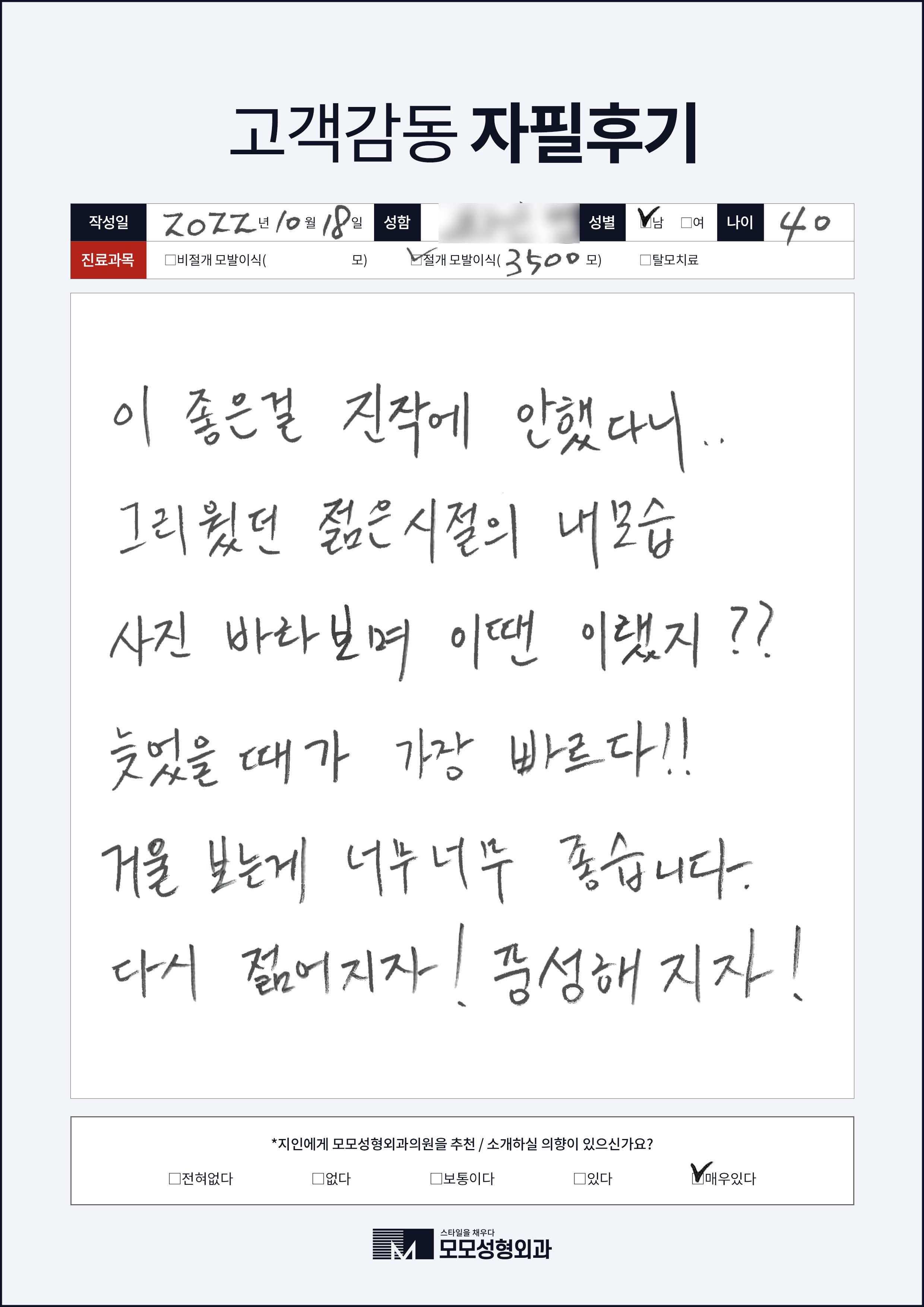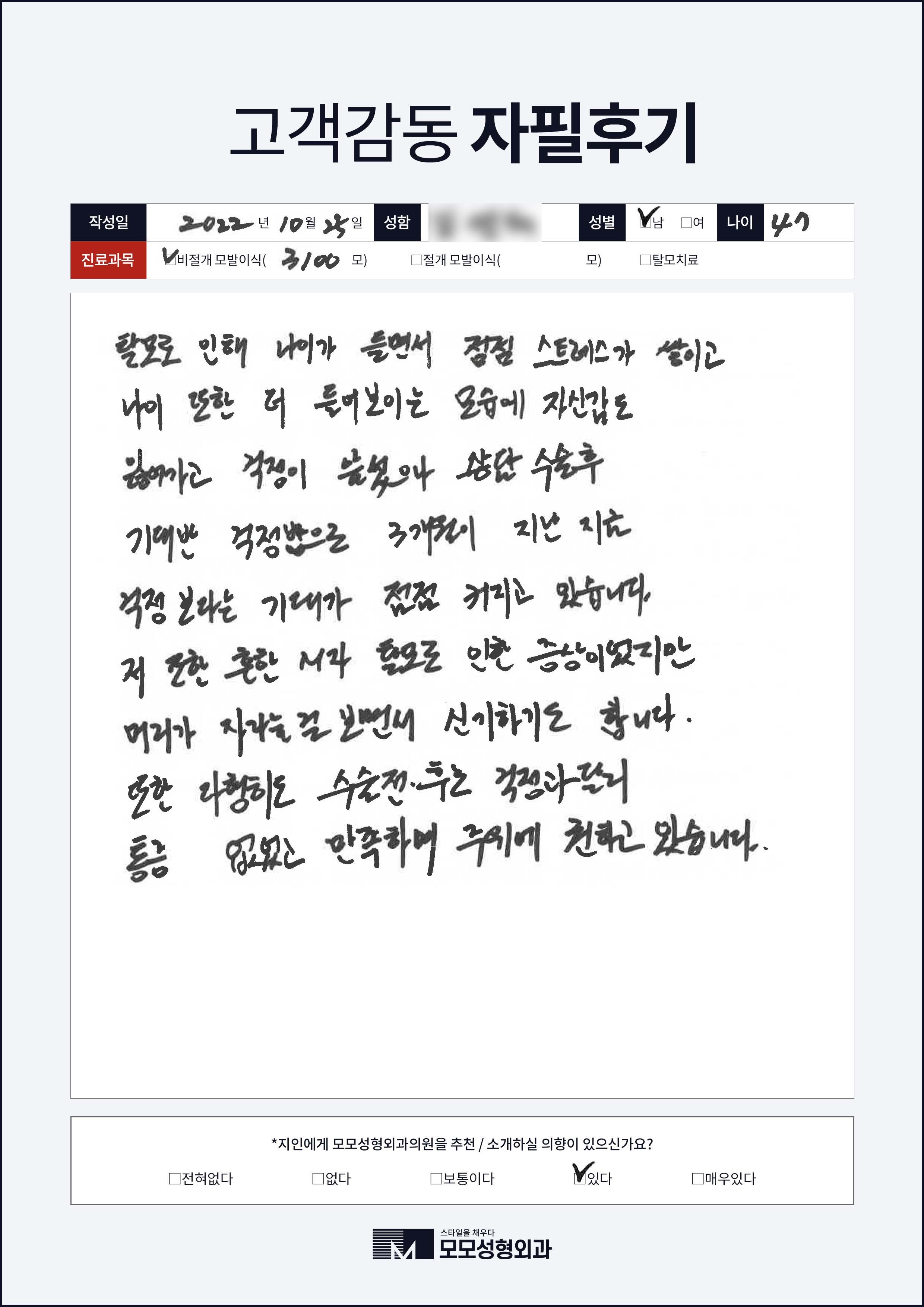 [40대]비절개모발이식3000모, M자이마