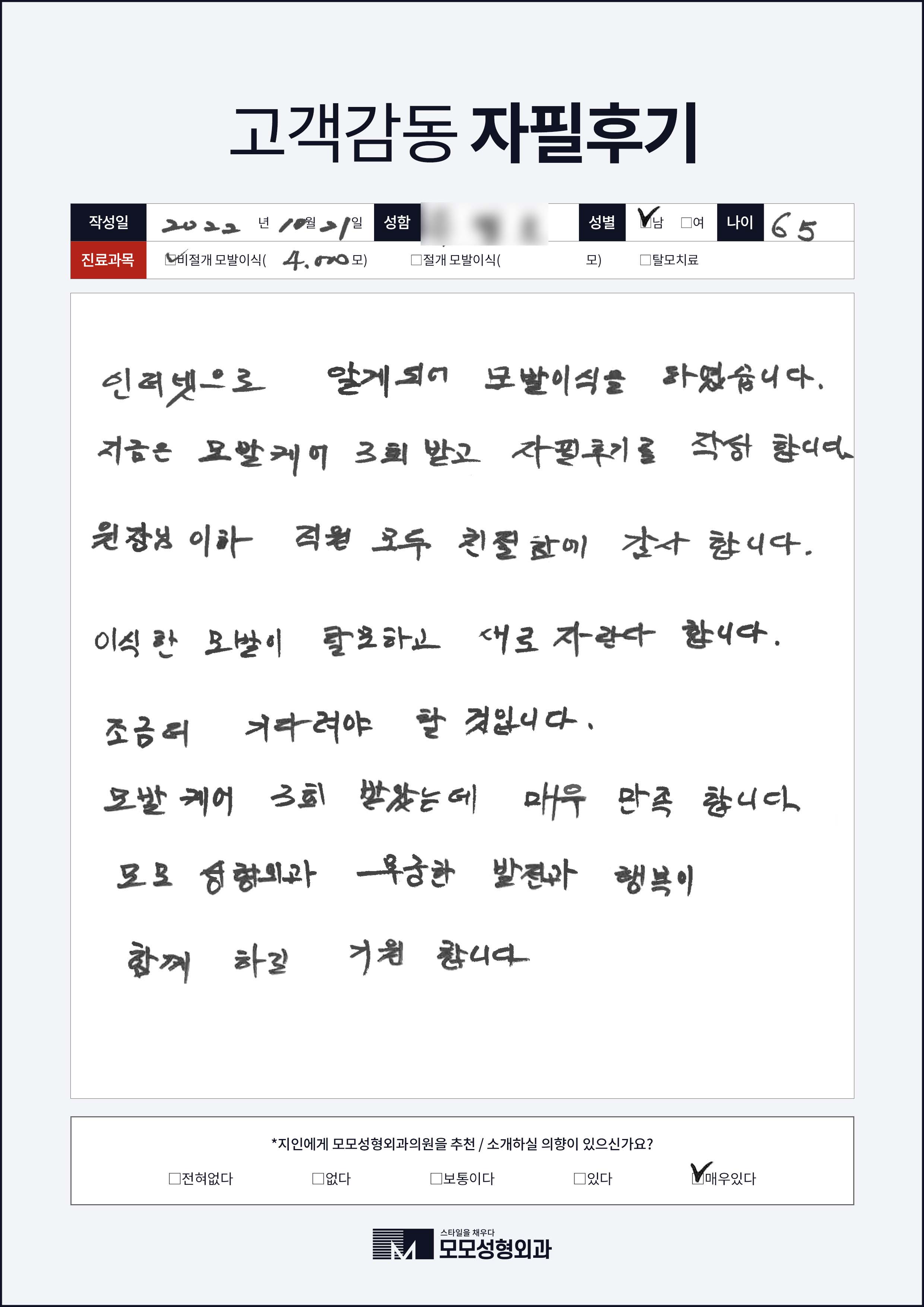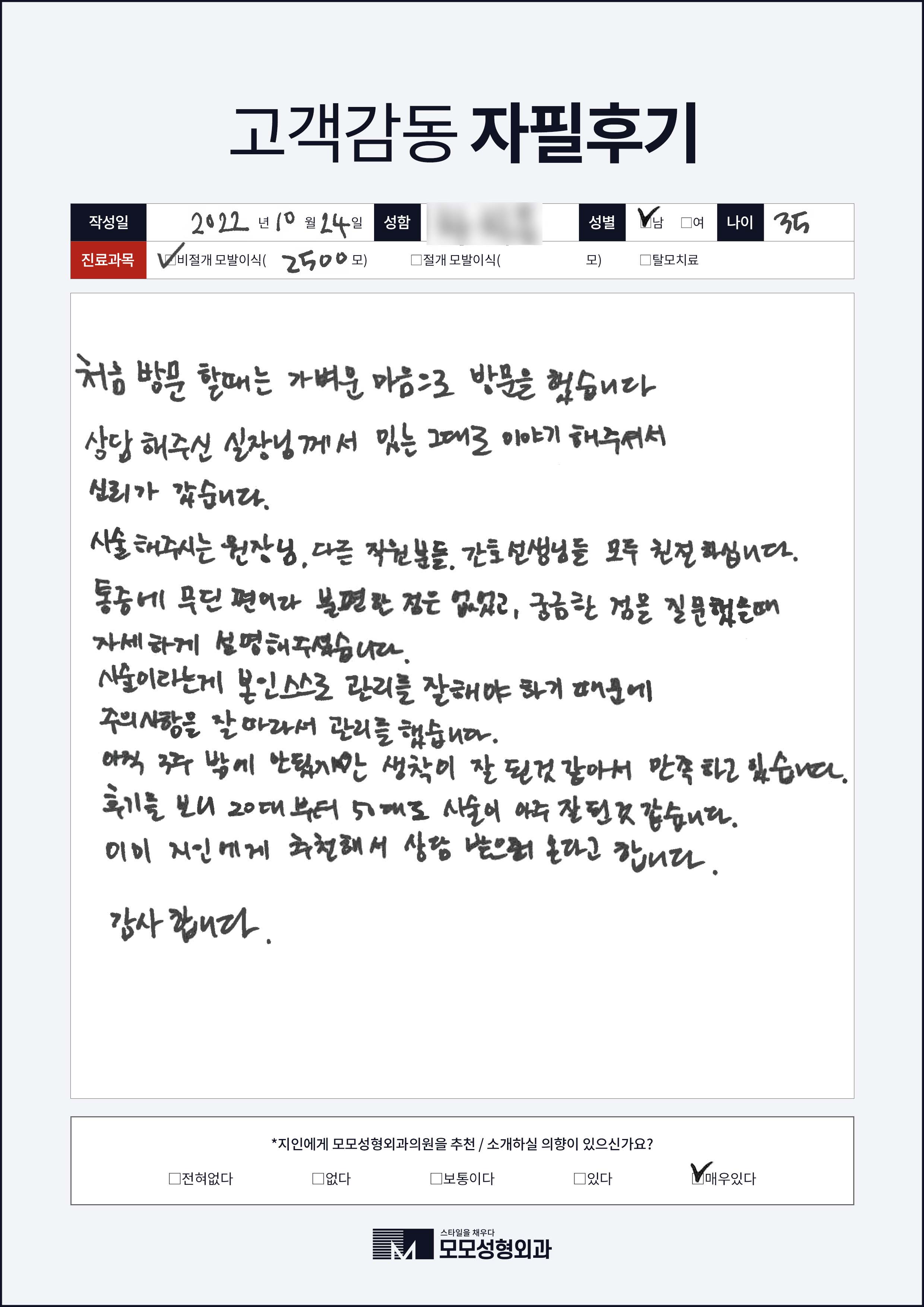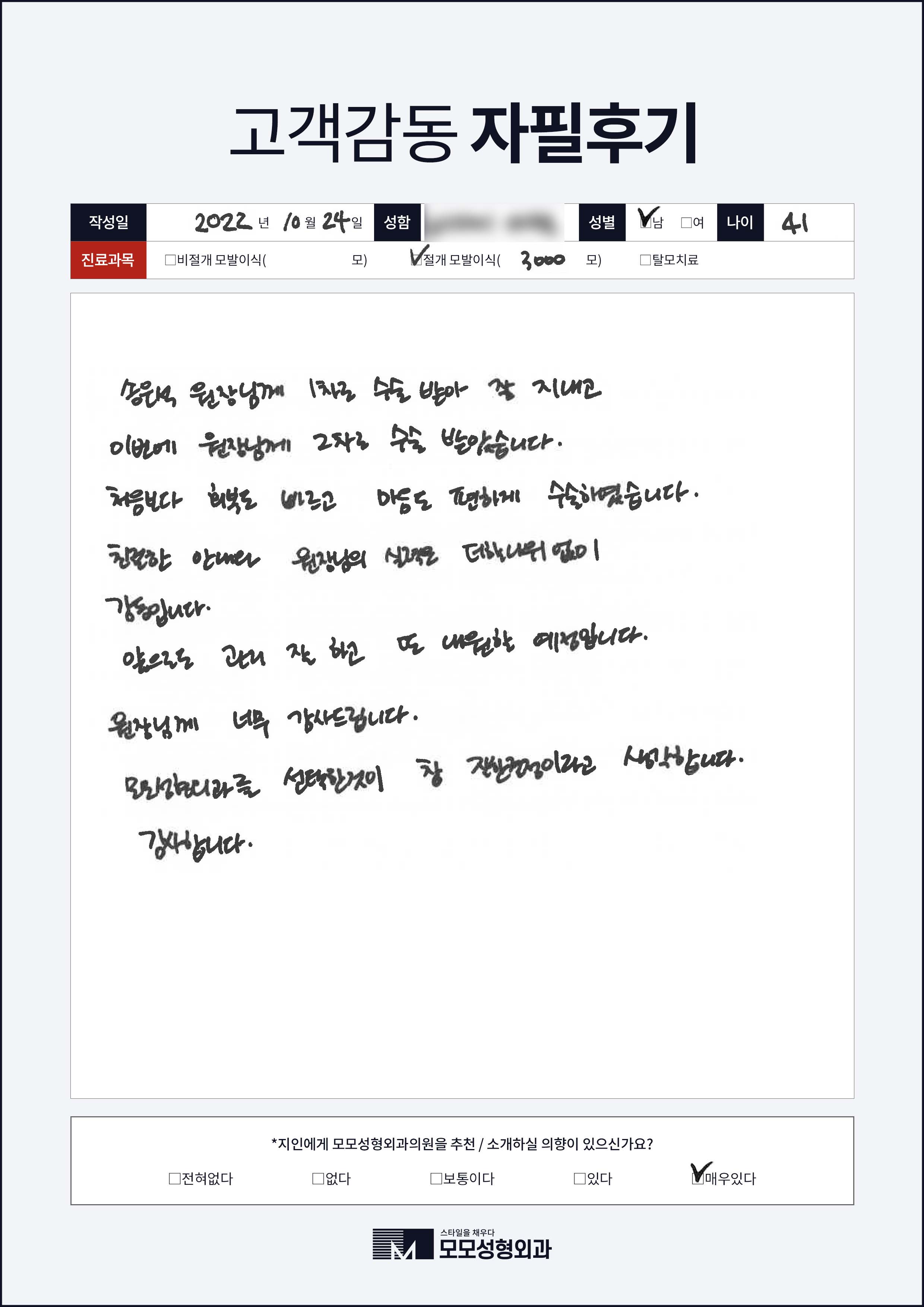 [40대]비절개모발이식3000모, M자이마