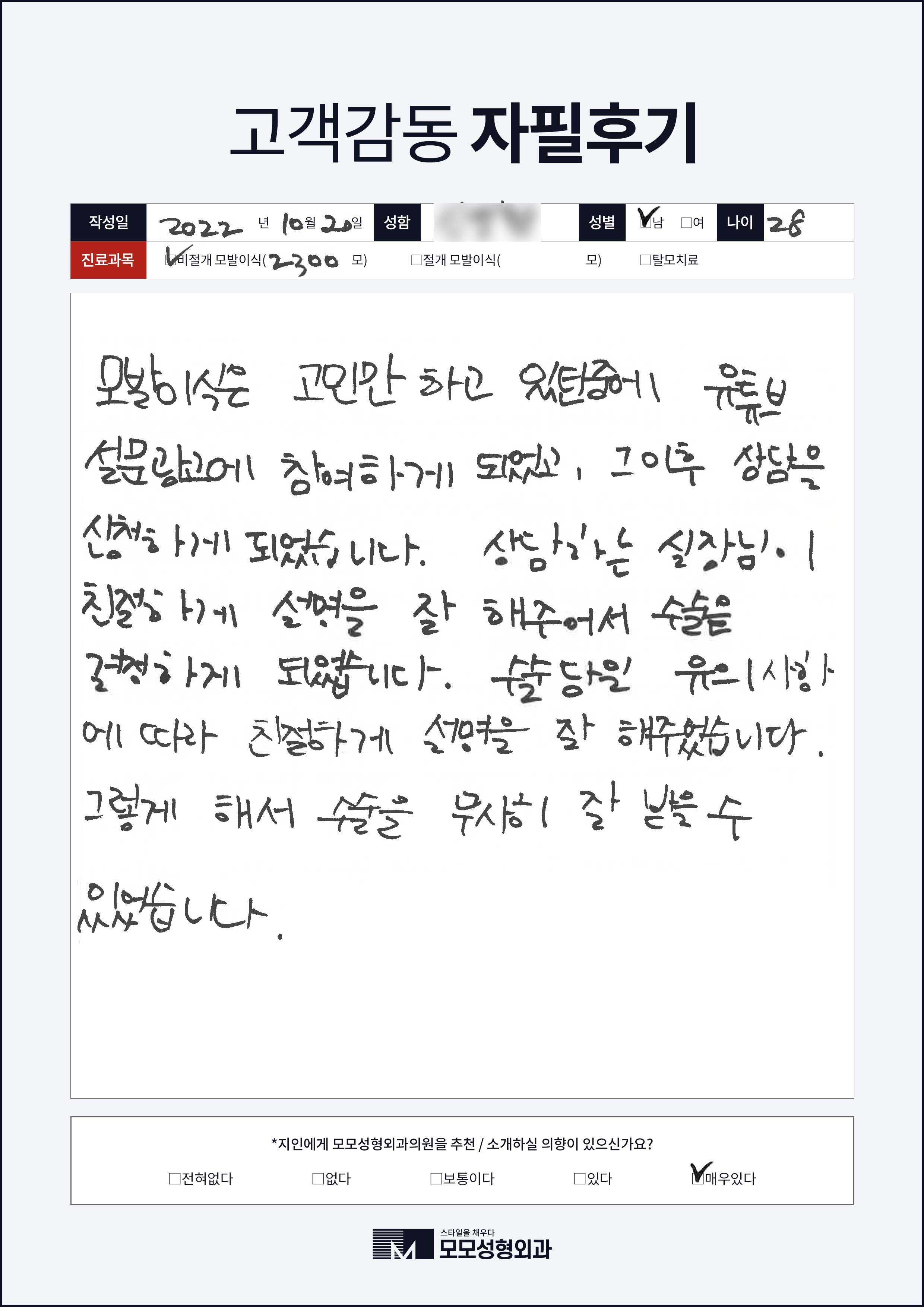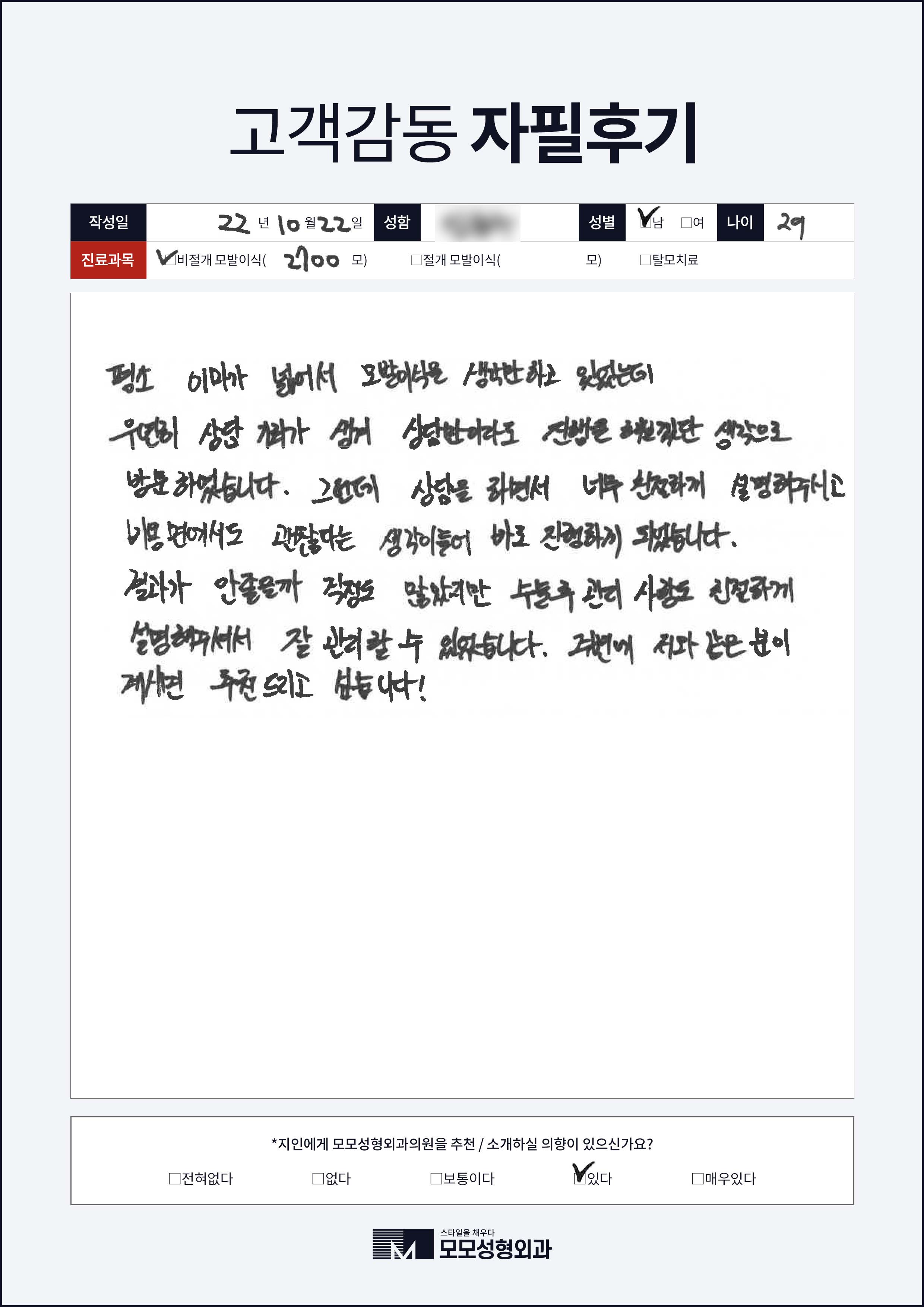 [20대]비절개모발이식2000모, M자이마