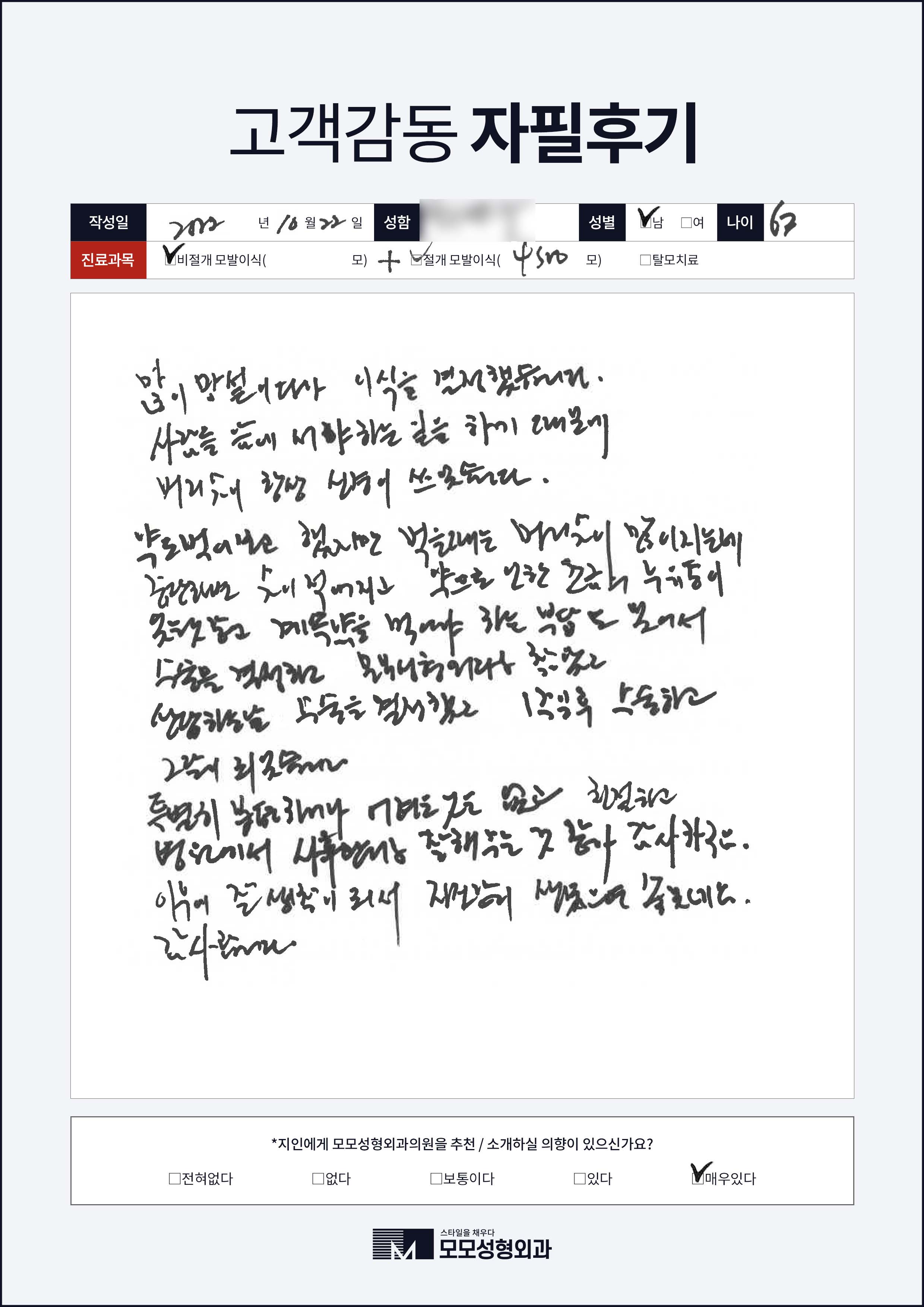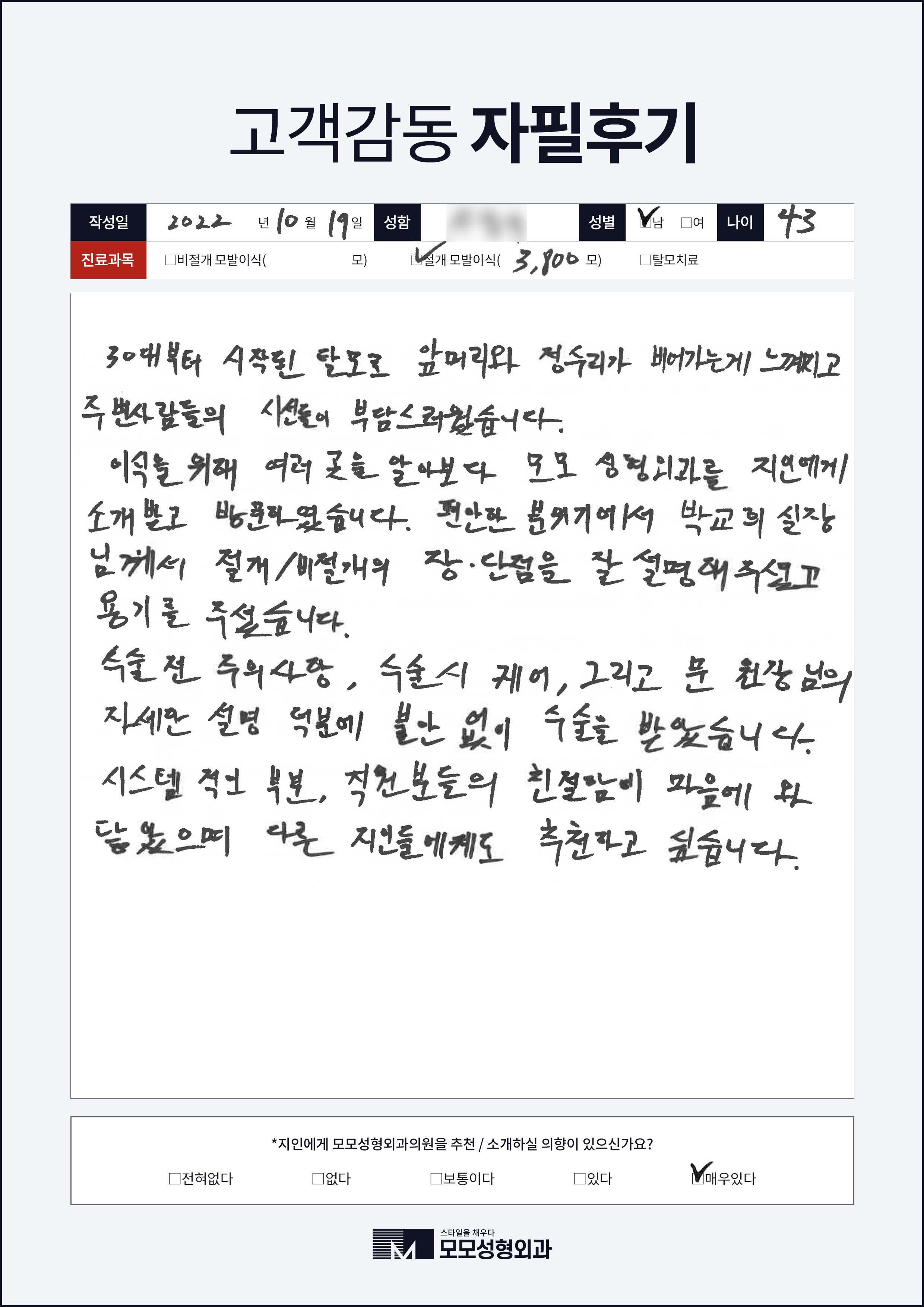 [40대]절개모발이식3000모, 여러부위