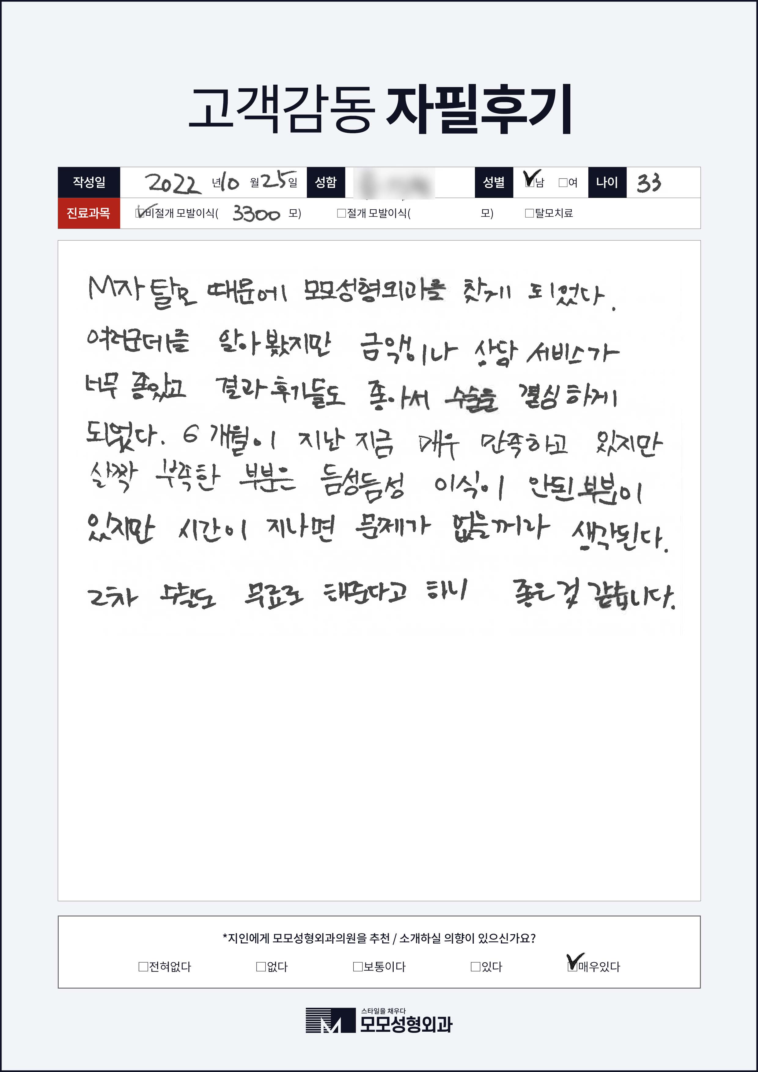 [30대]비절개모발이식3000모, M자이마