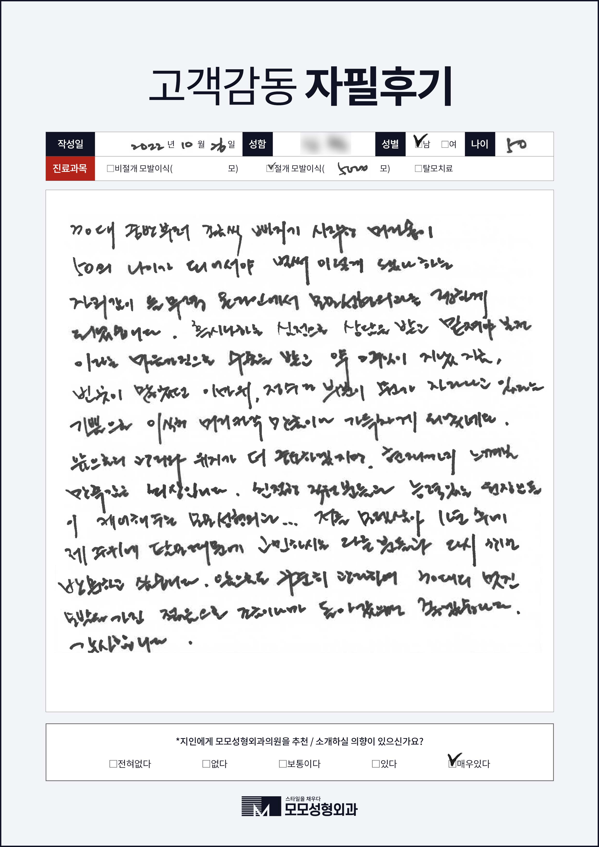 [50대이상]절개모발이식4000모이상, 전체이마