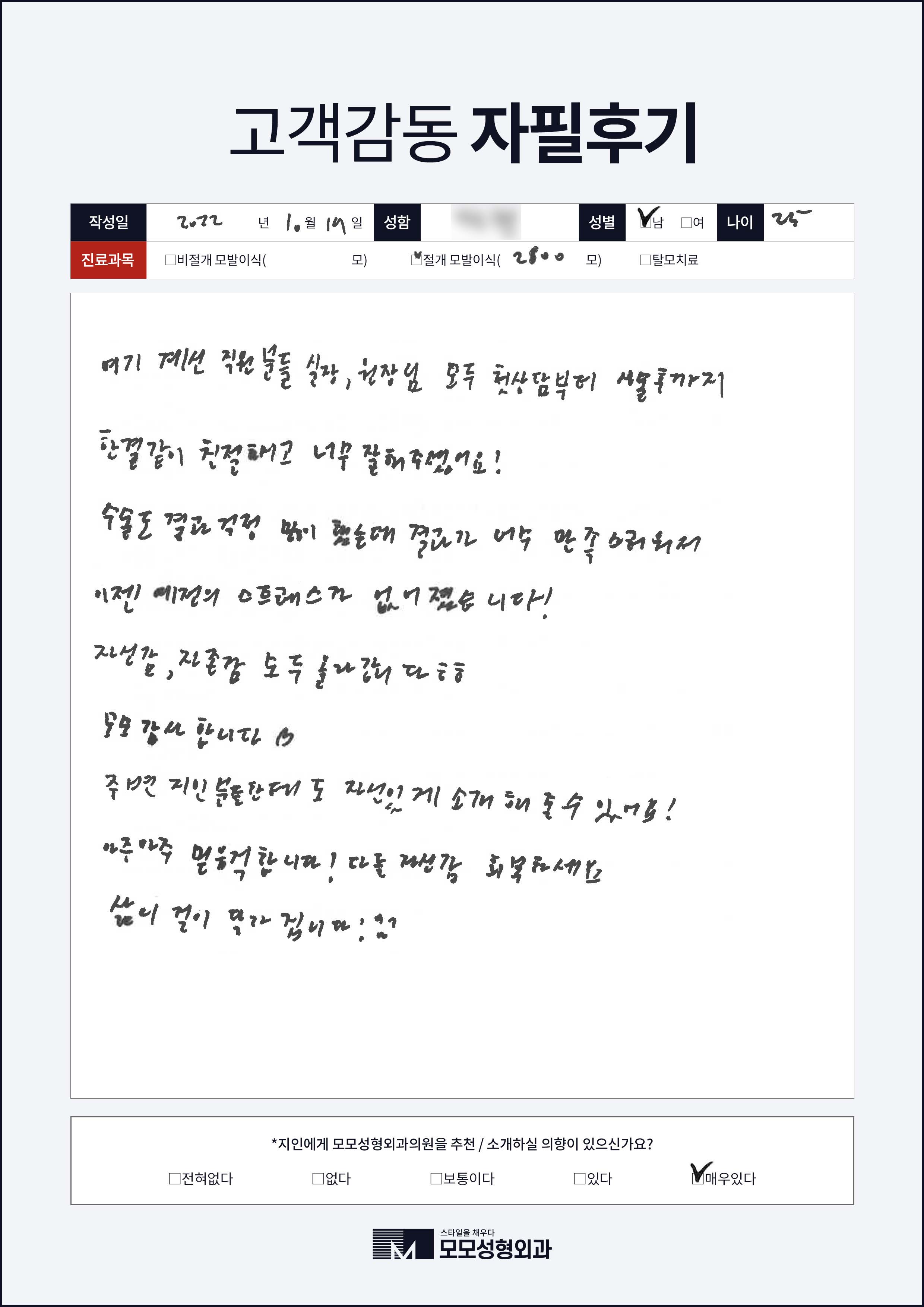 [20대]절개모발이식2000모, M자이마