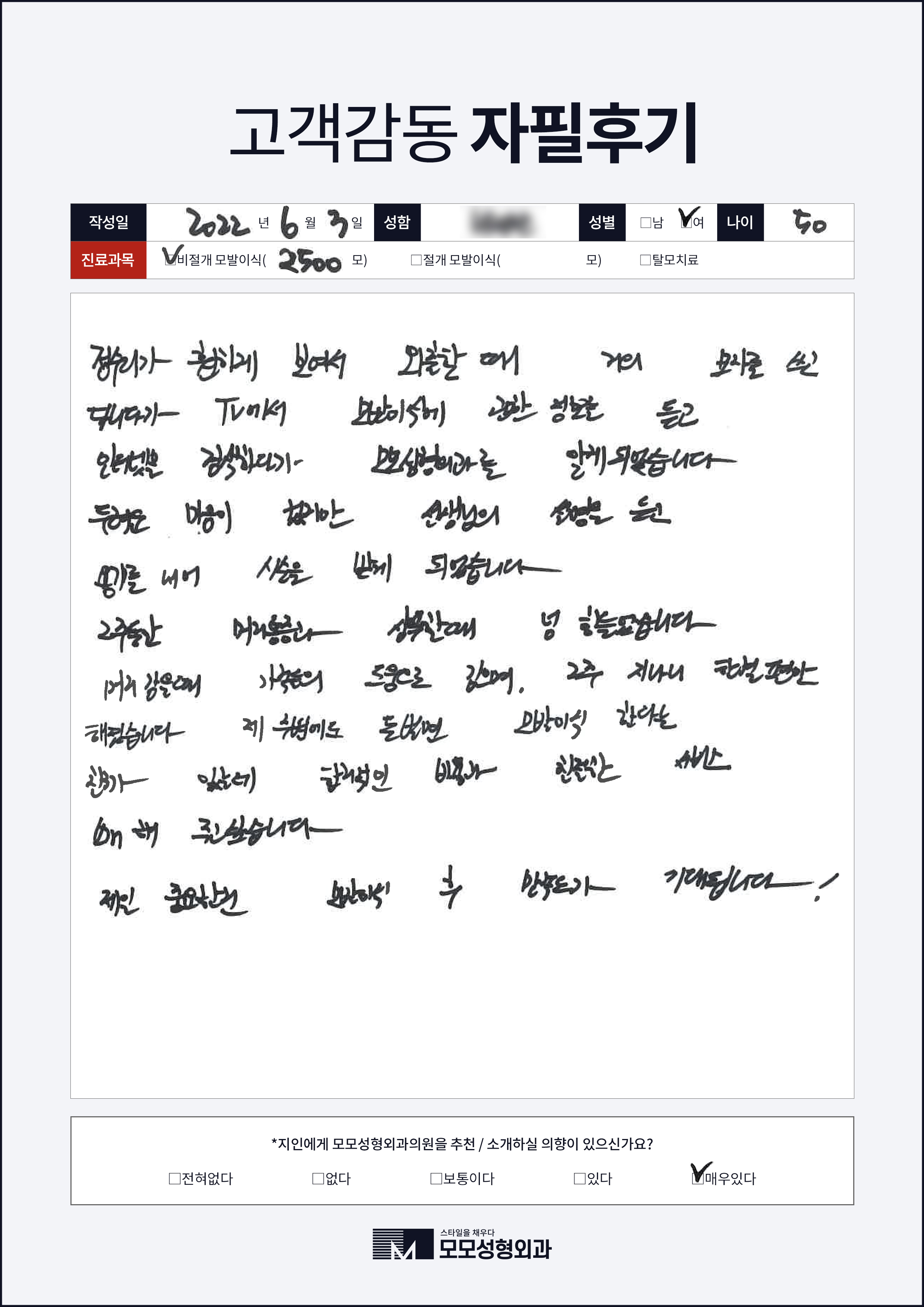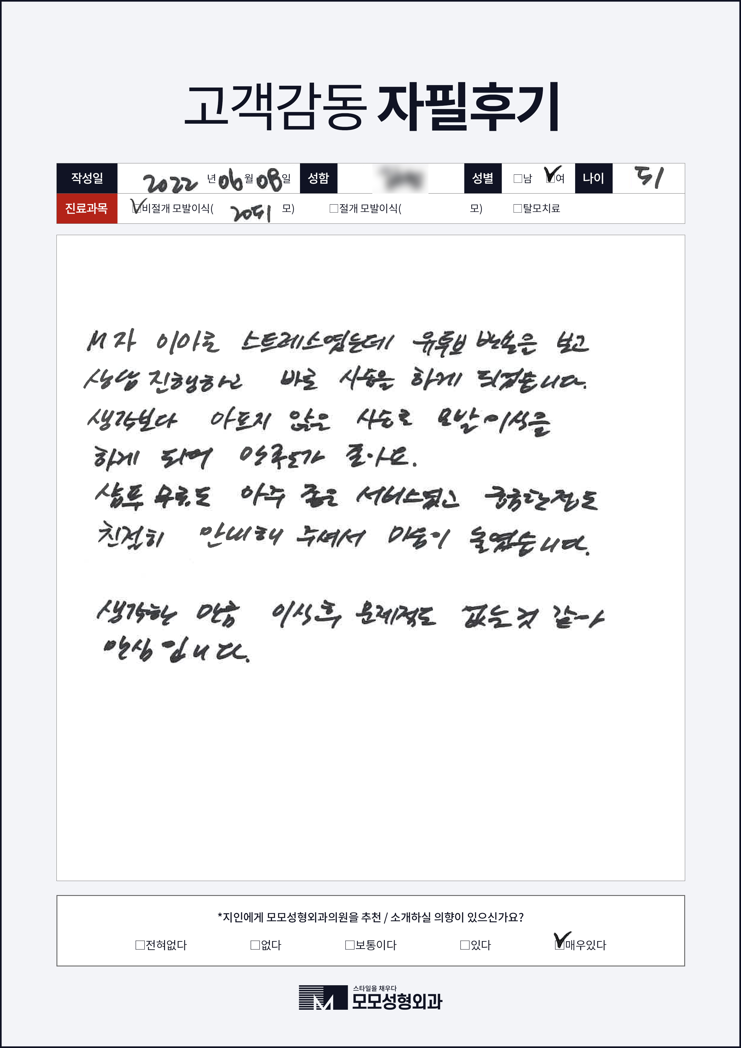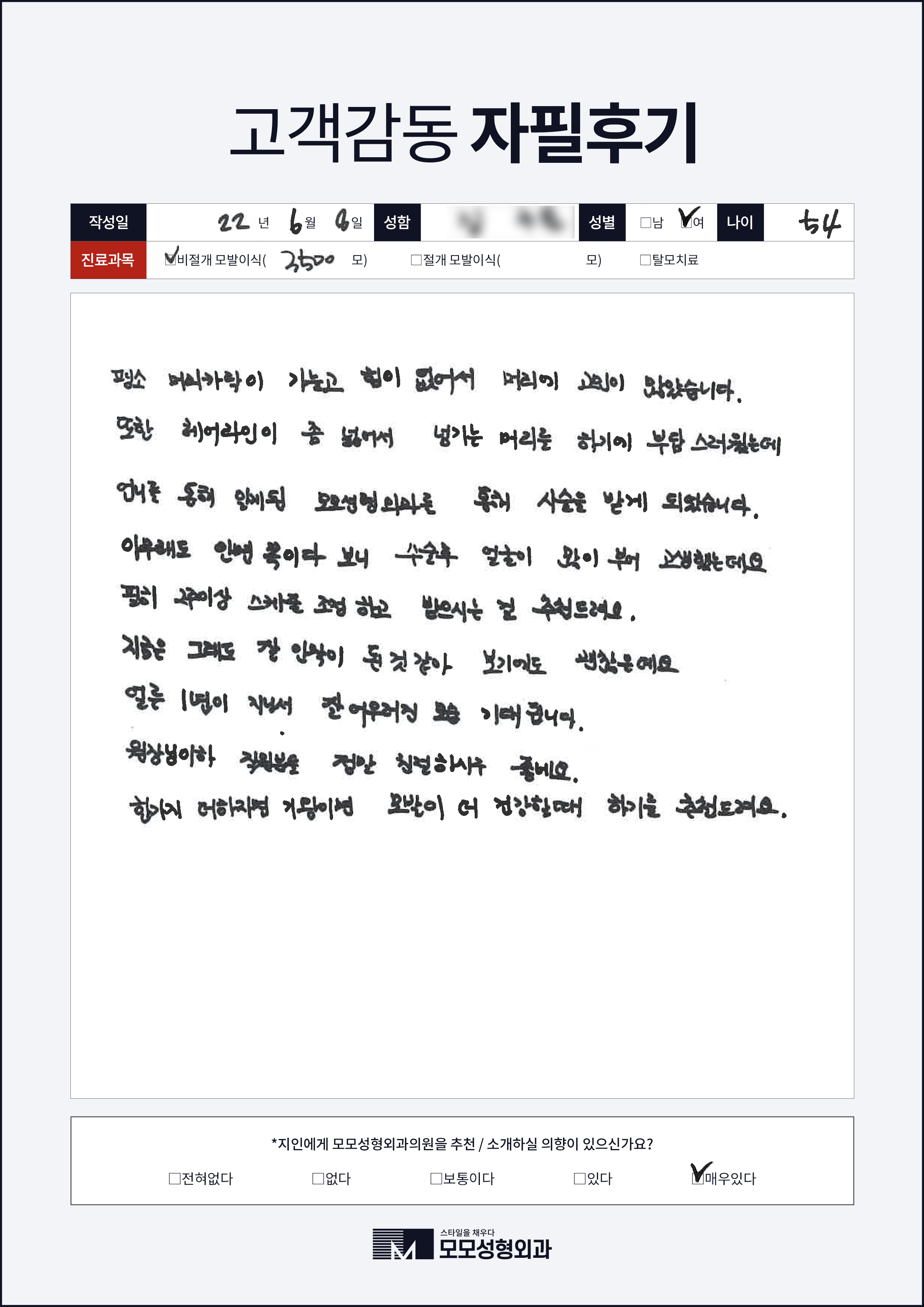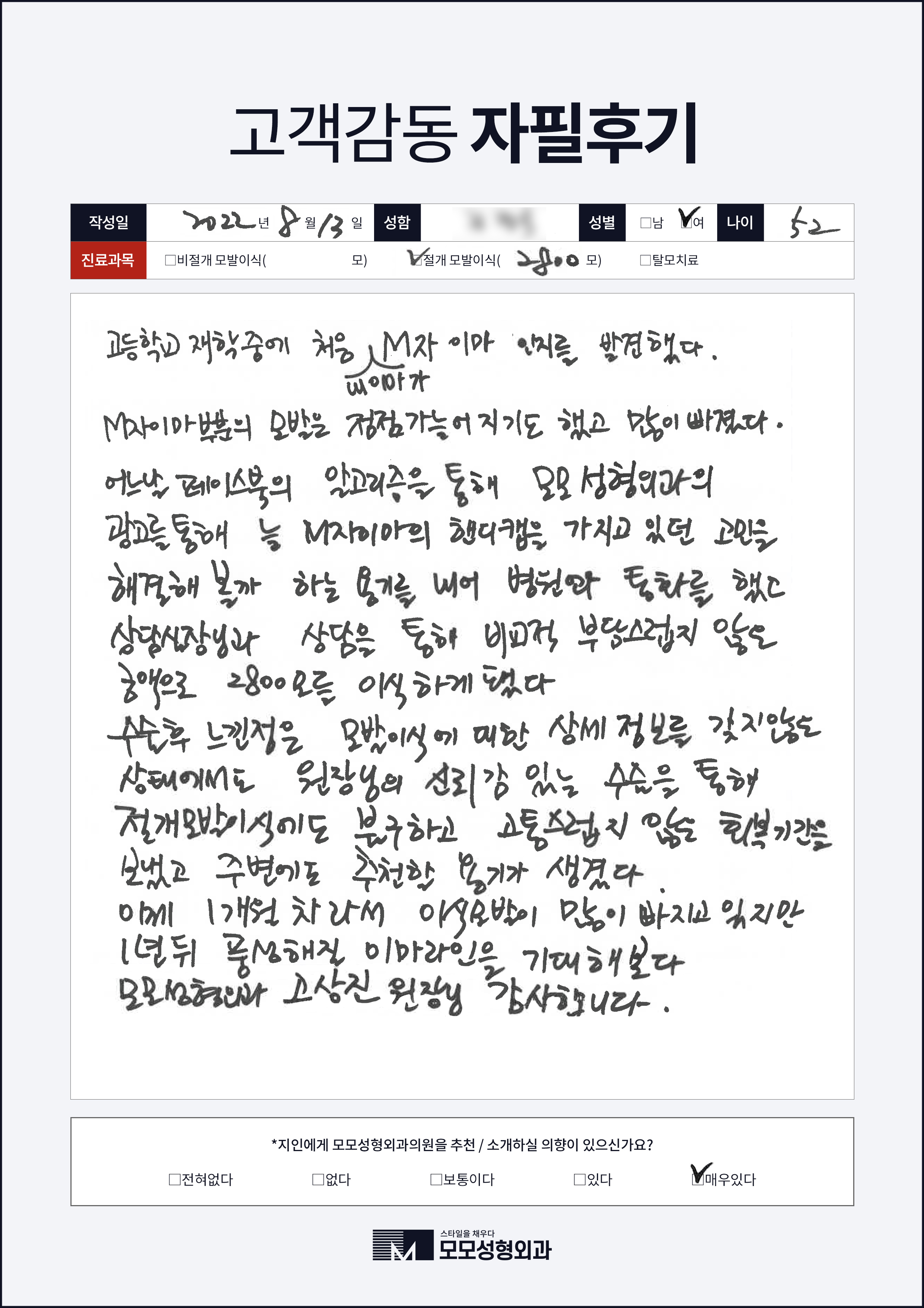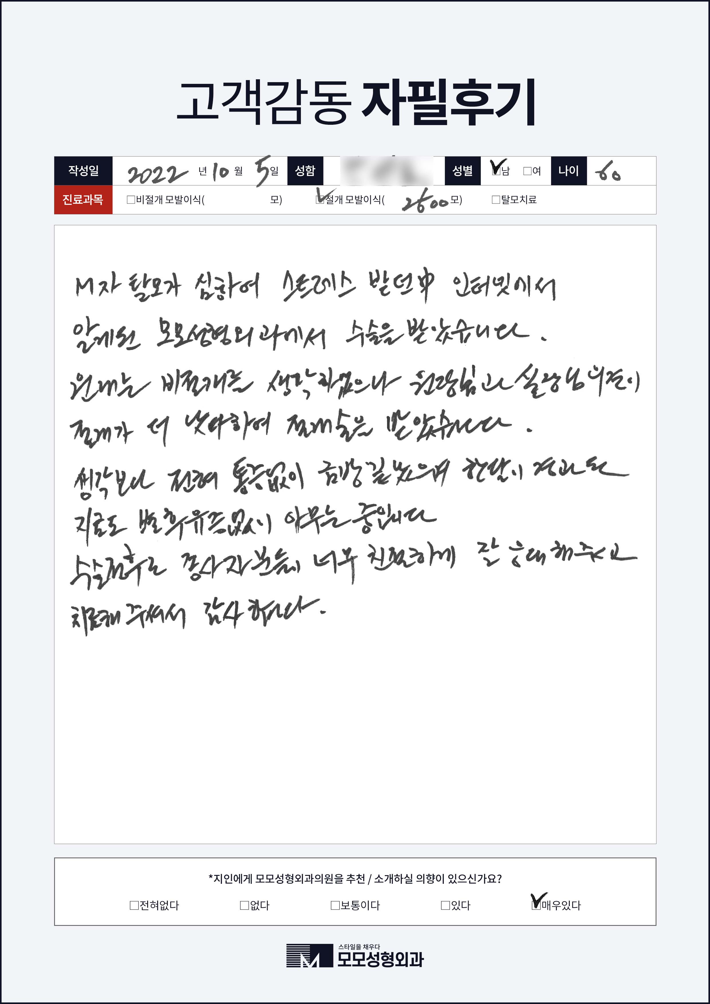 [50대이상]비절개모발이식2000모, 넓은이마