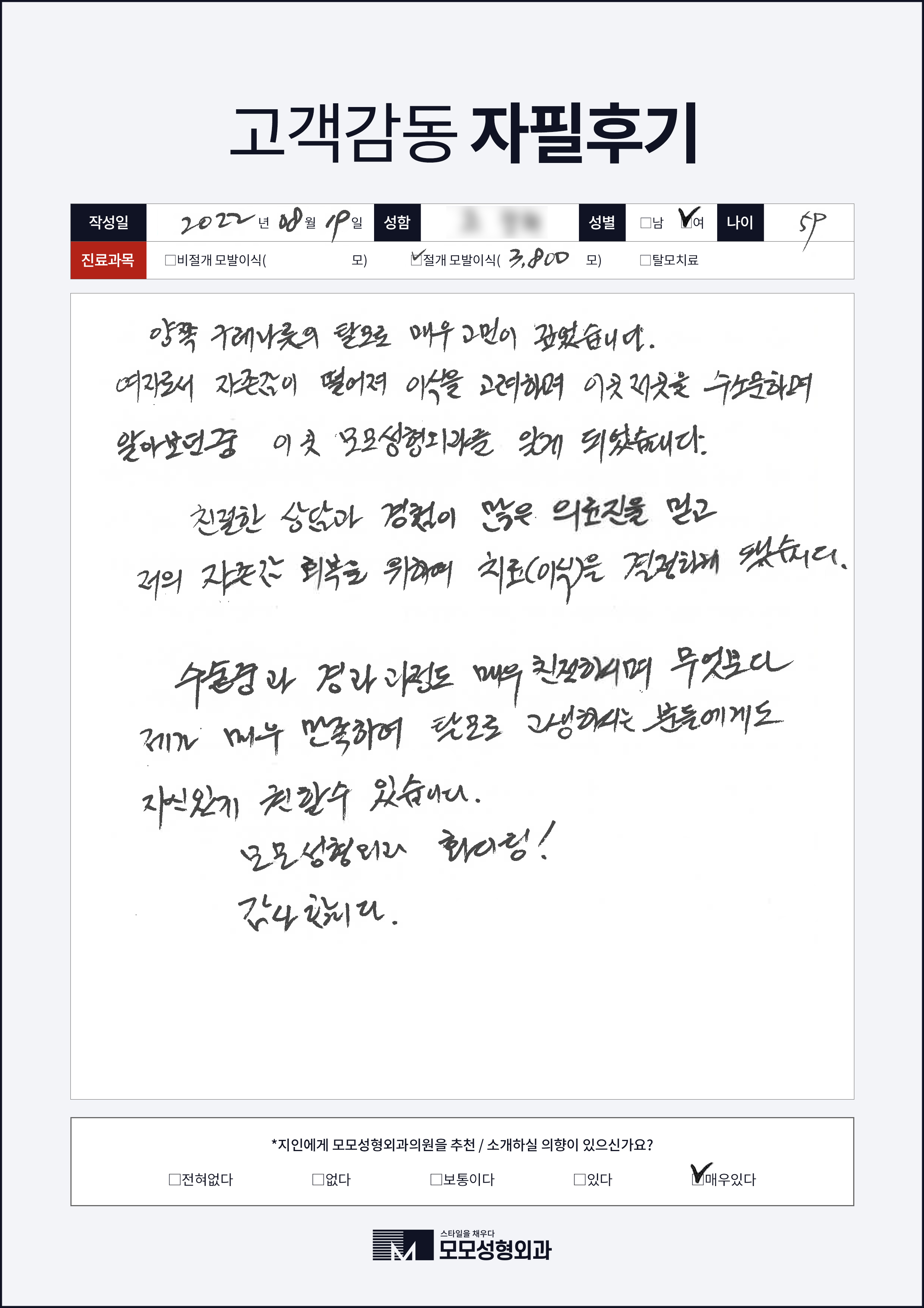 [50대이상]비절개모발이식3000모, 넓은이마