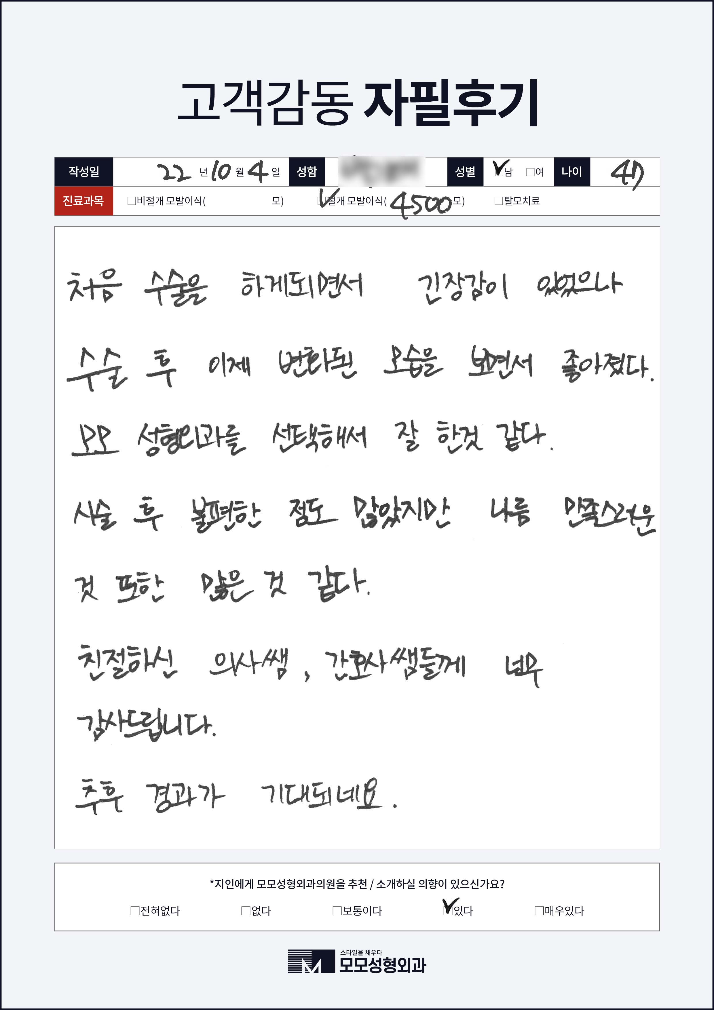 [40대]절개모발이식4000모이상, M자이마