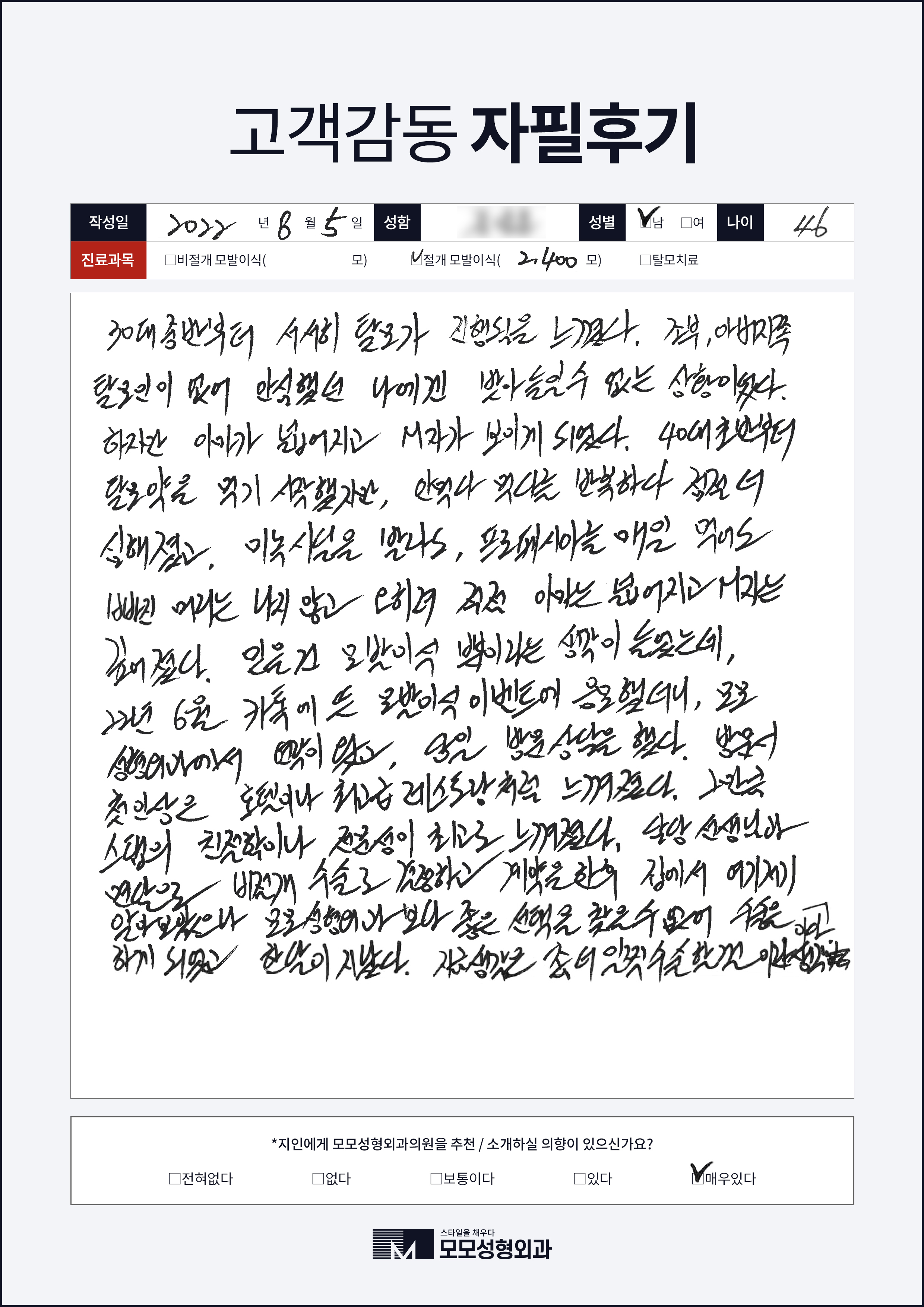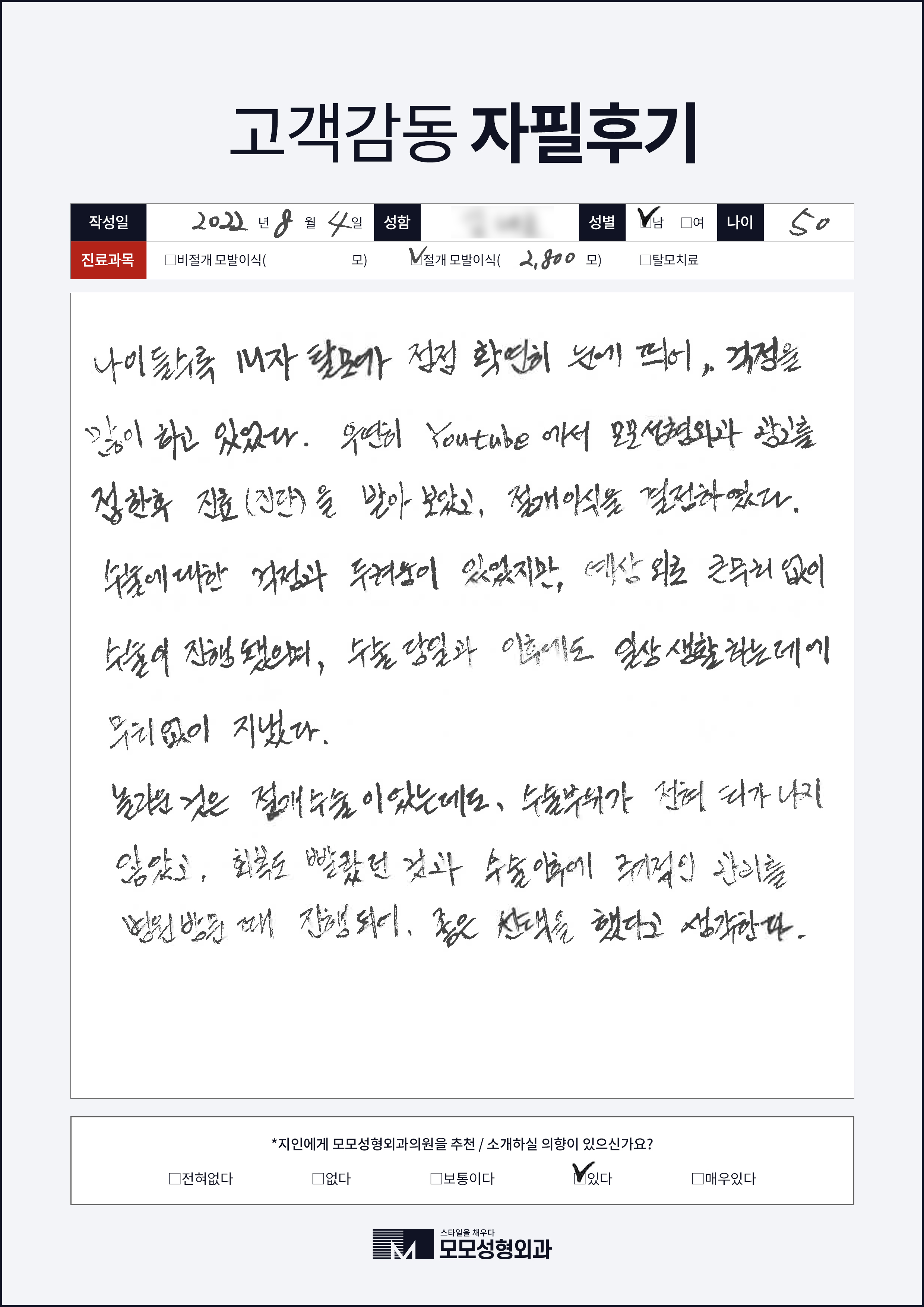 [40대]절개모발이식2000모, M자이마