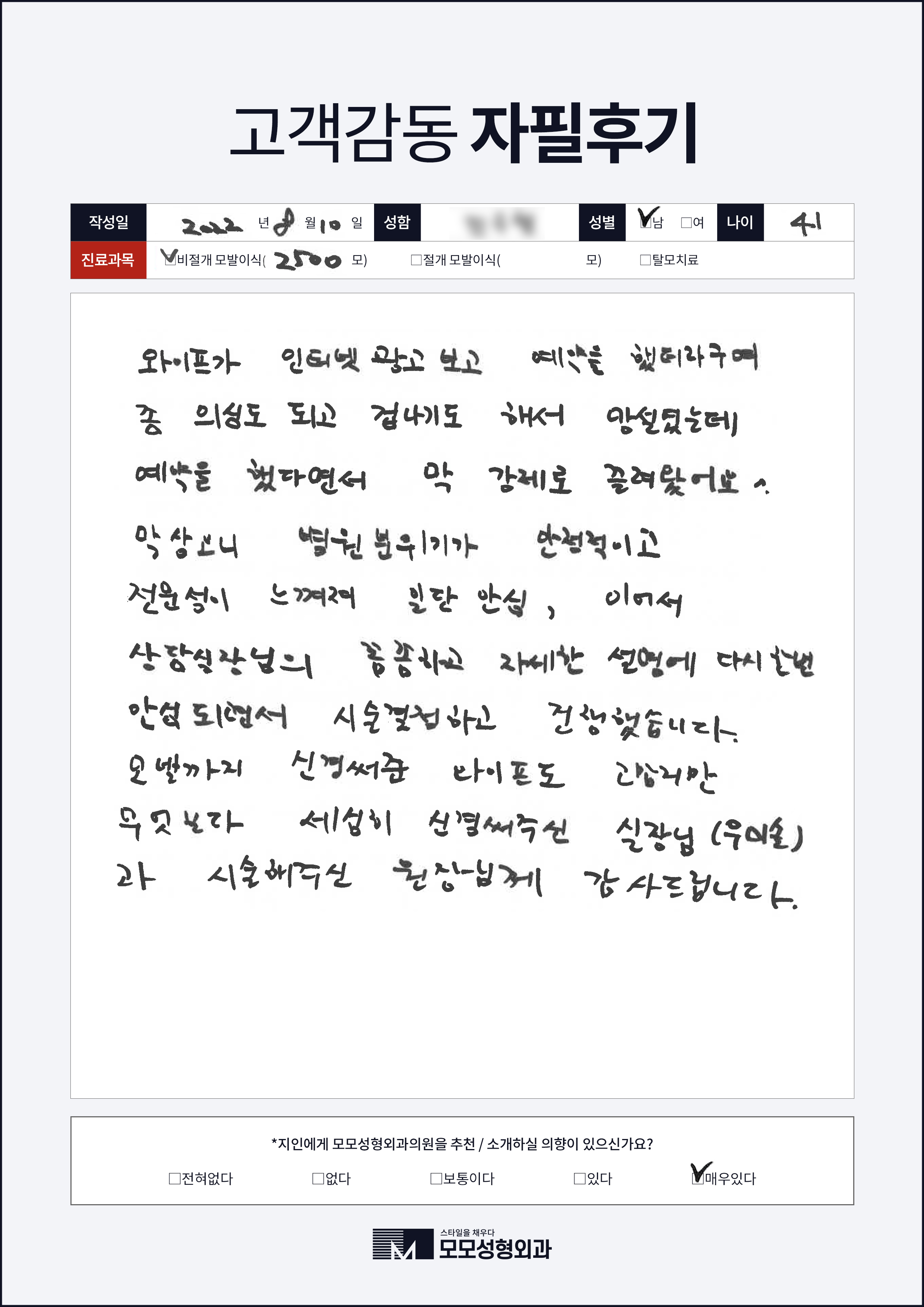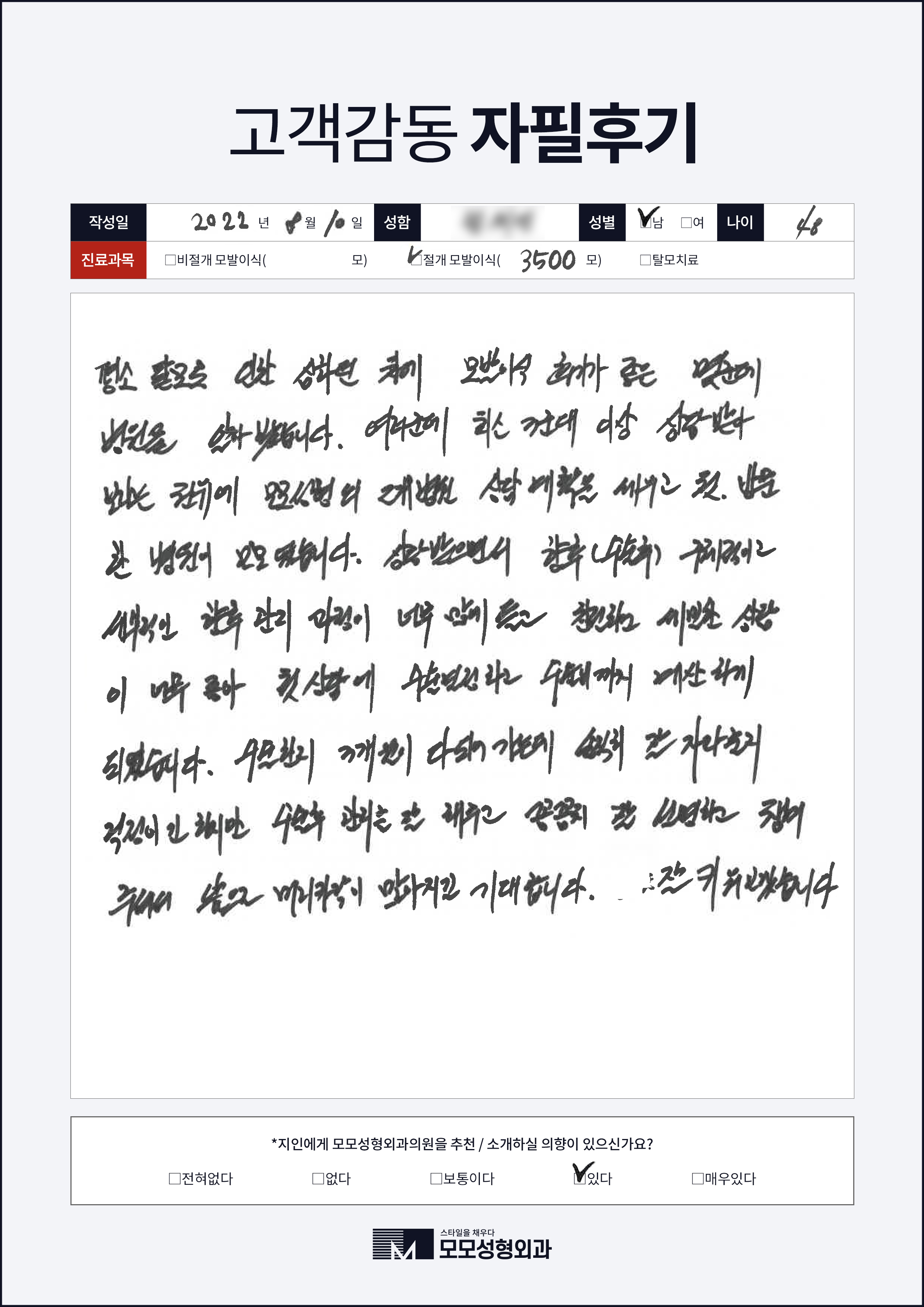 [40대]비절개모발이식2000모, M자이마