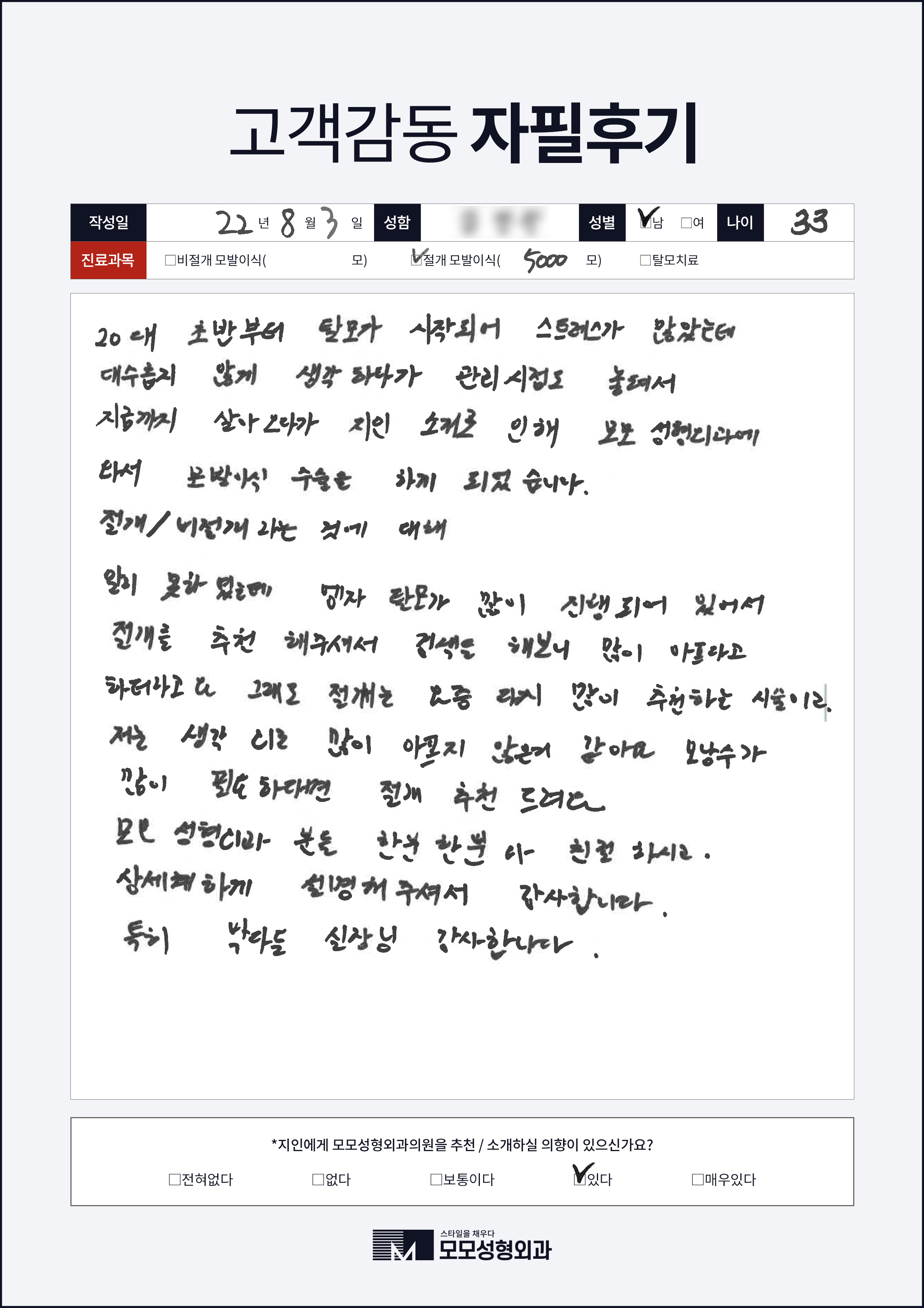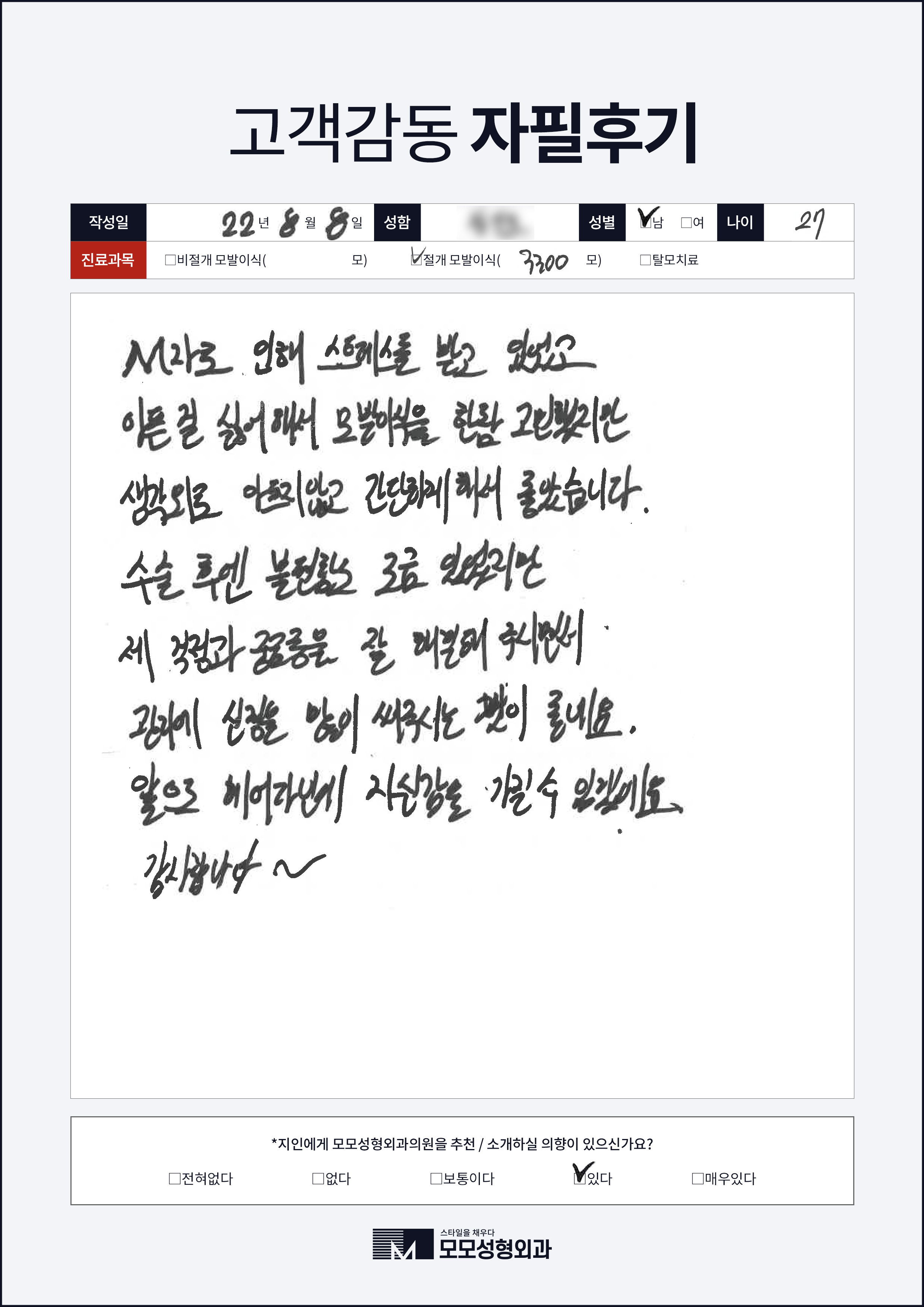 [20대]절개모발이식3000모, M자이마