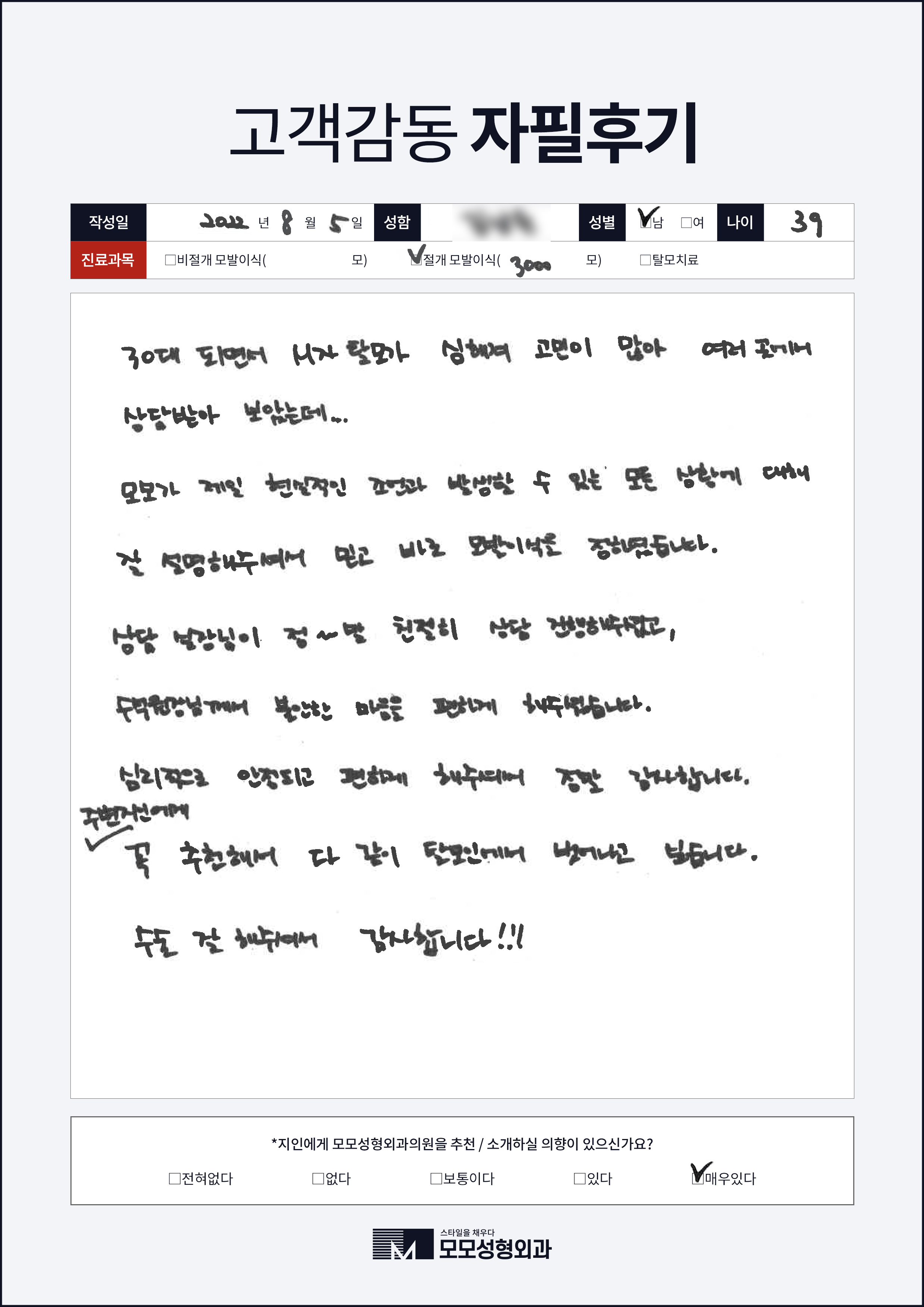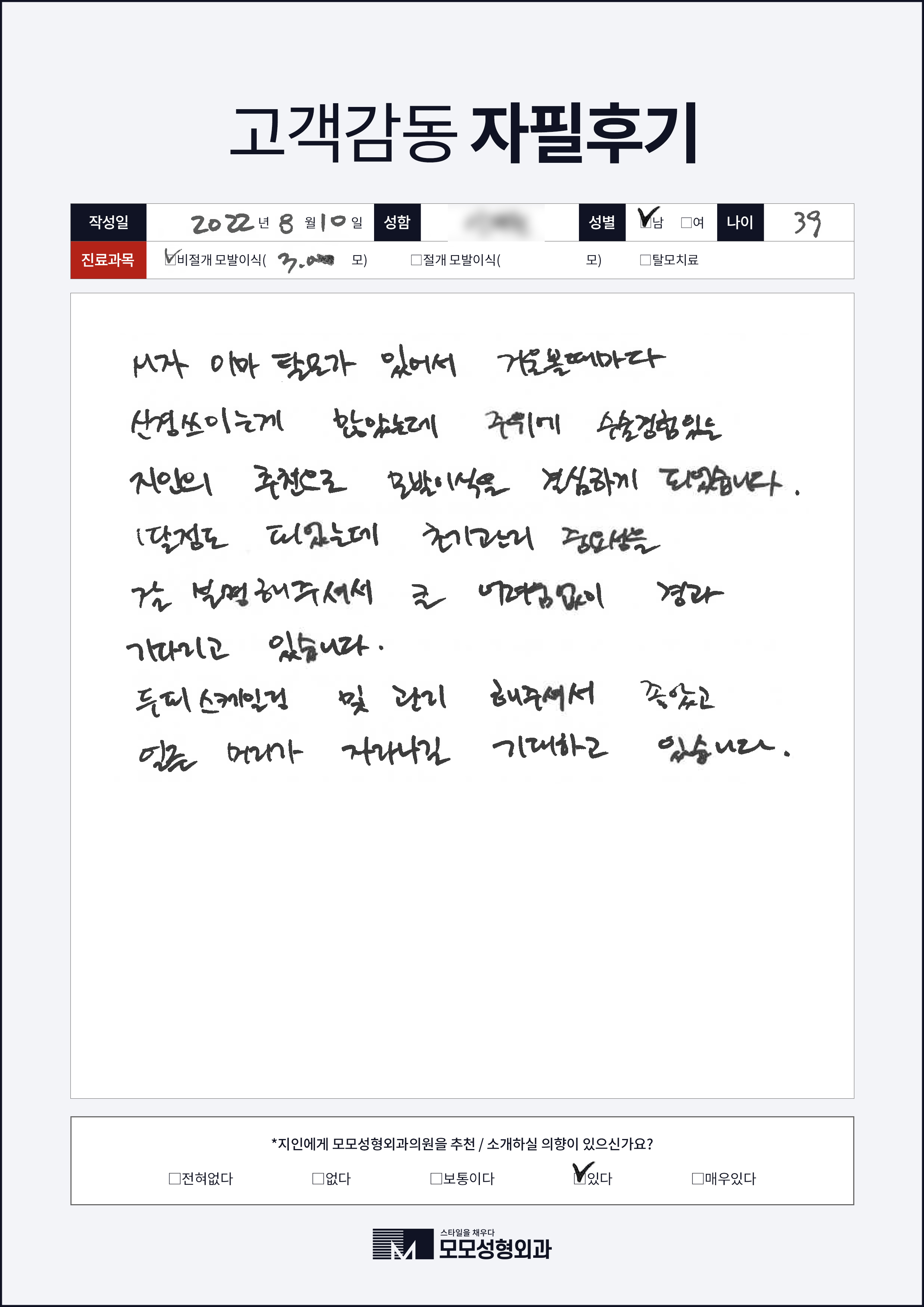 [30대]비절개모발이식3000모, M자이마