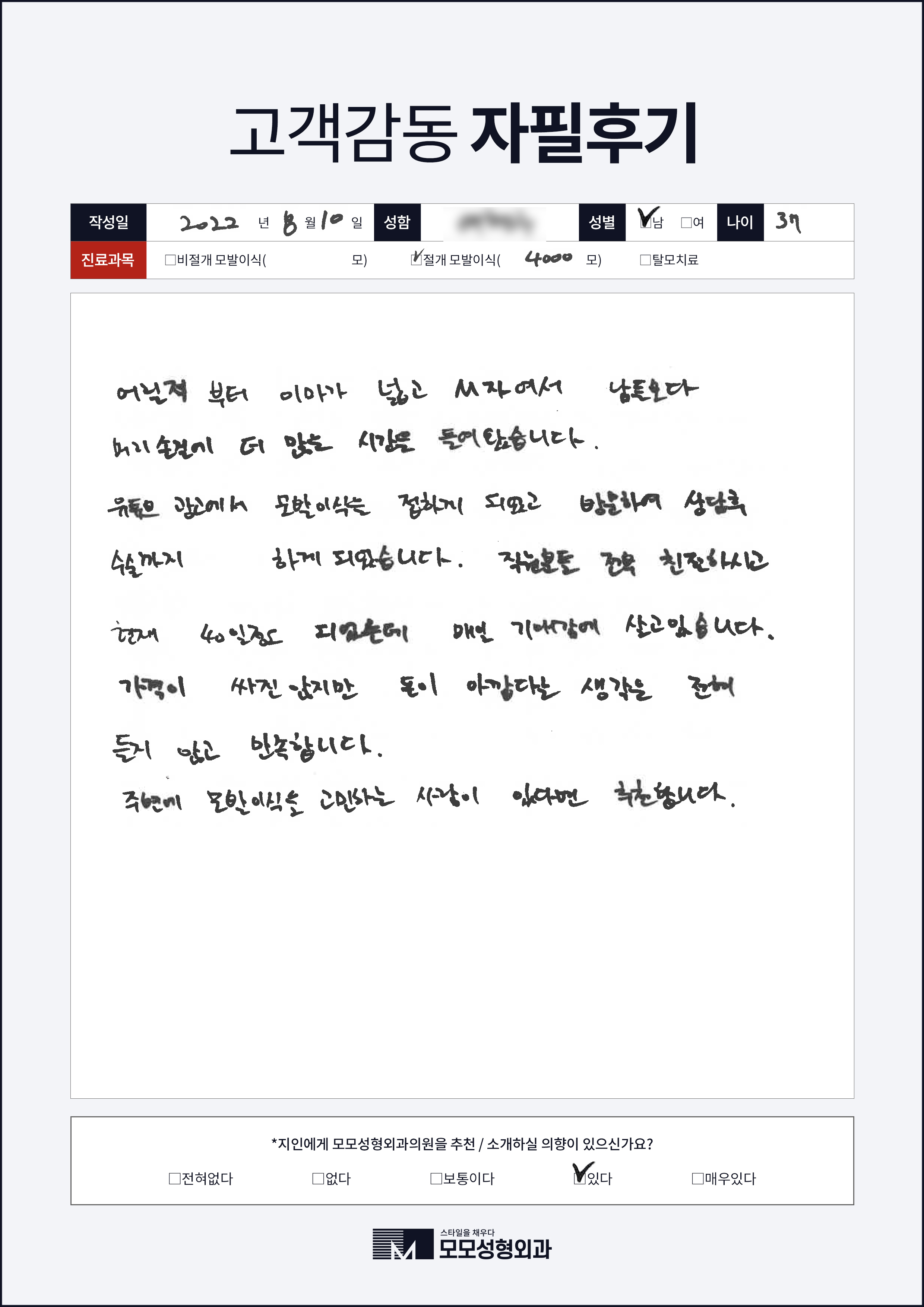 [30대]절개모발이식4000모이상, M자이마