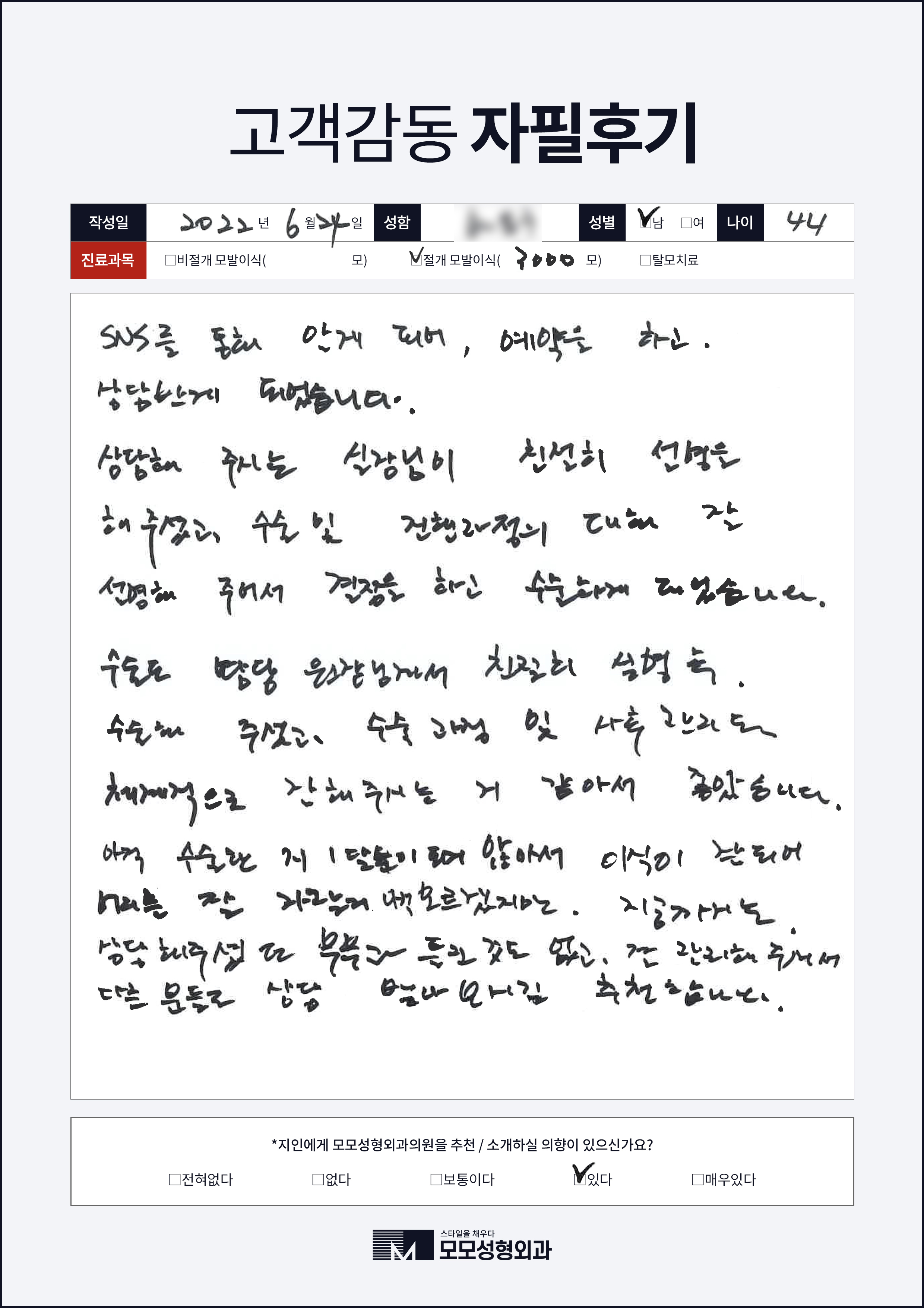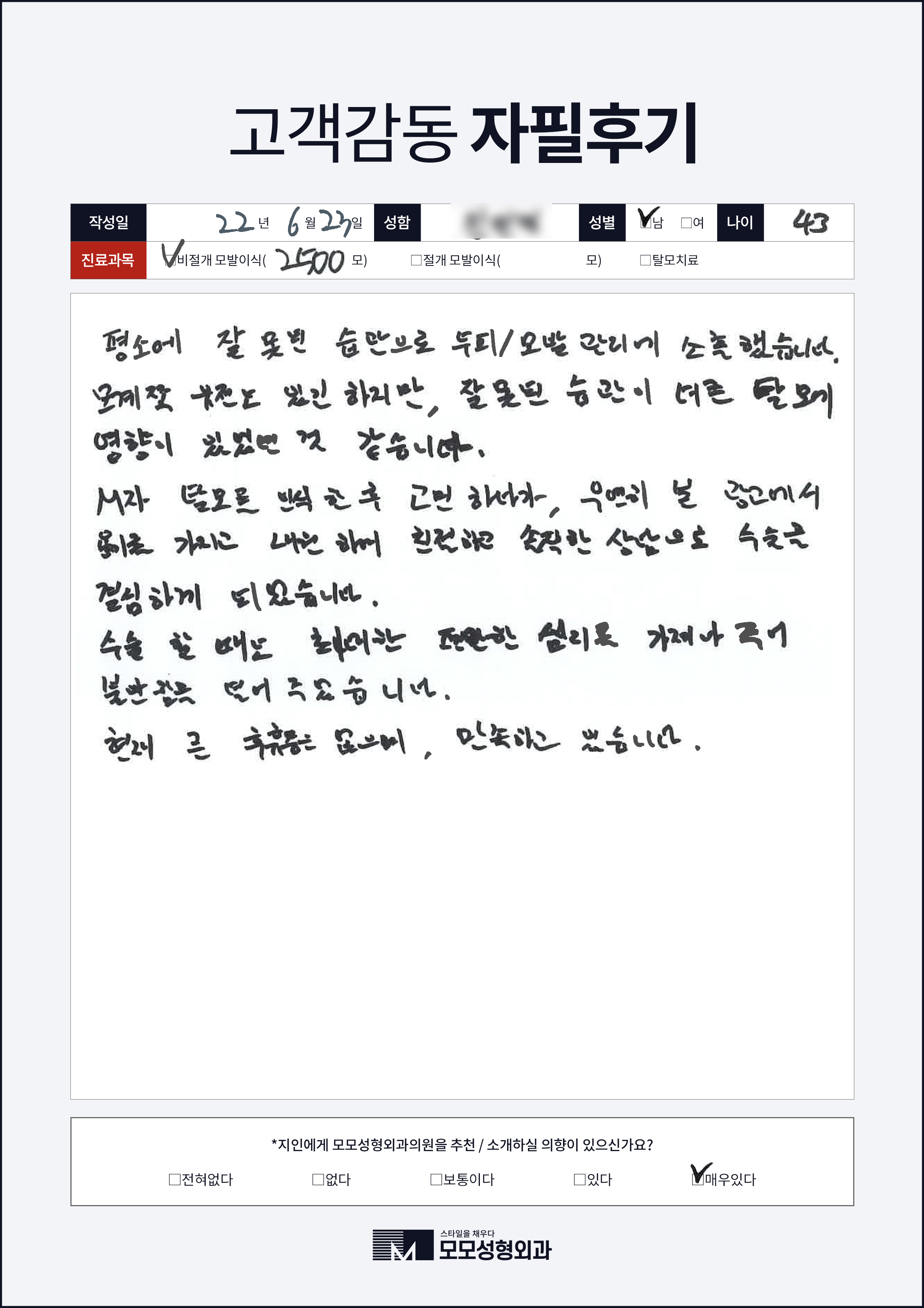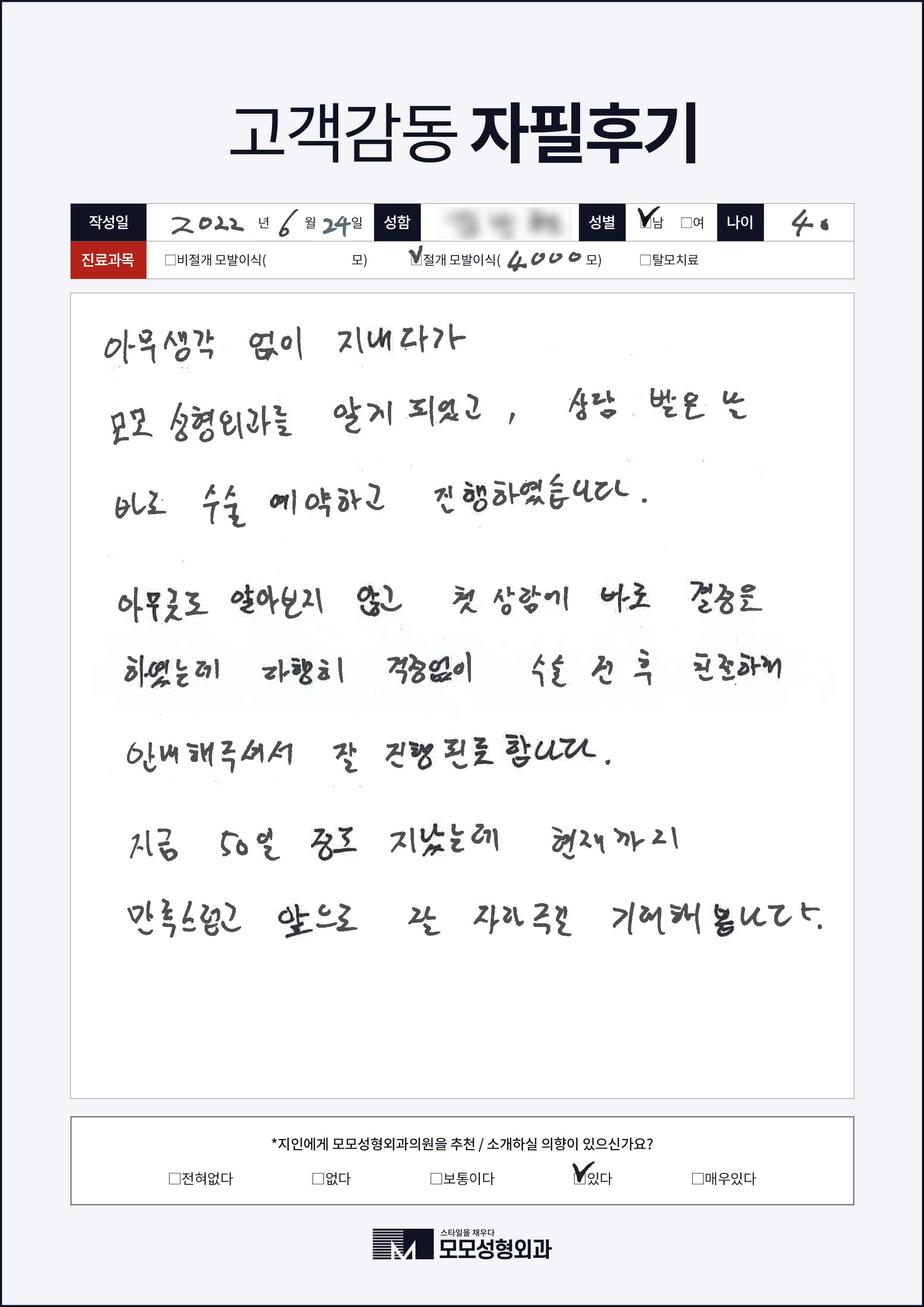 [40대]비절개모발이식