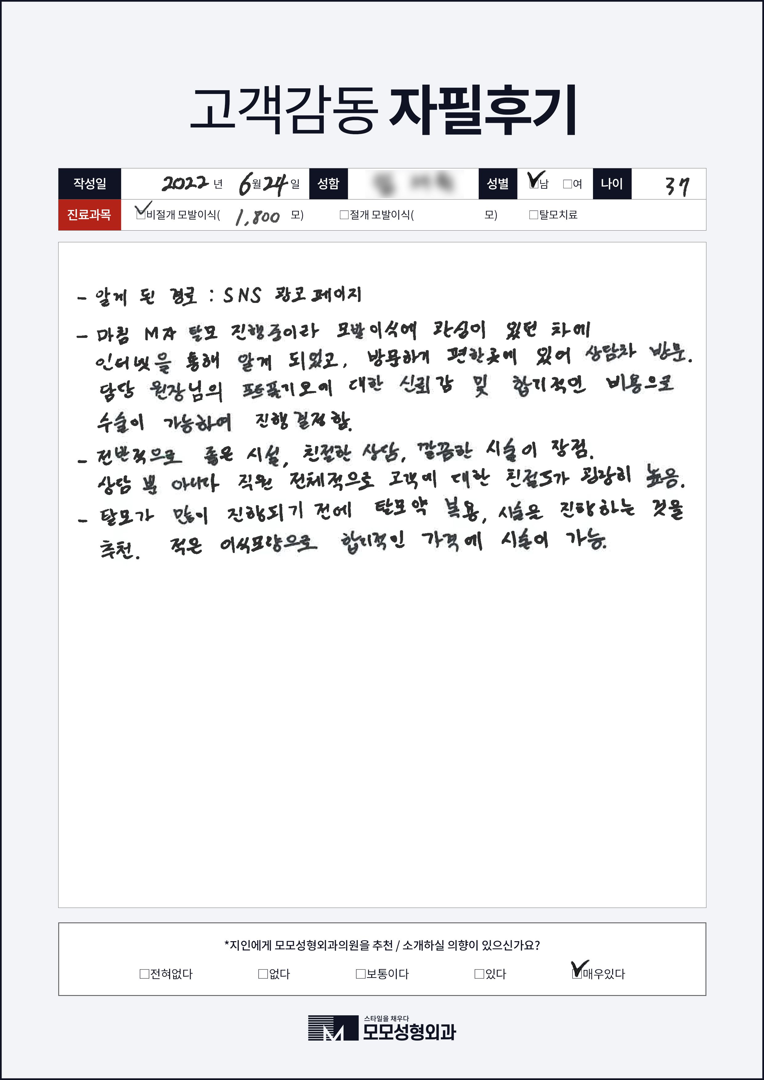 [30대]비절개모발이식