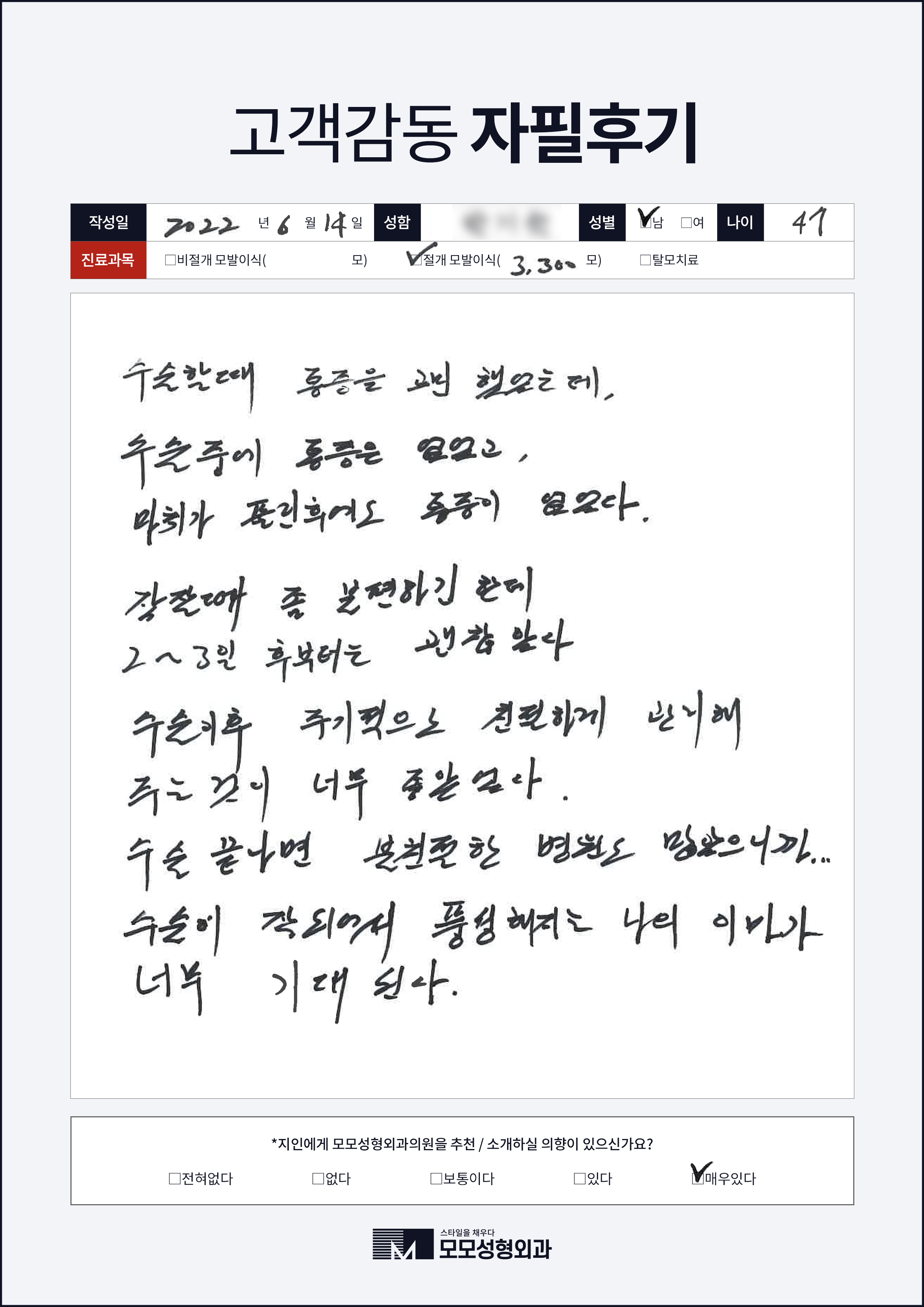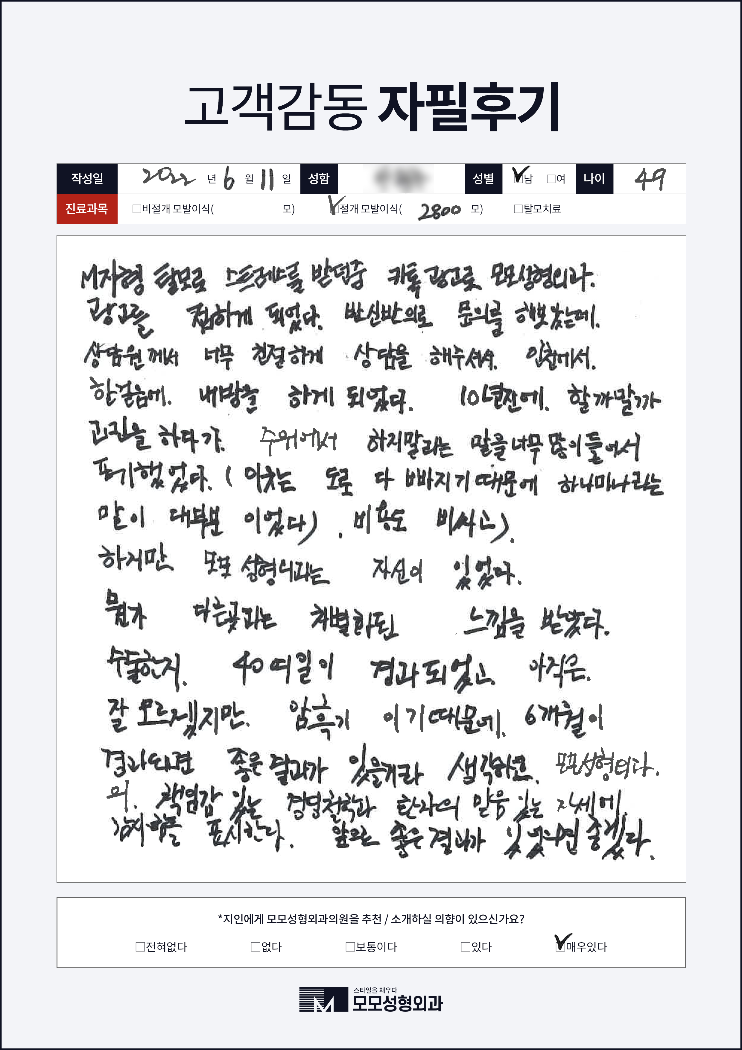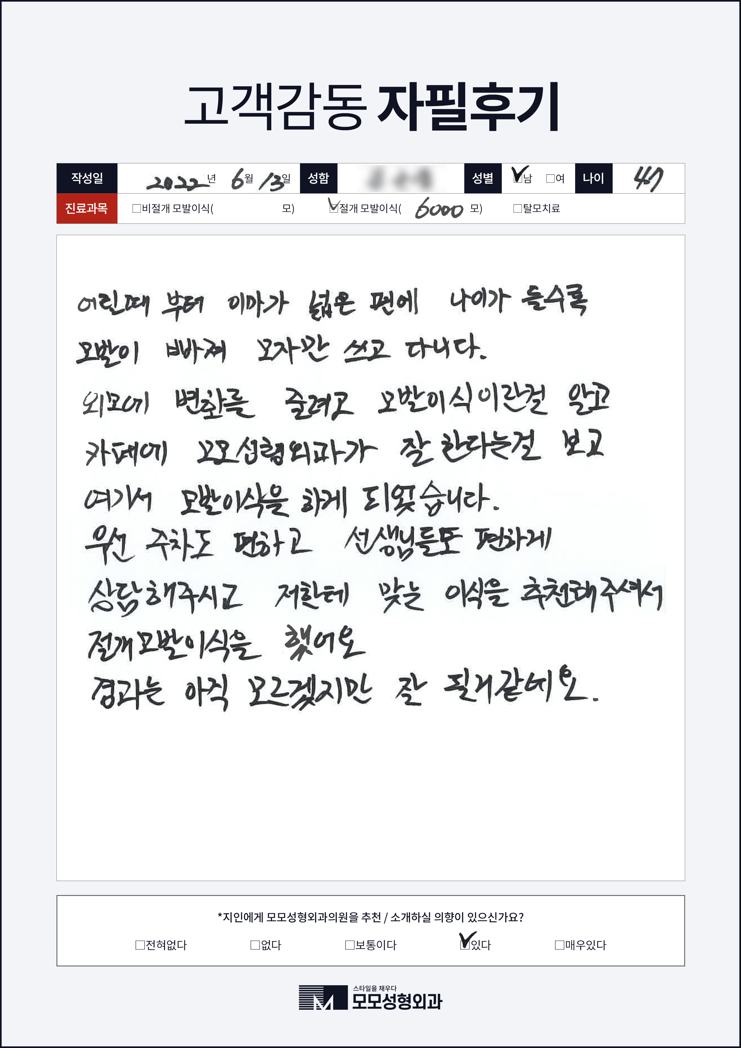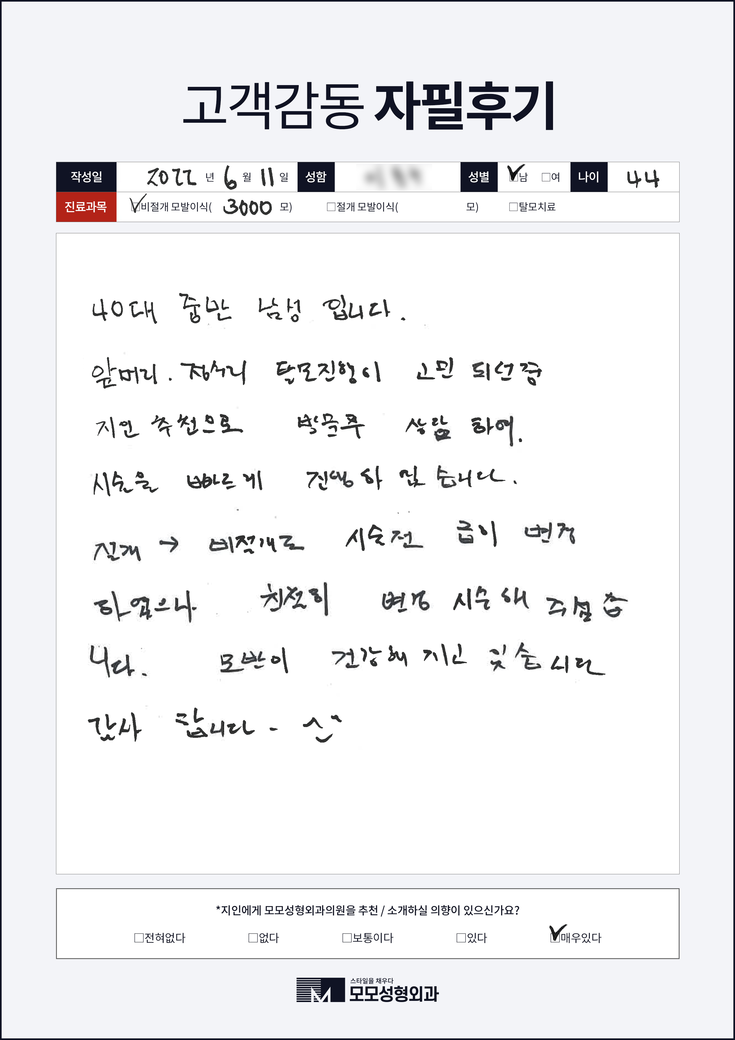 [40대]비절개모발이식3000모, M자이마