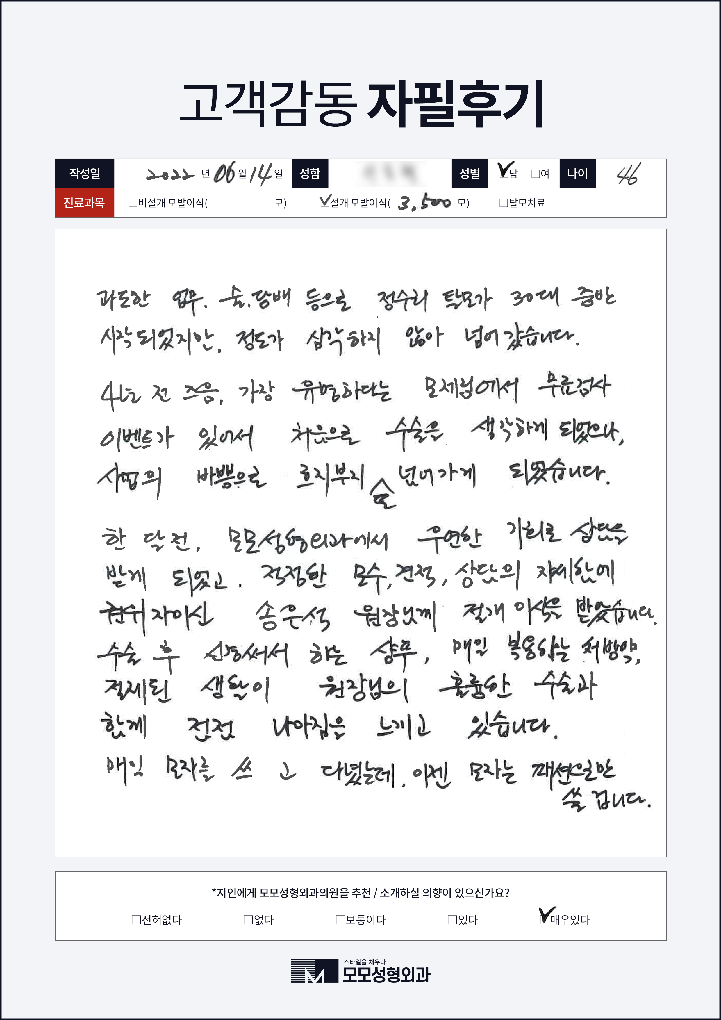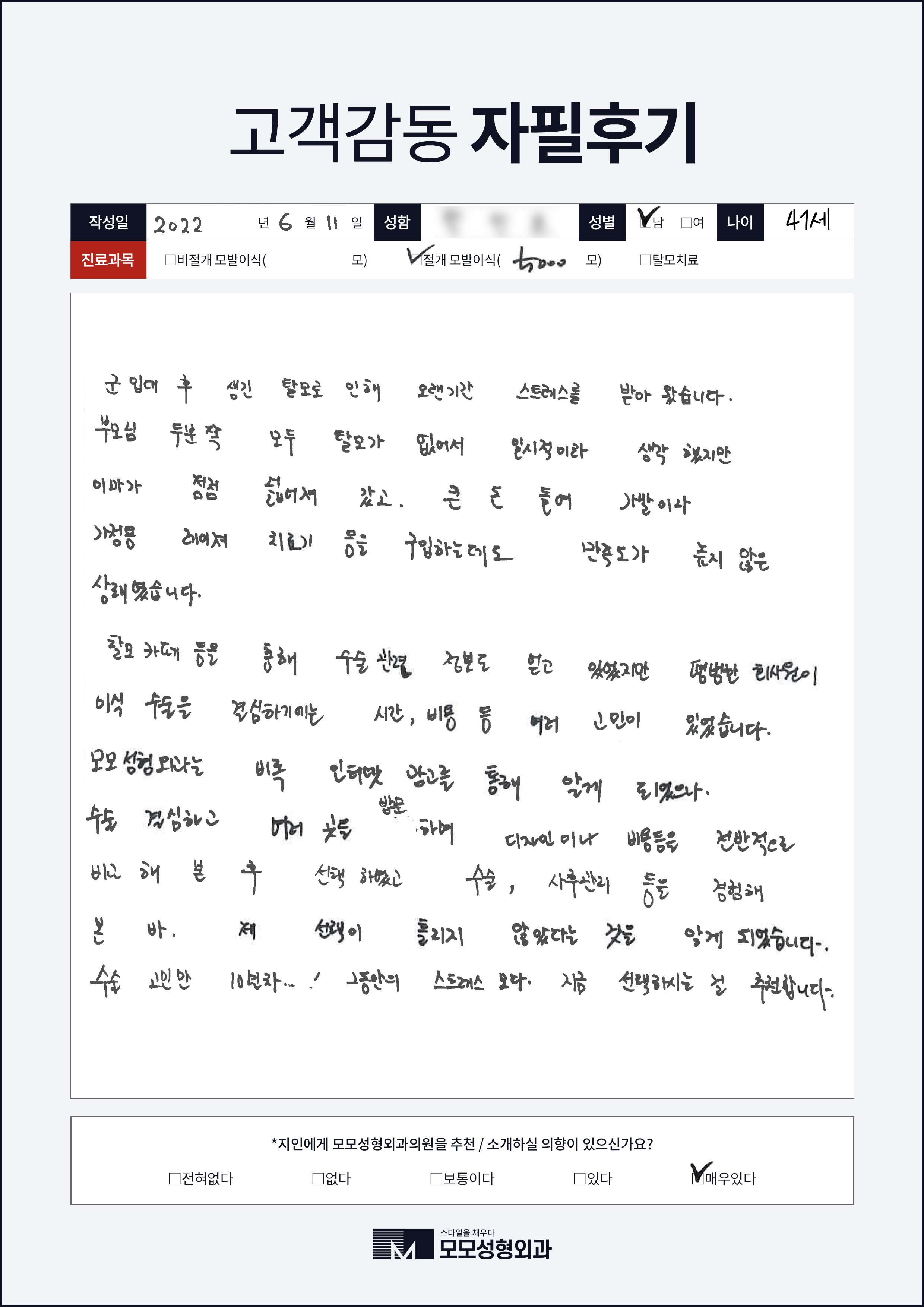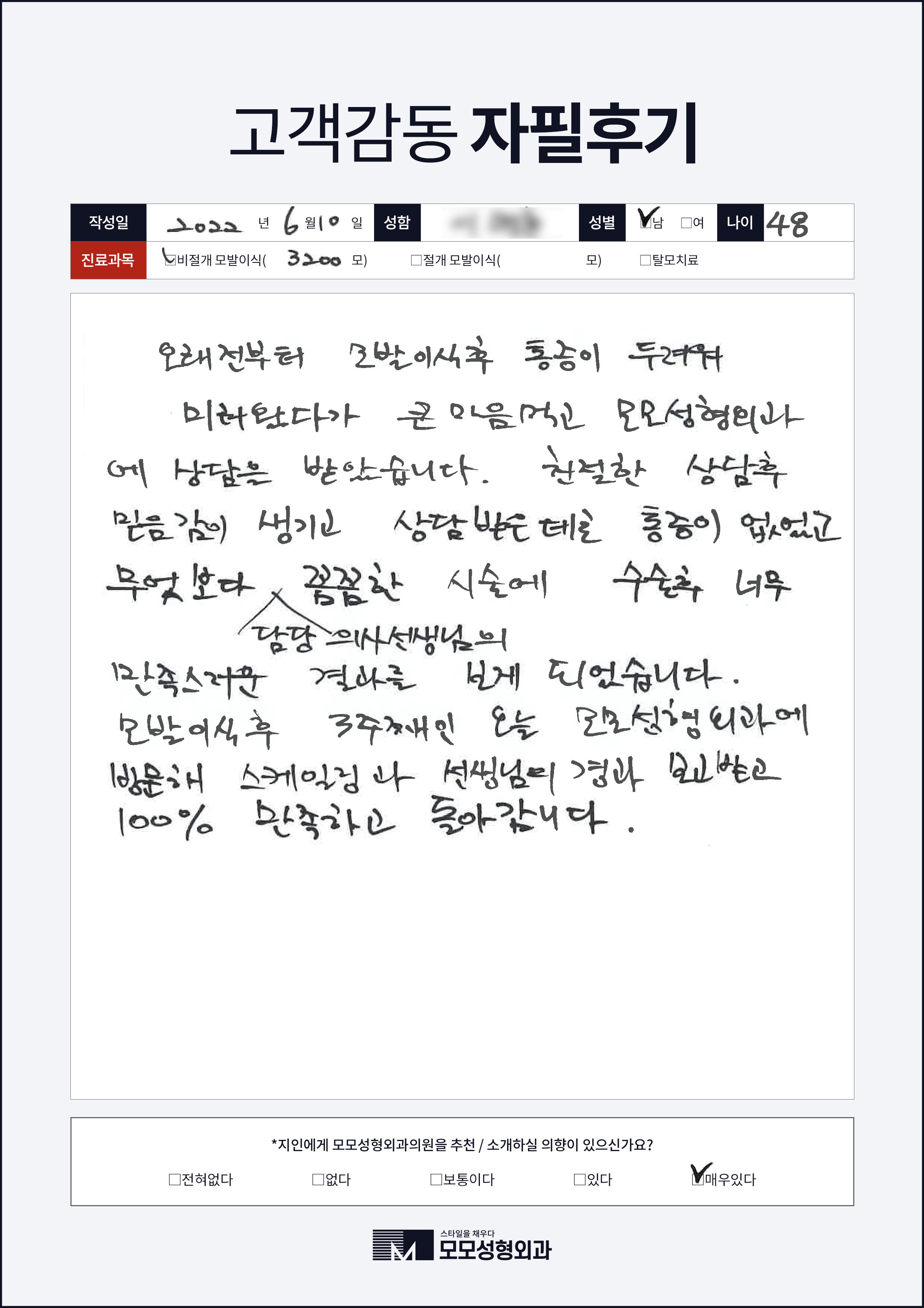 [40대]비절개모발이식3000모, M자이마