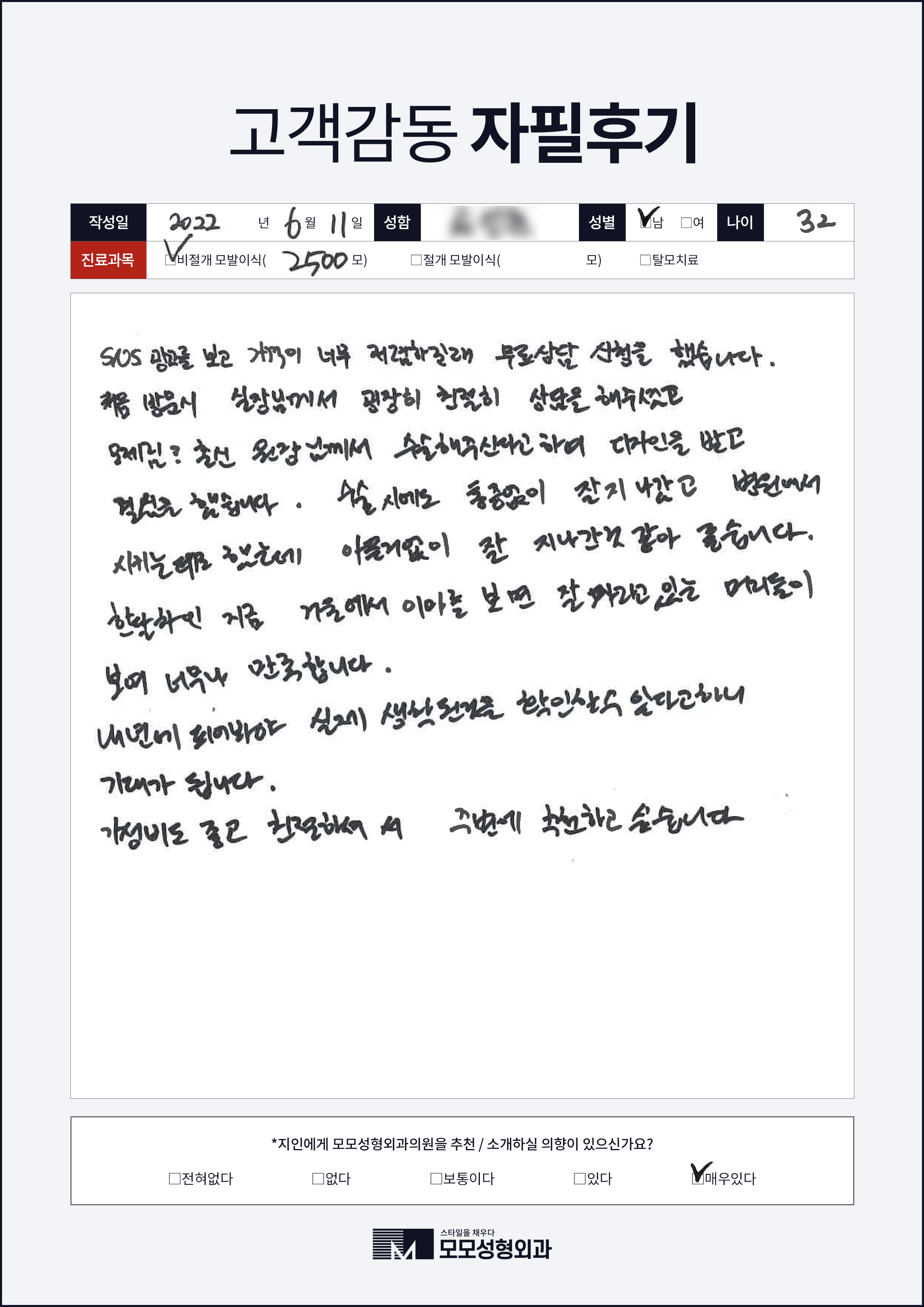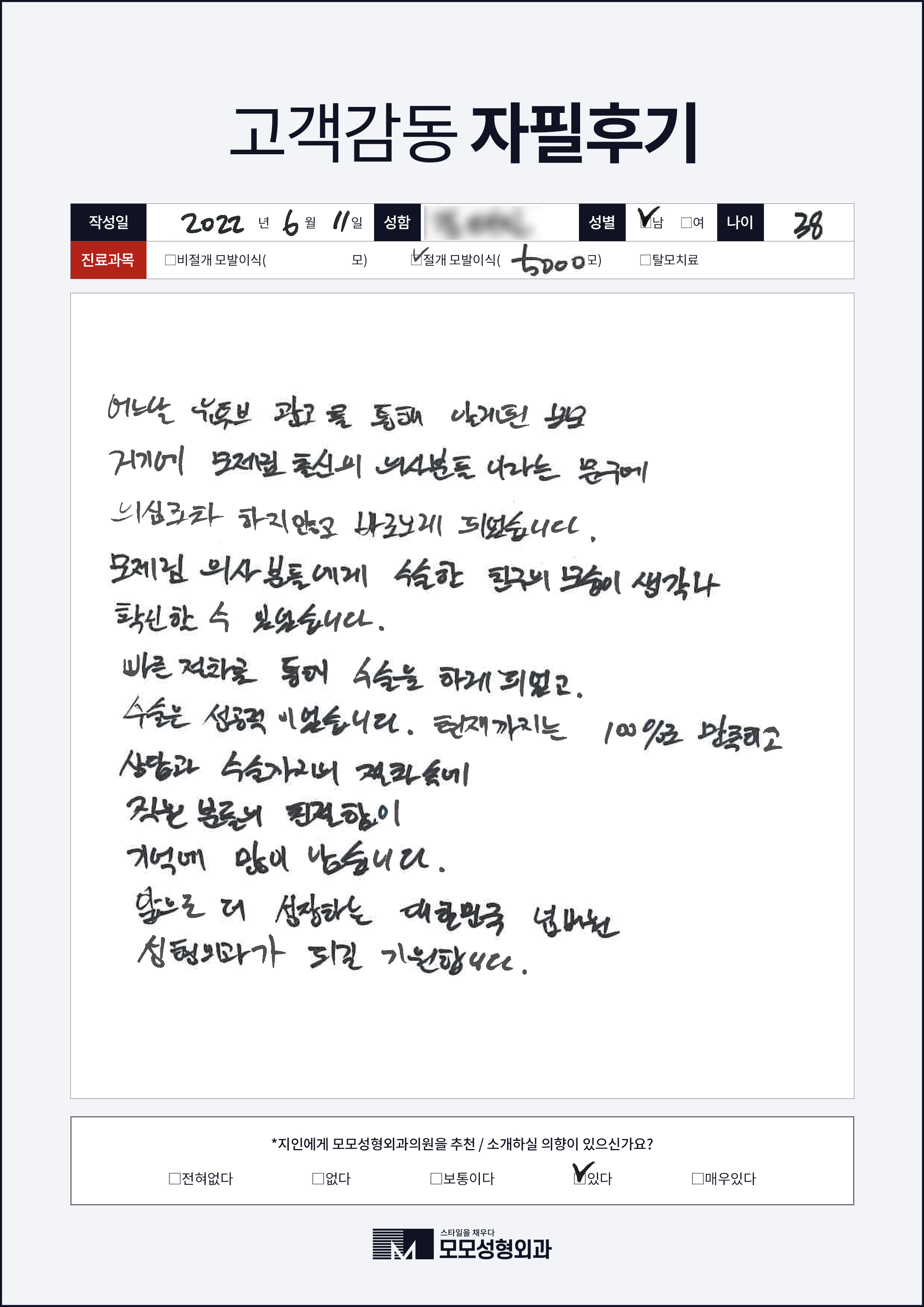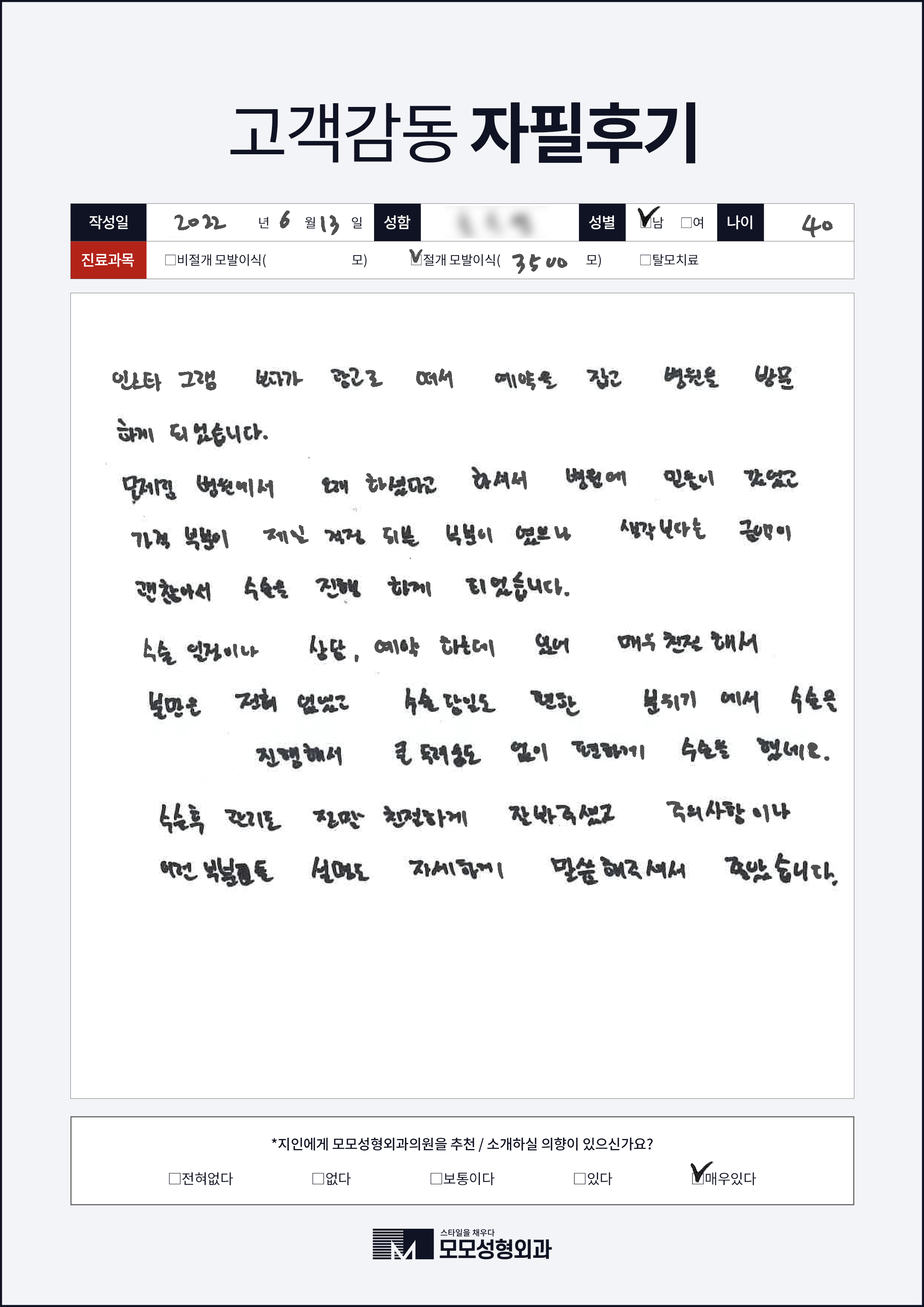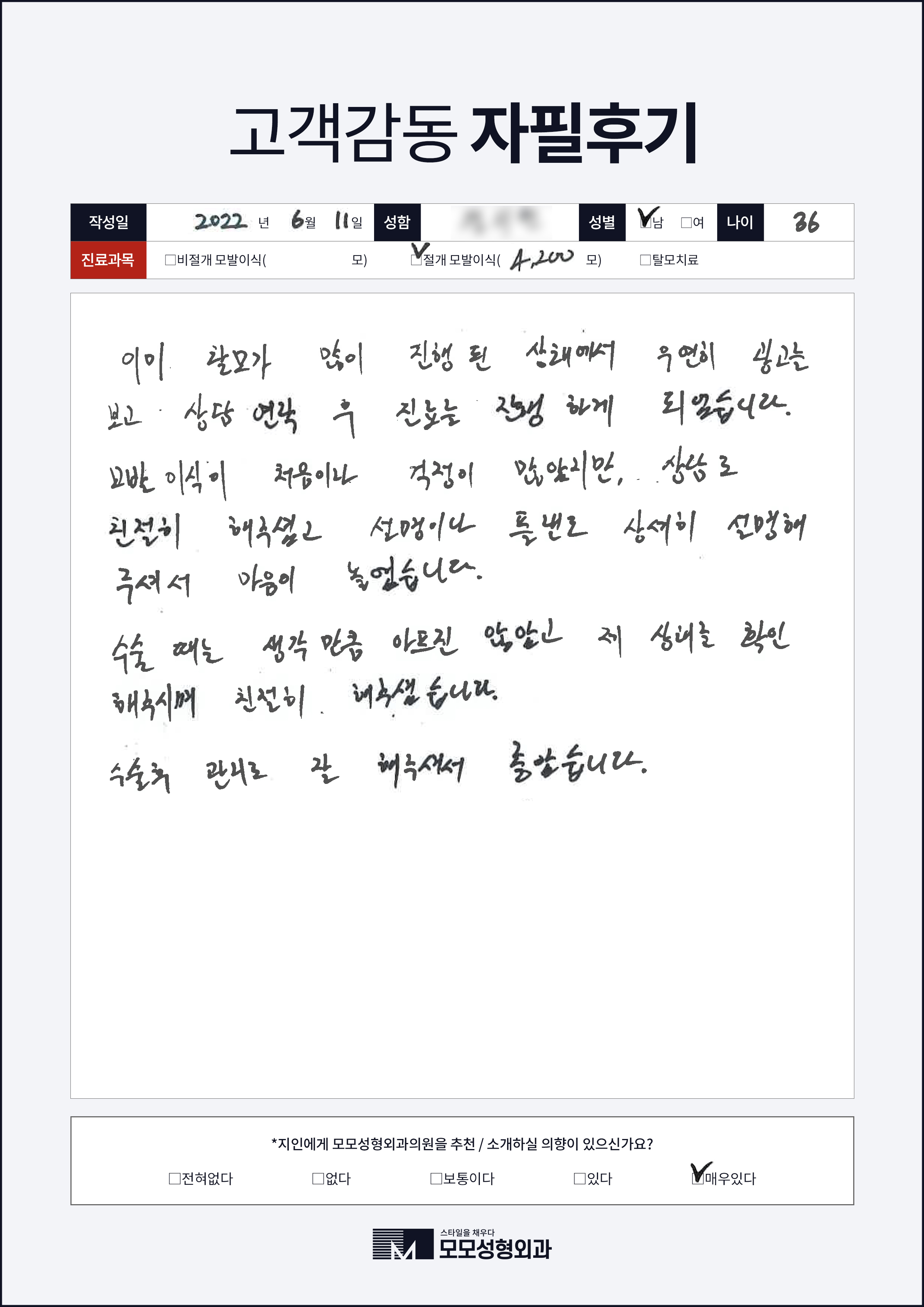 [40대]비절개모발이식3000모, M자이마