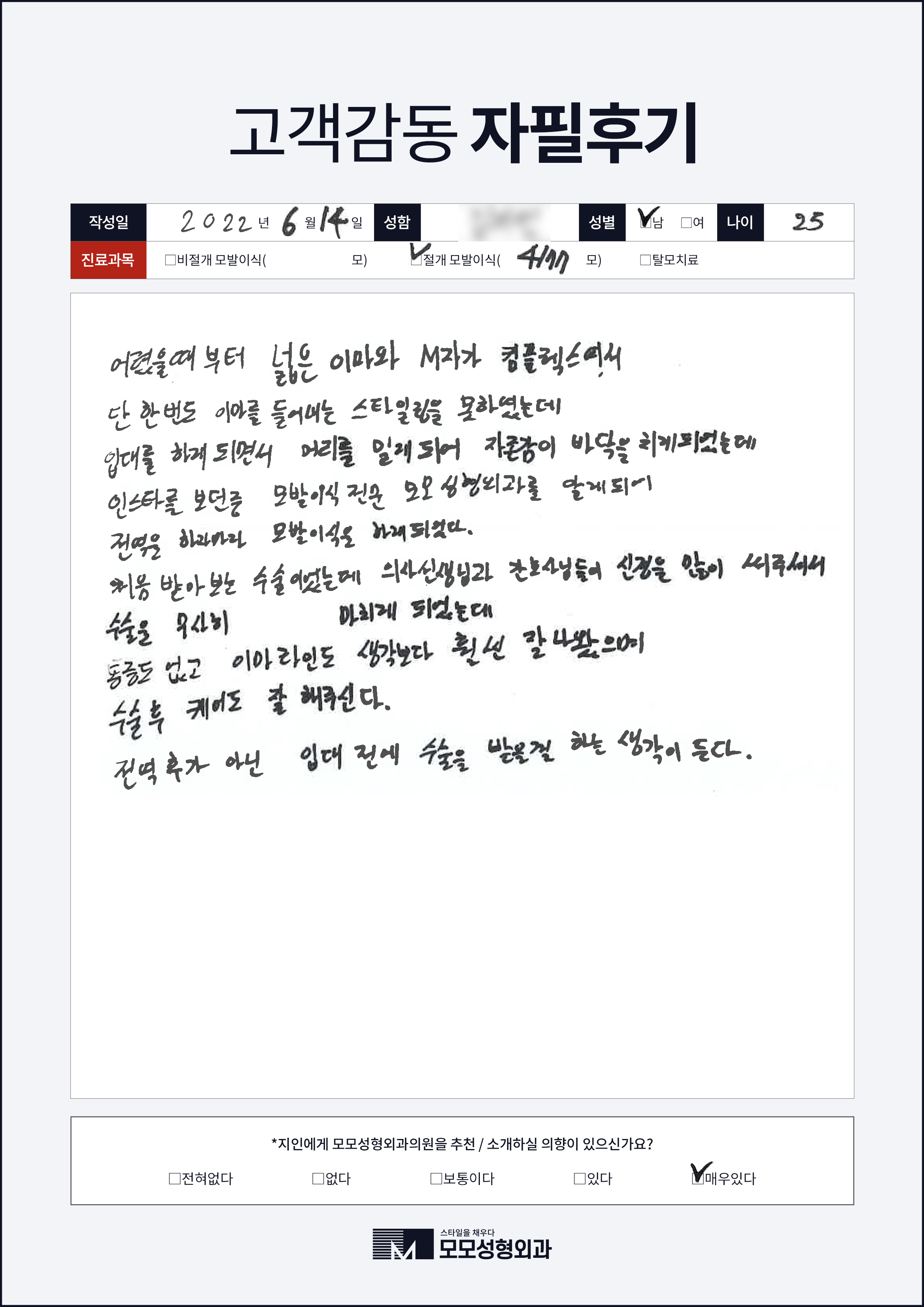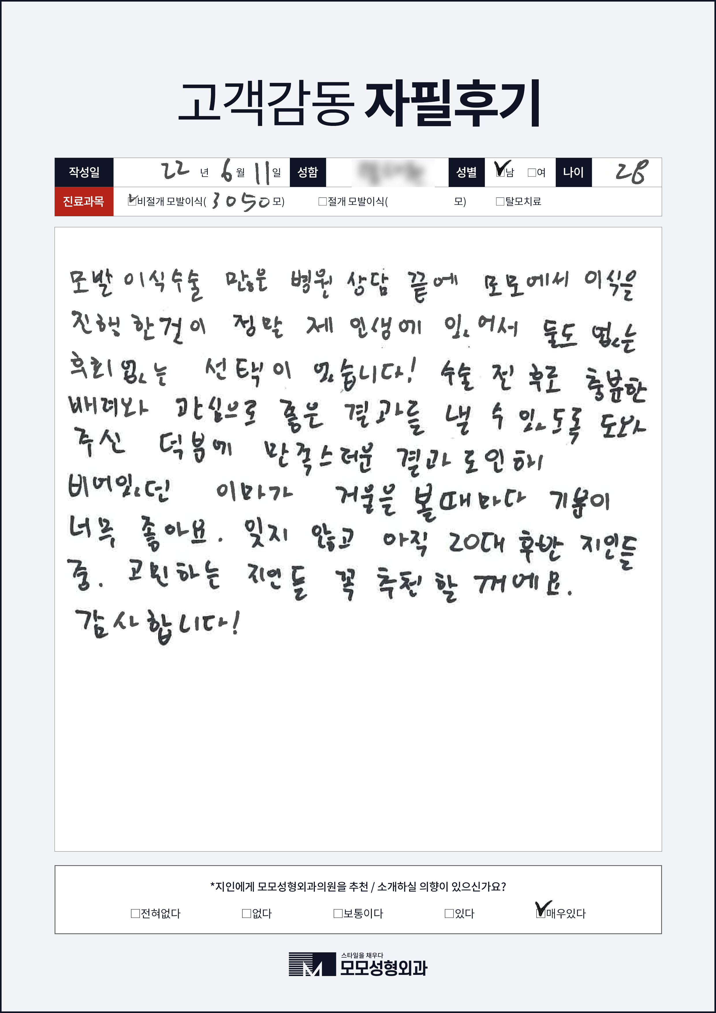 [20대]비절개모발이식3000모, M자이마