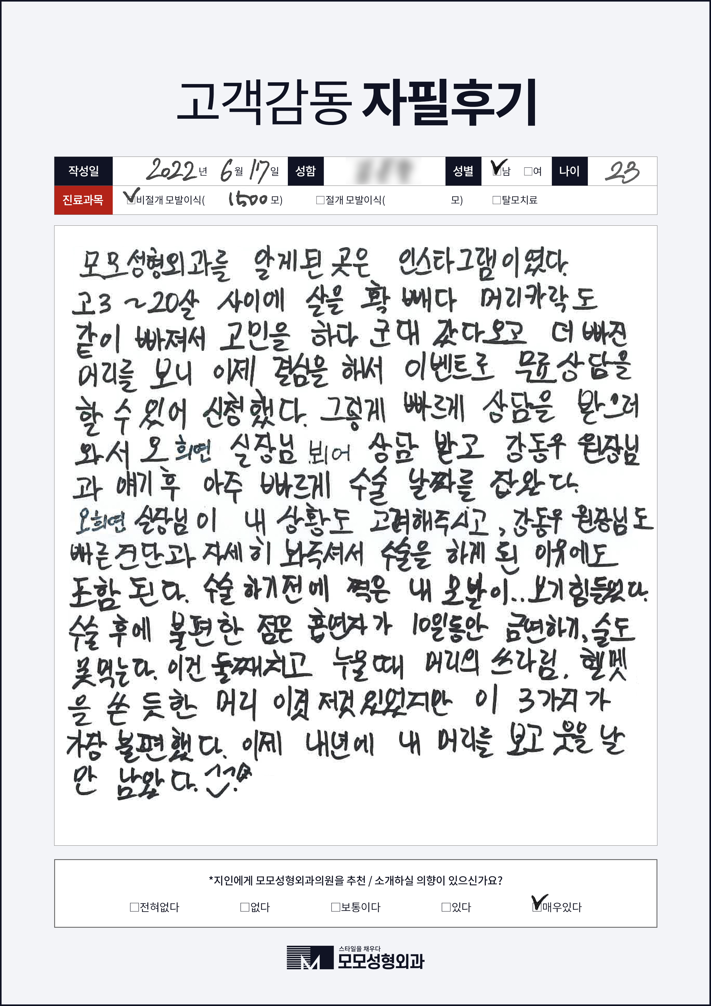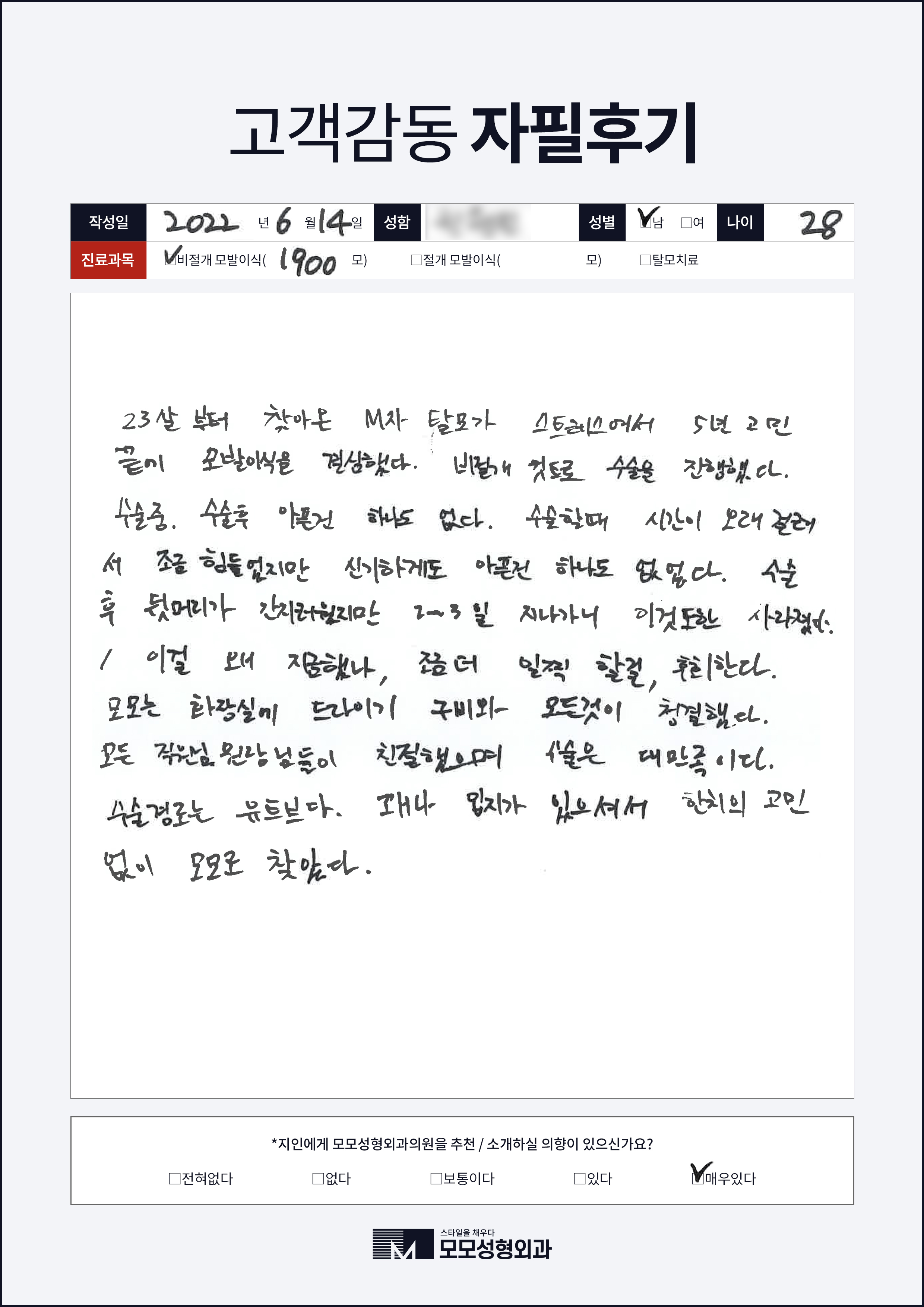 [20대]비절개모발이식1000모, M자이마