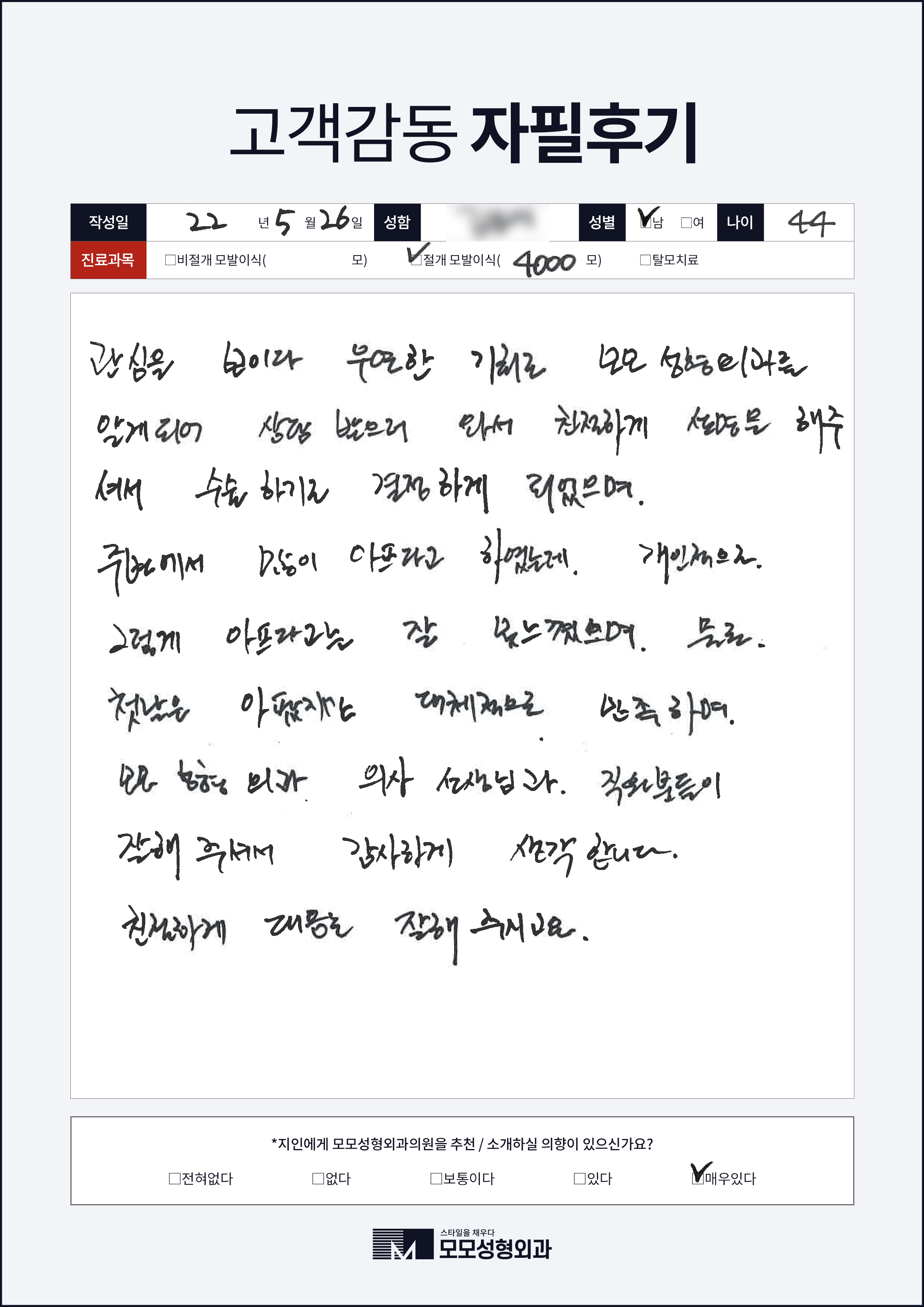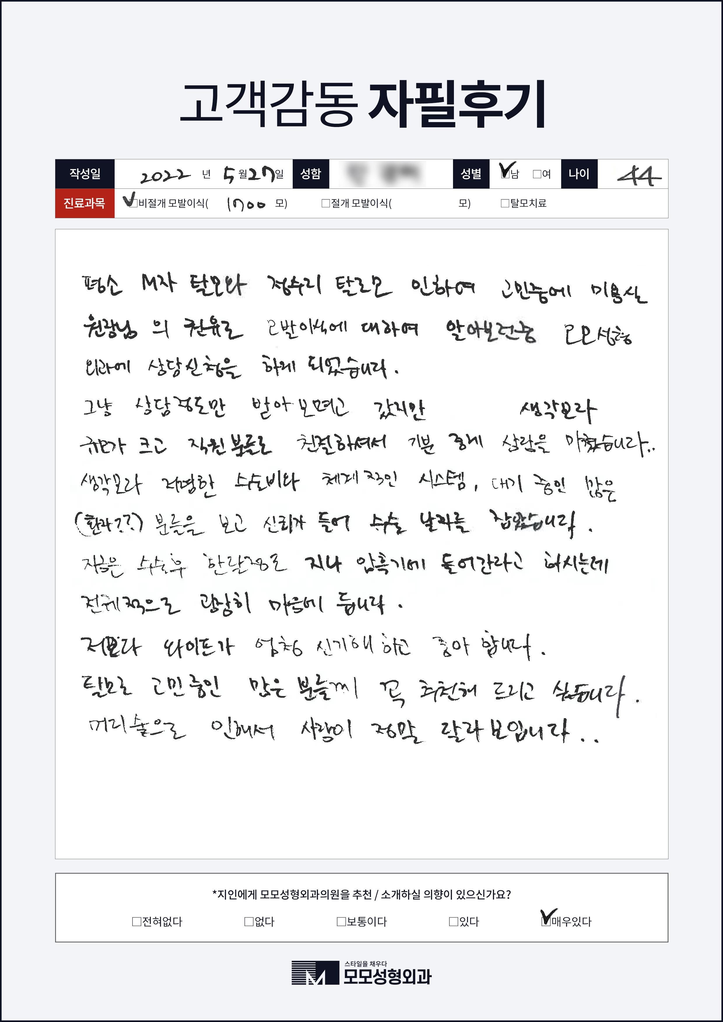 [40대]비절개모발이식