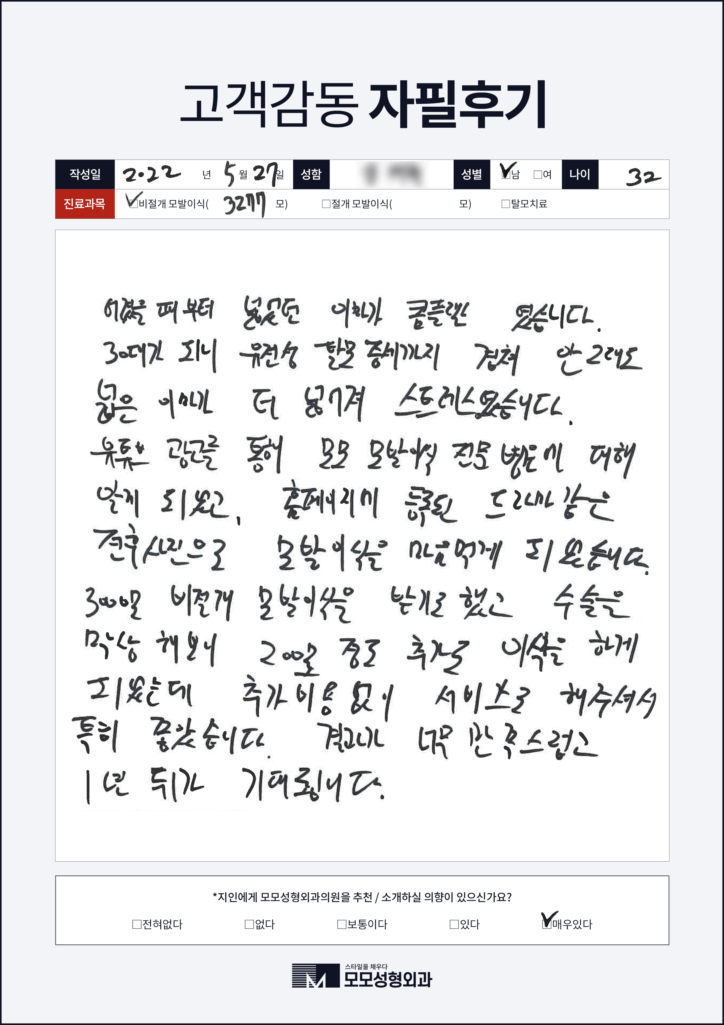 [30대]비절개모발이식