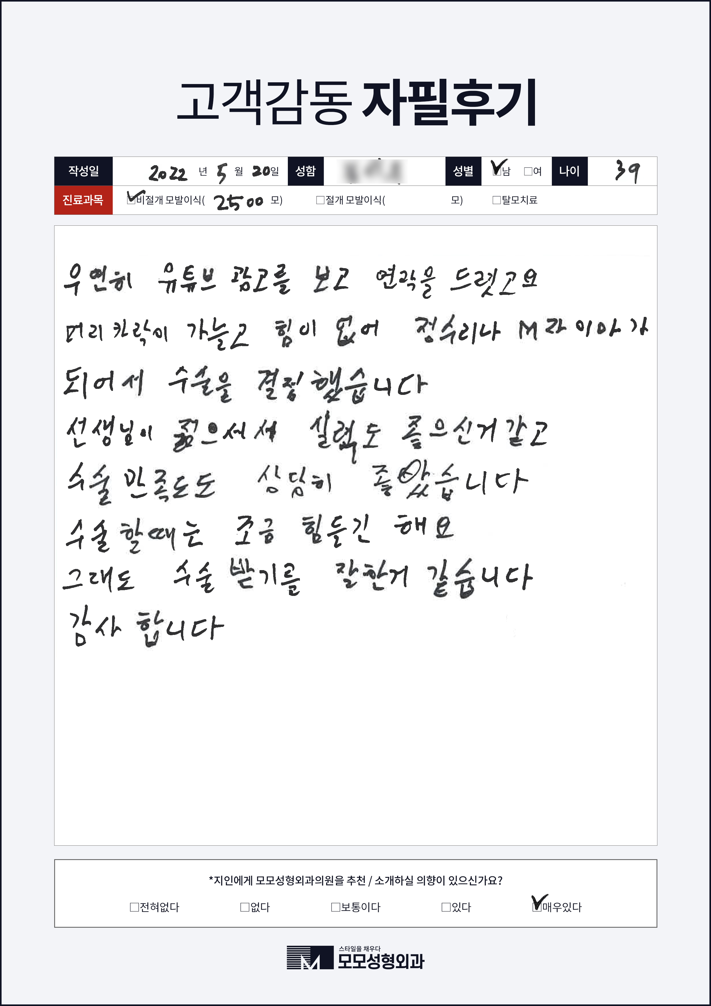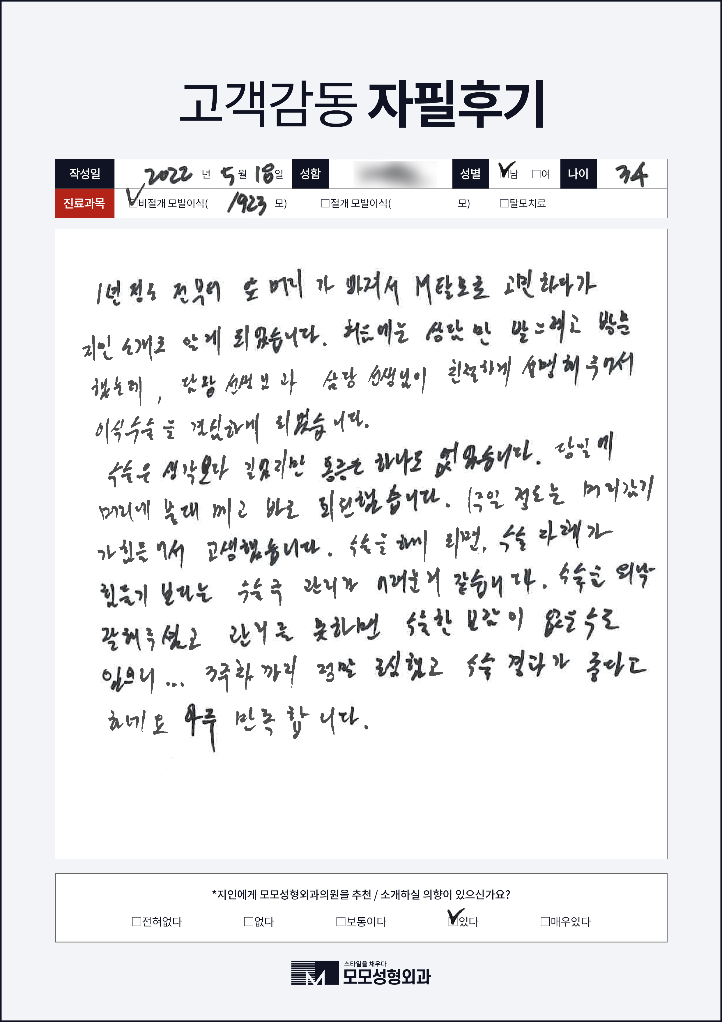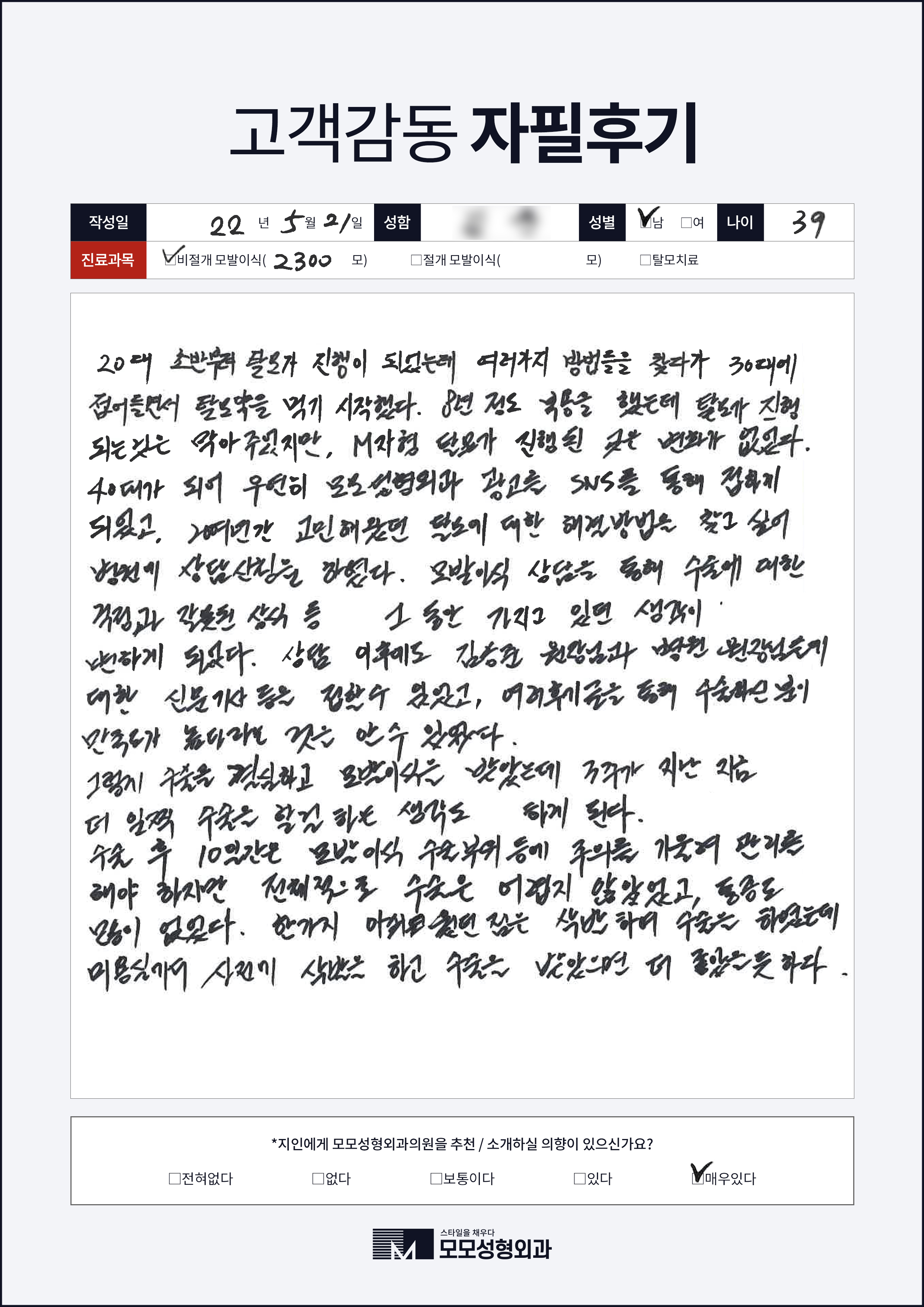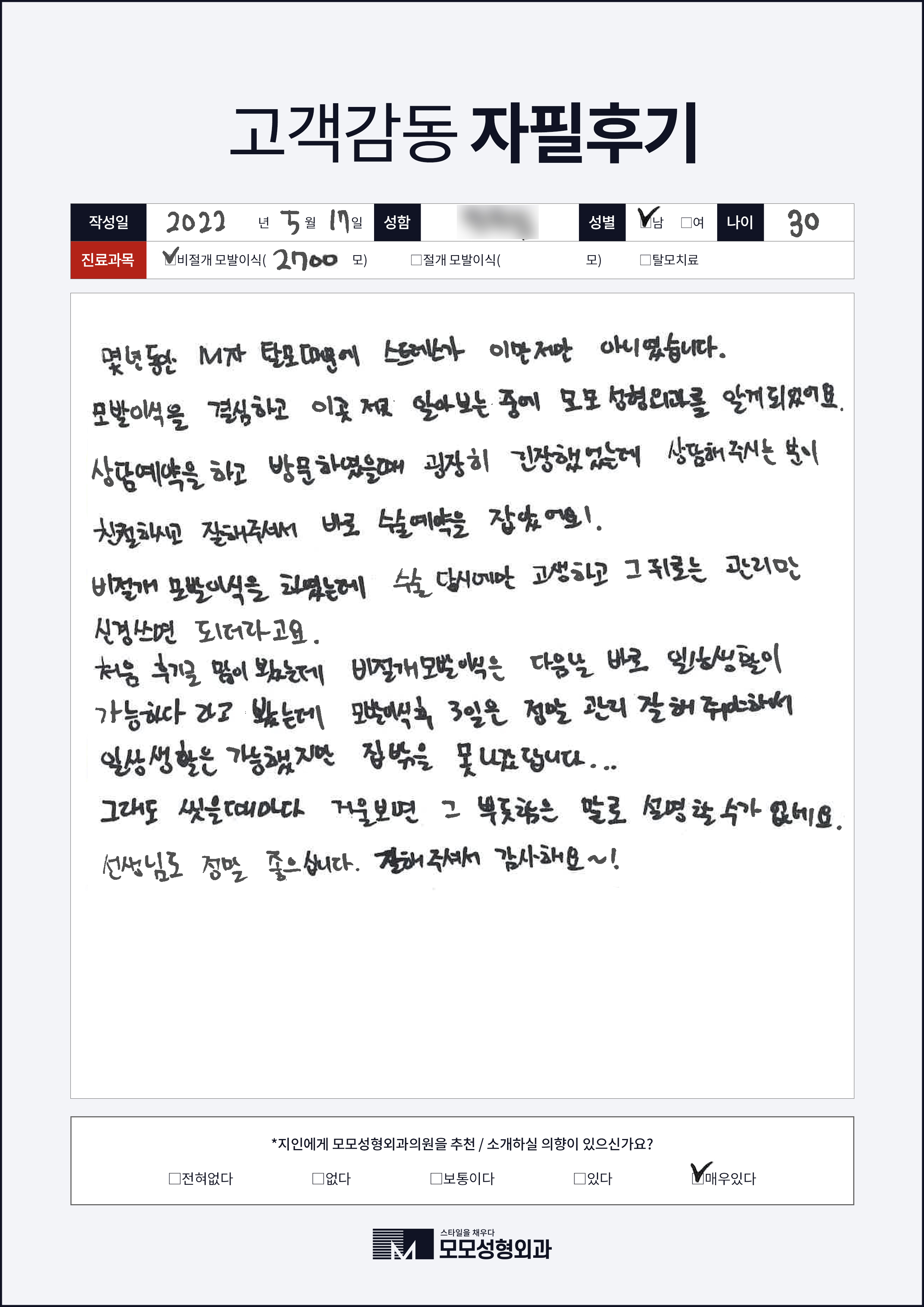 [30대]비절개모발이식2000모, M자이마