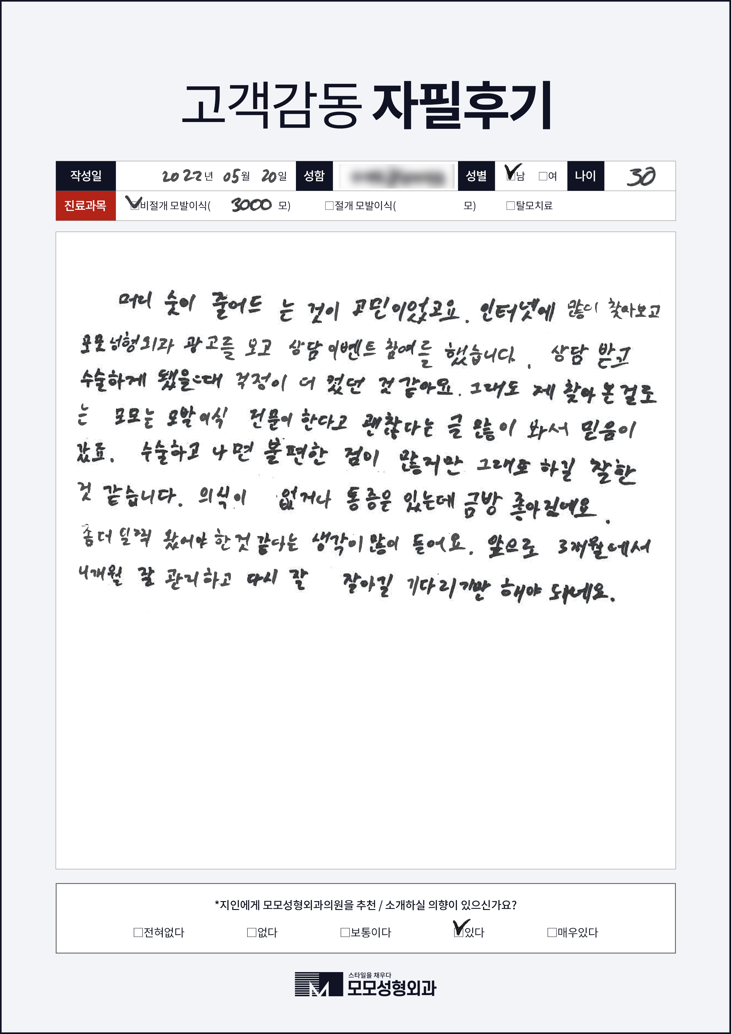 [30대]비절개모발이식3000모, M자이마