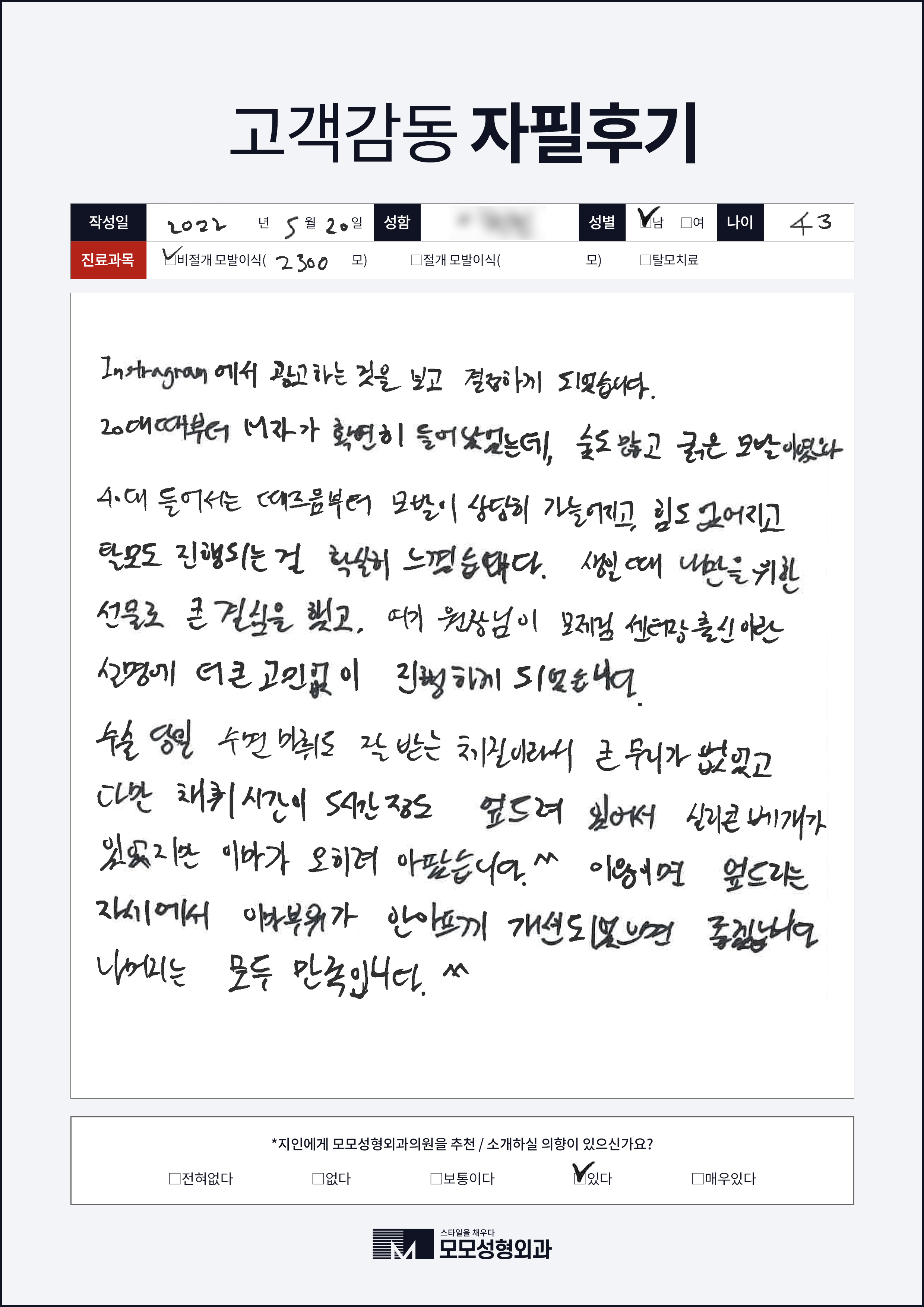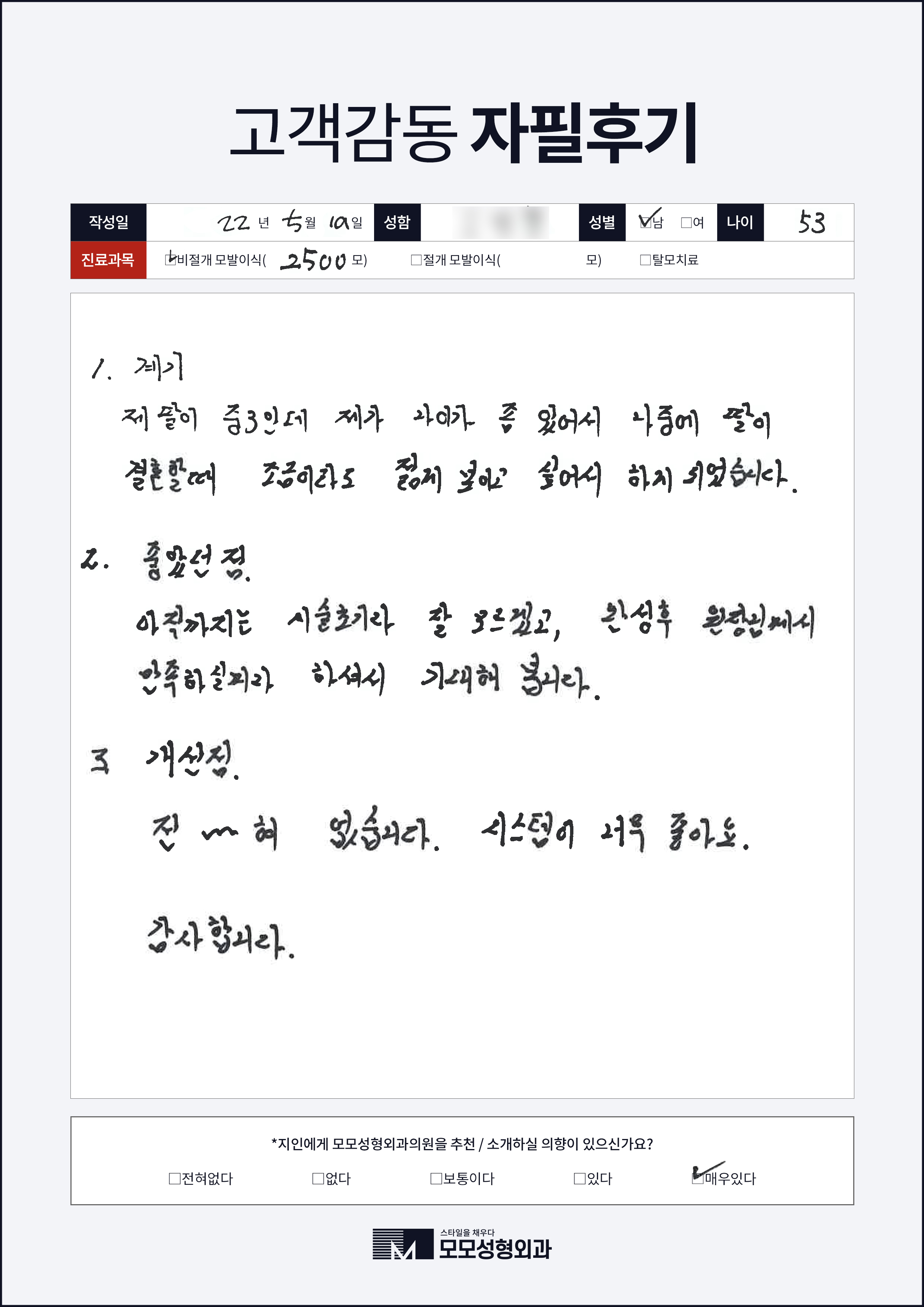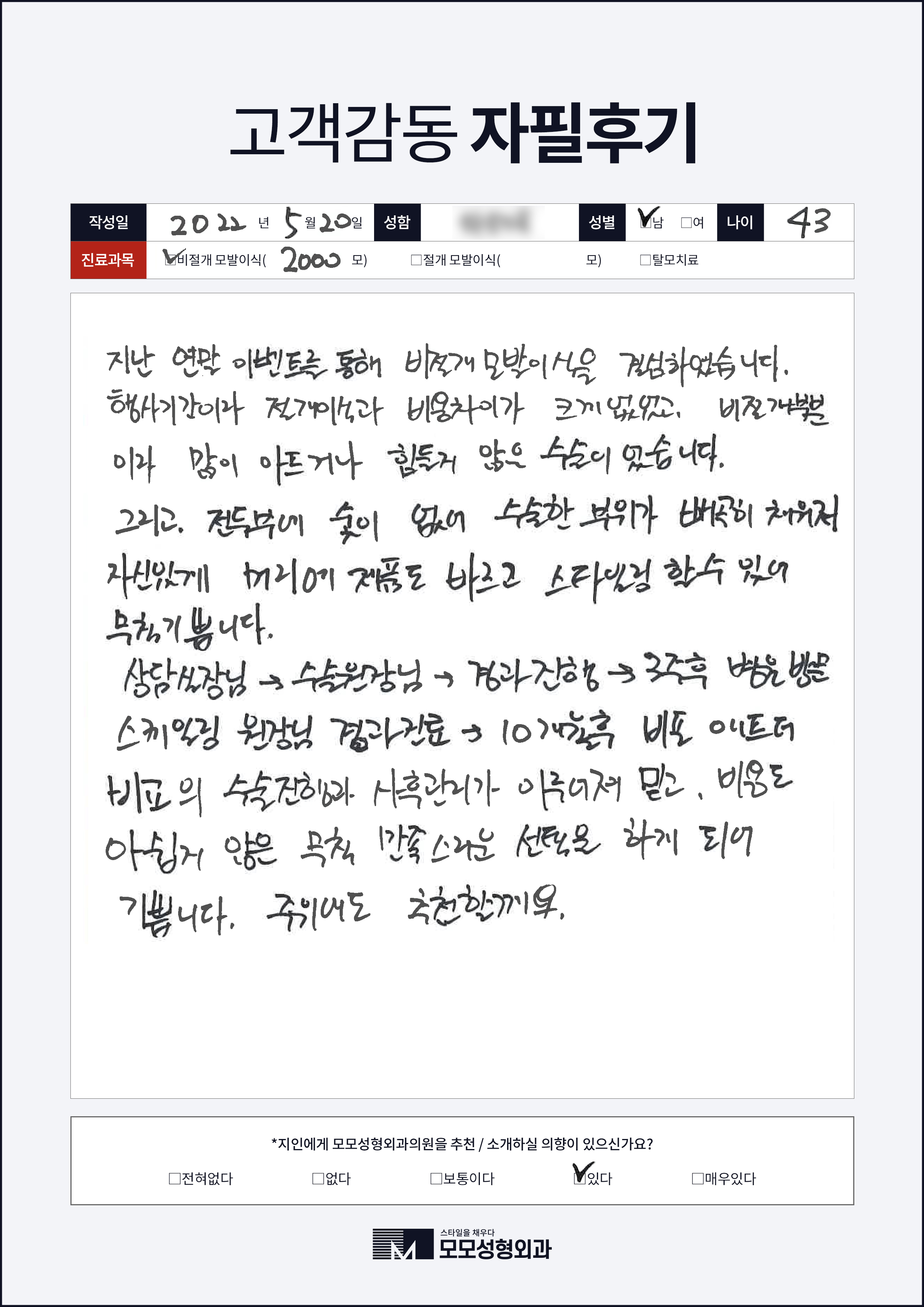 [40대]비절개모발이식2000모, 여러부위