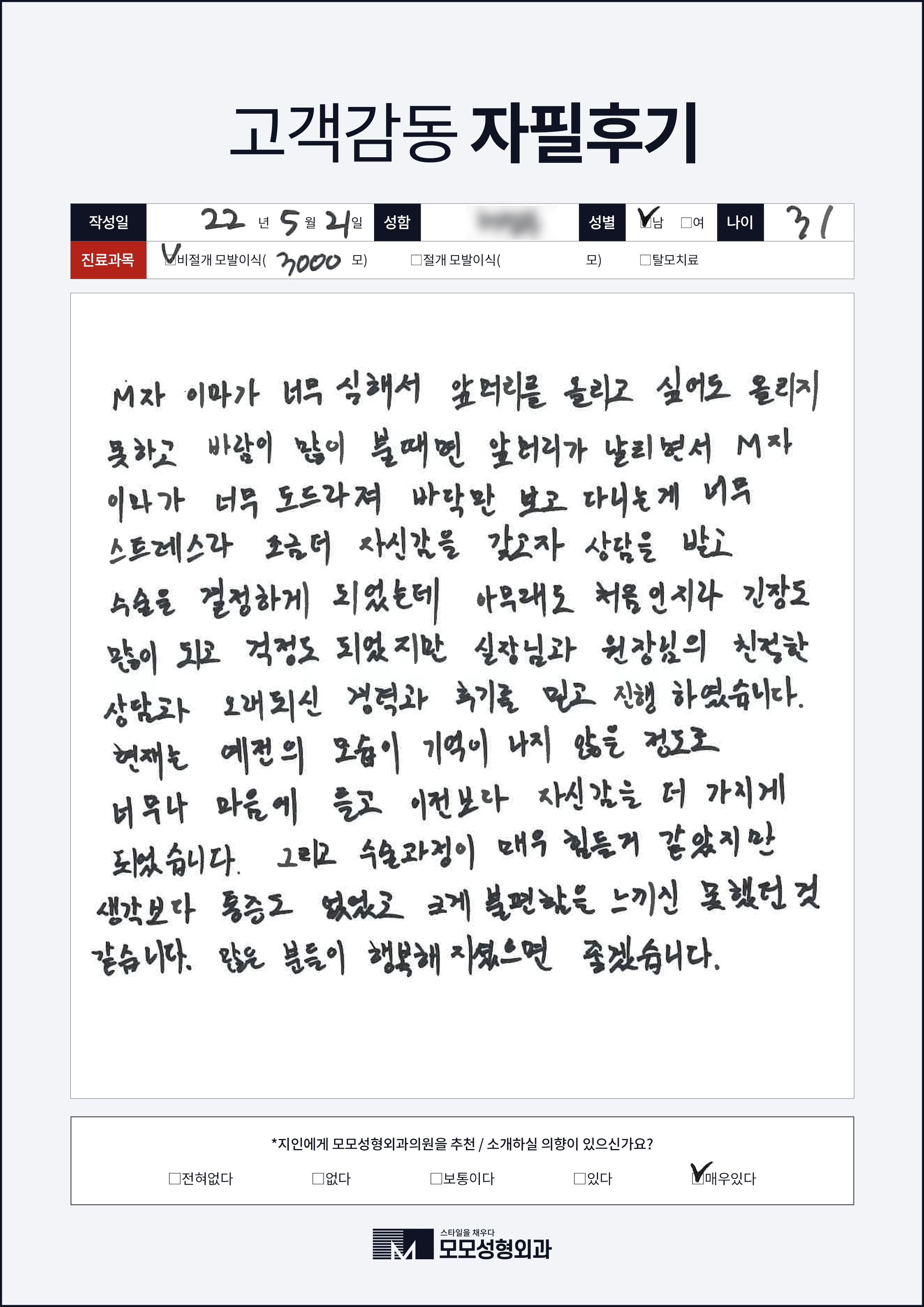 [30대]비절개모발이식1000모, M자이마