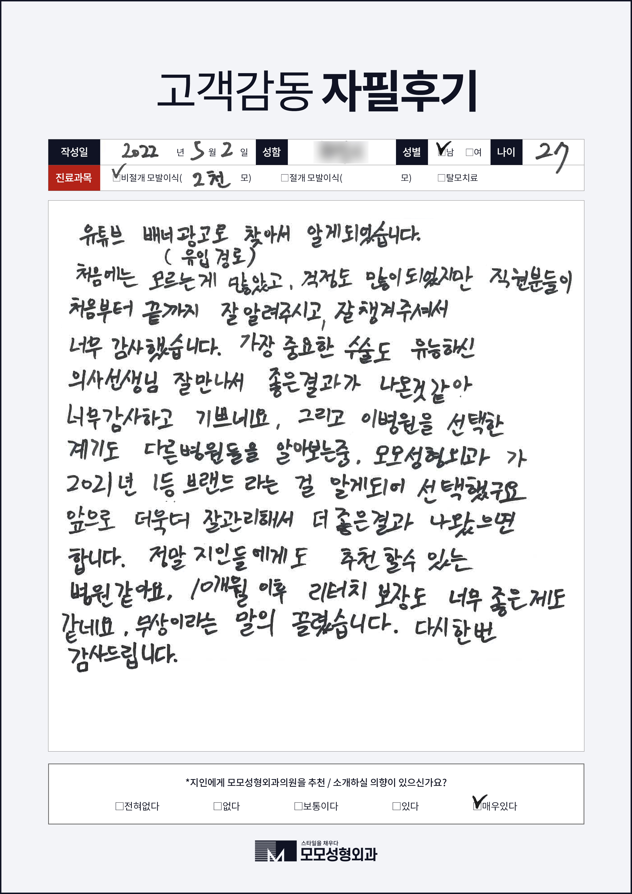 [20대]비절개모발이식2000모, 여러부위