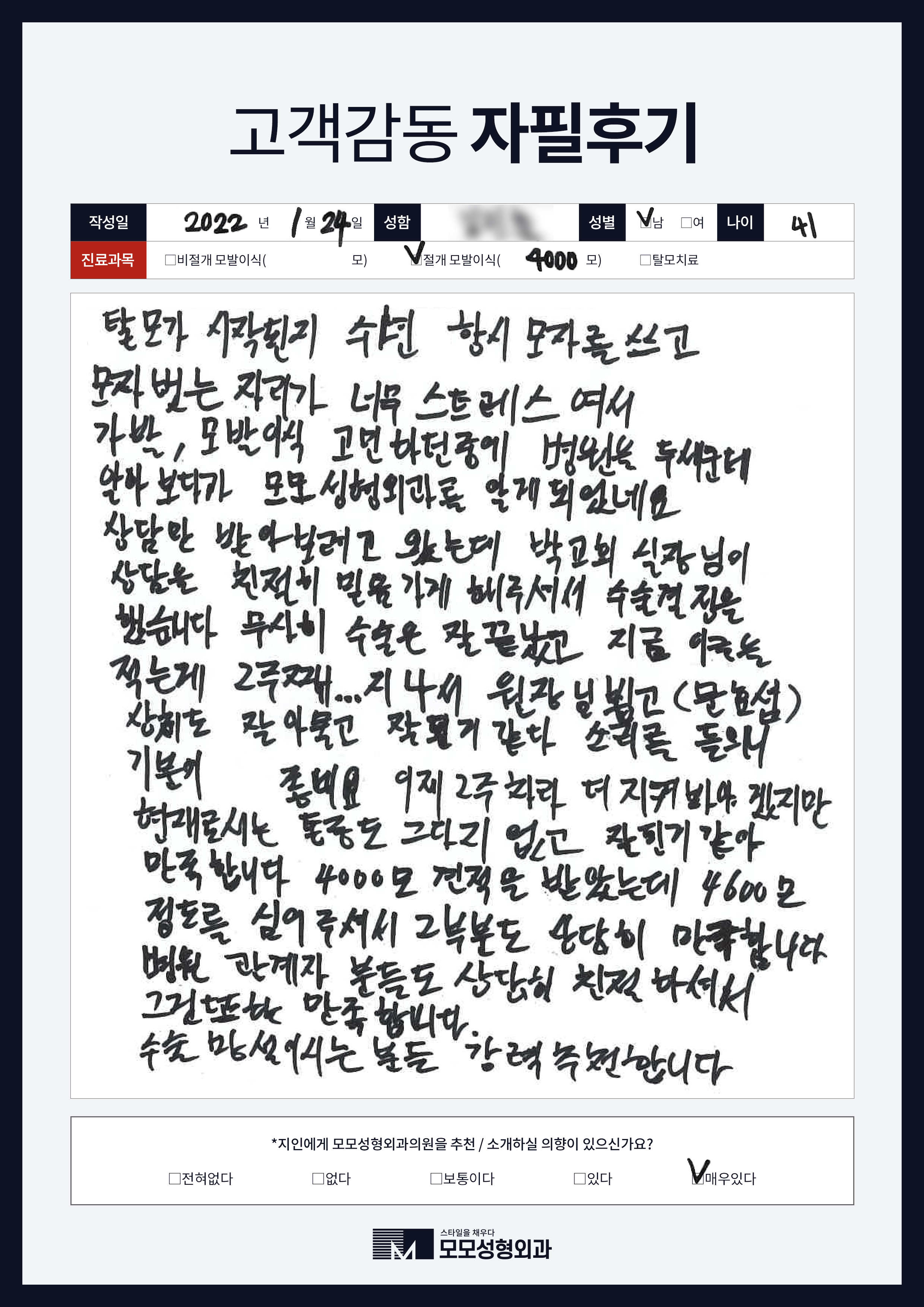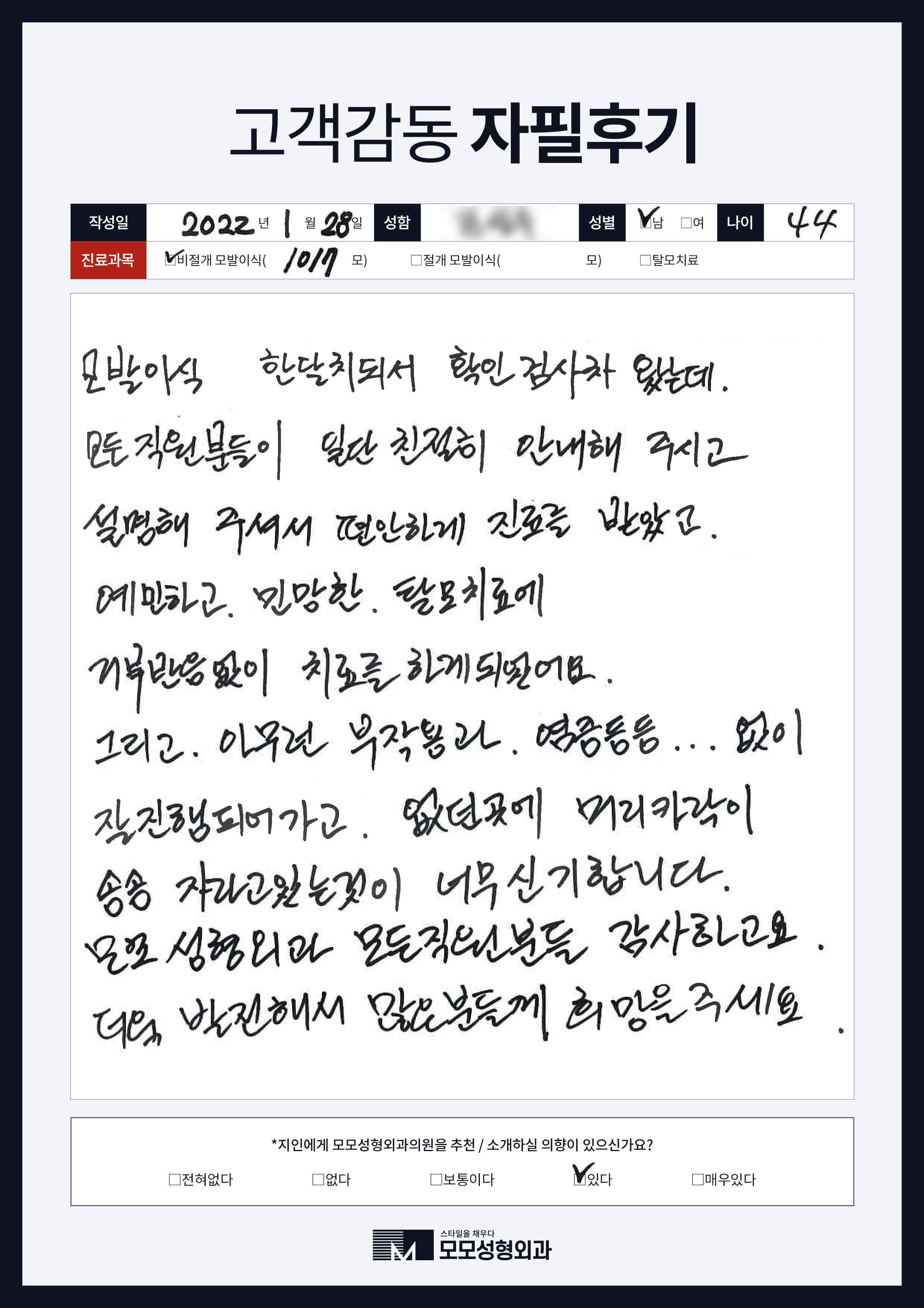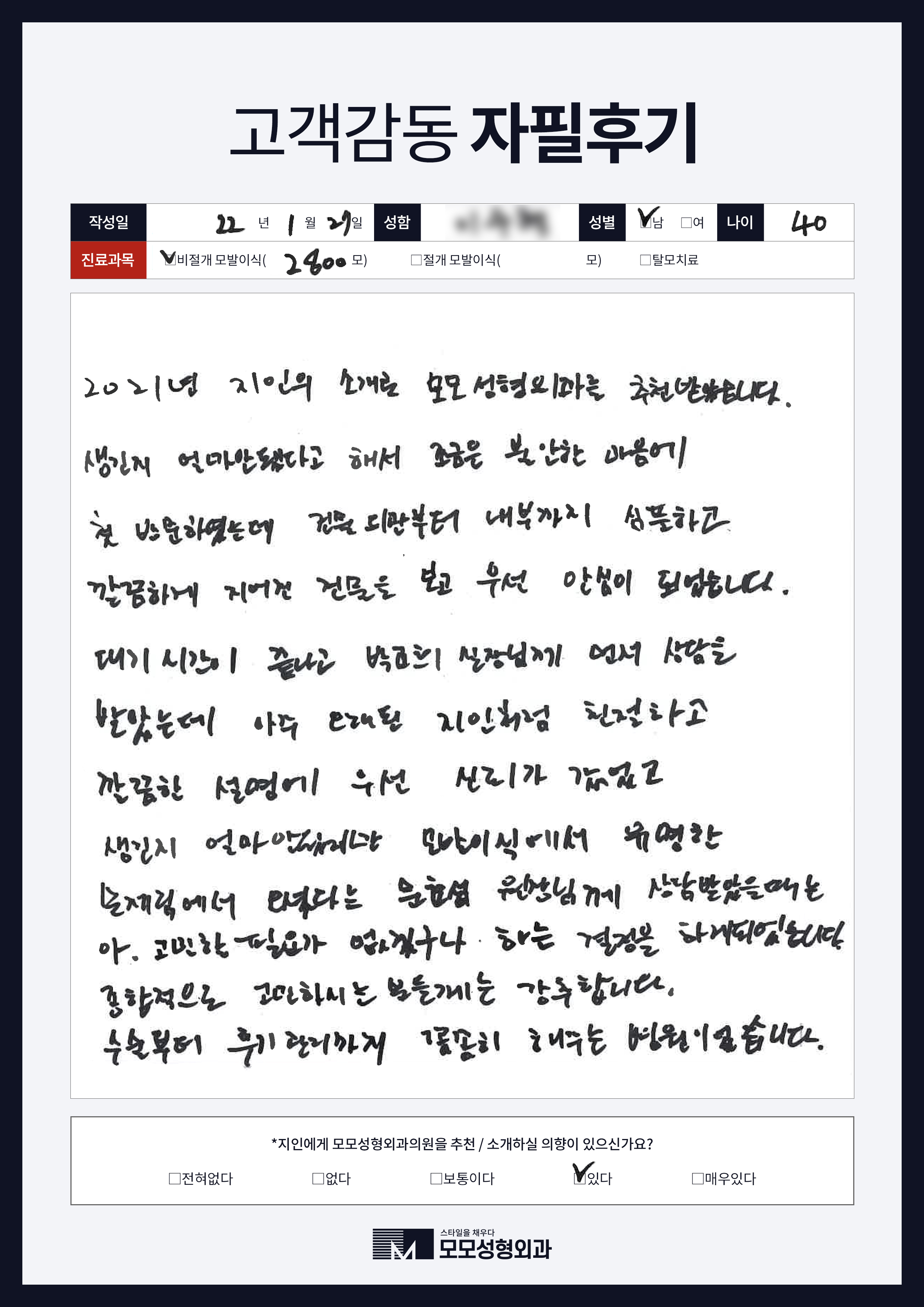 [40대]비절개모발이식3000모, M자이마