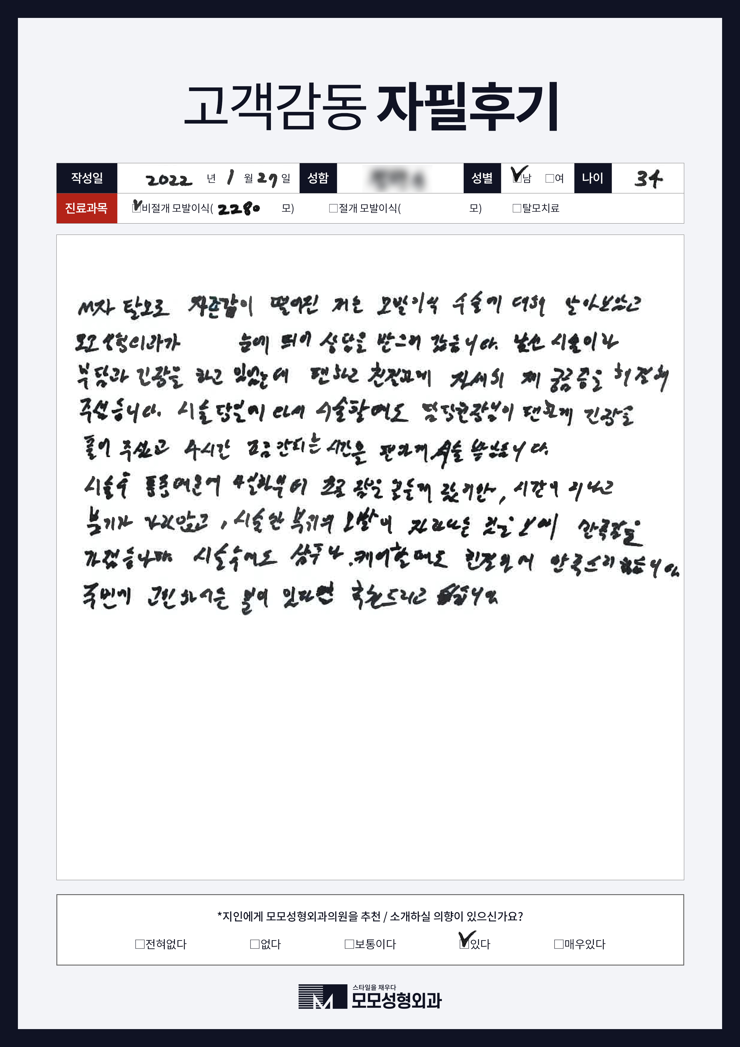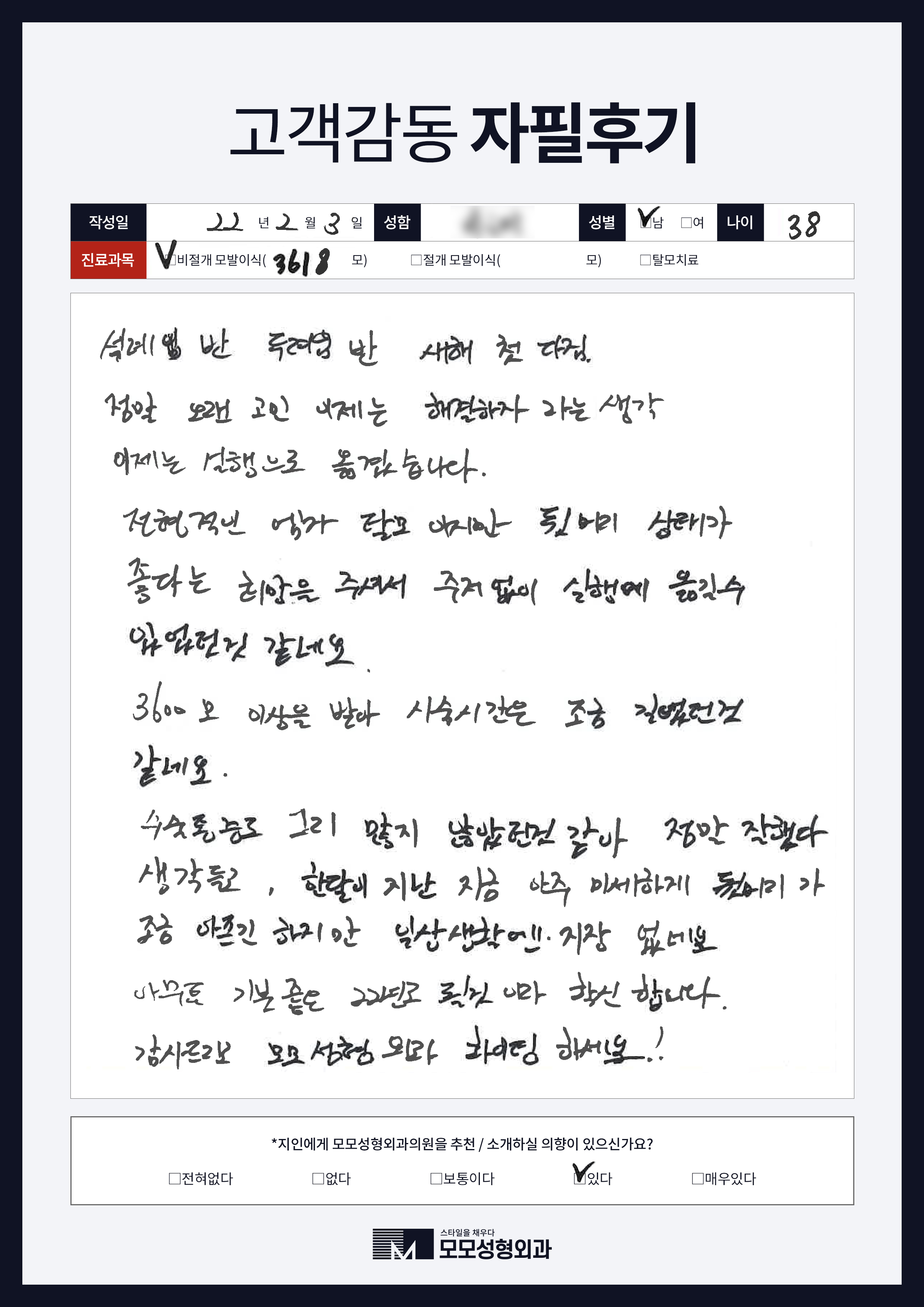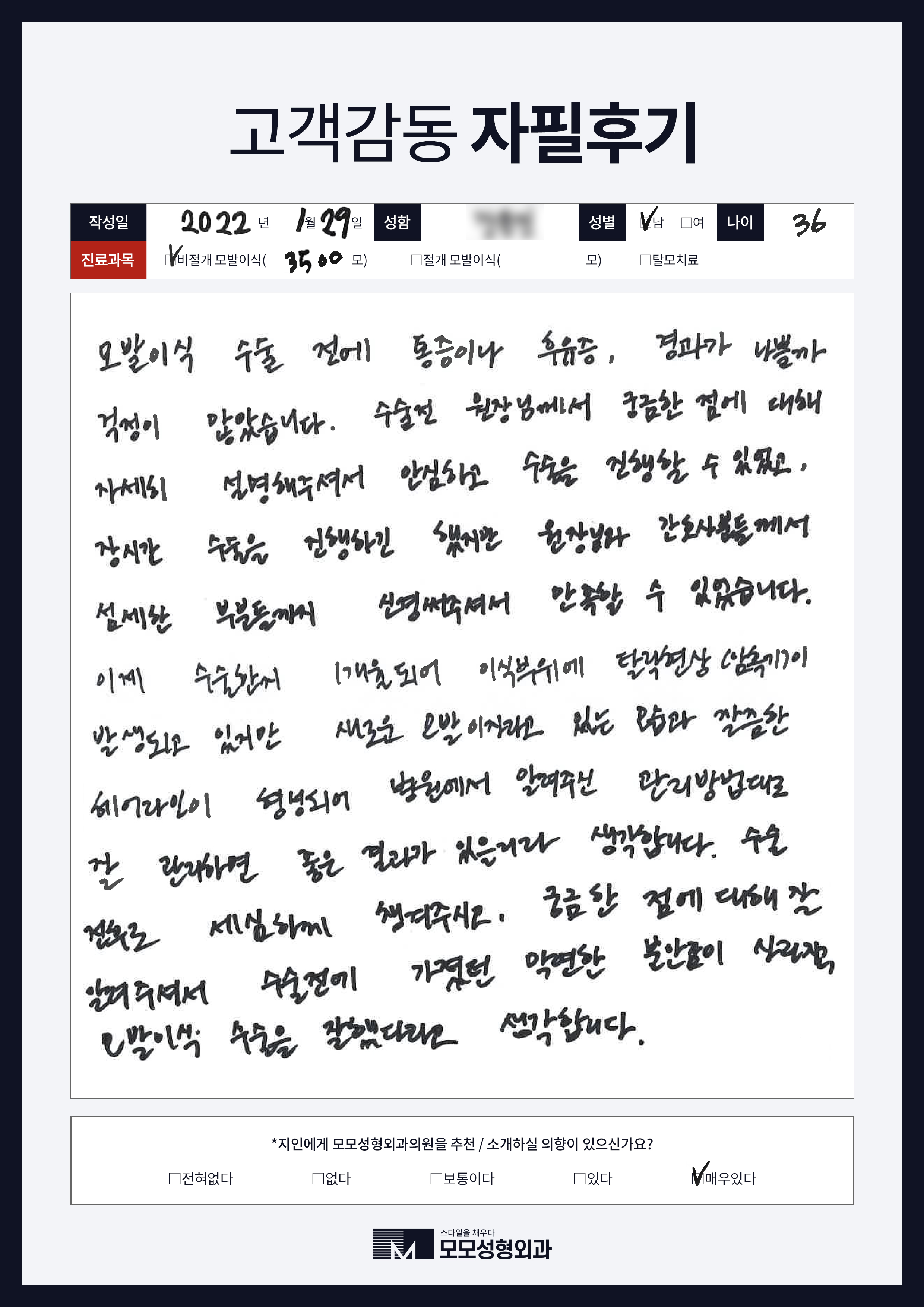 [40대]비절개모발이식3000모, M자이마