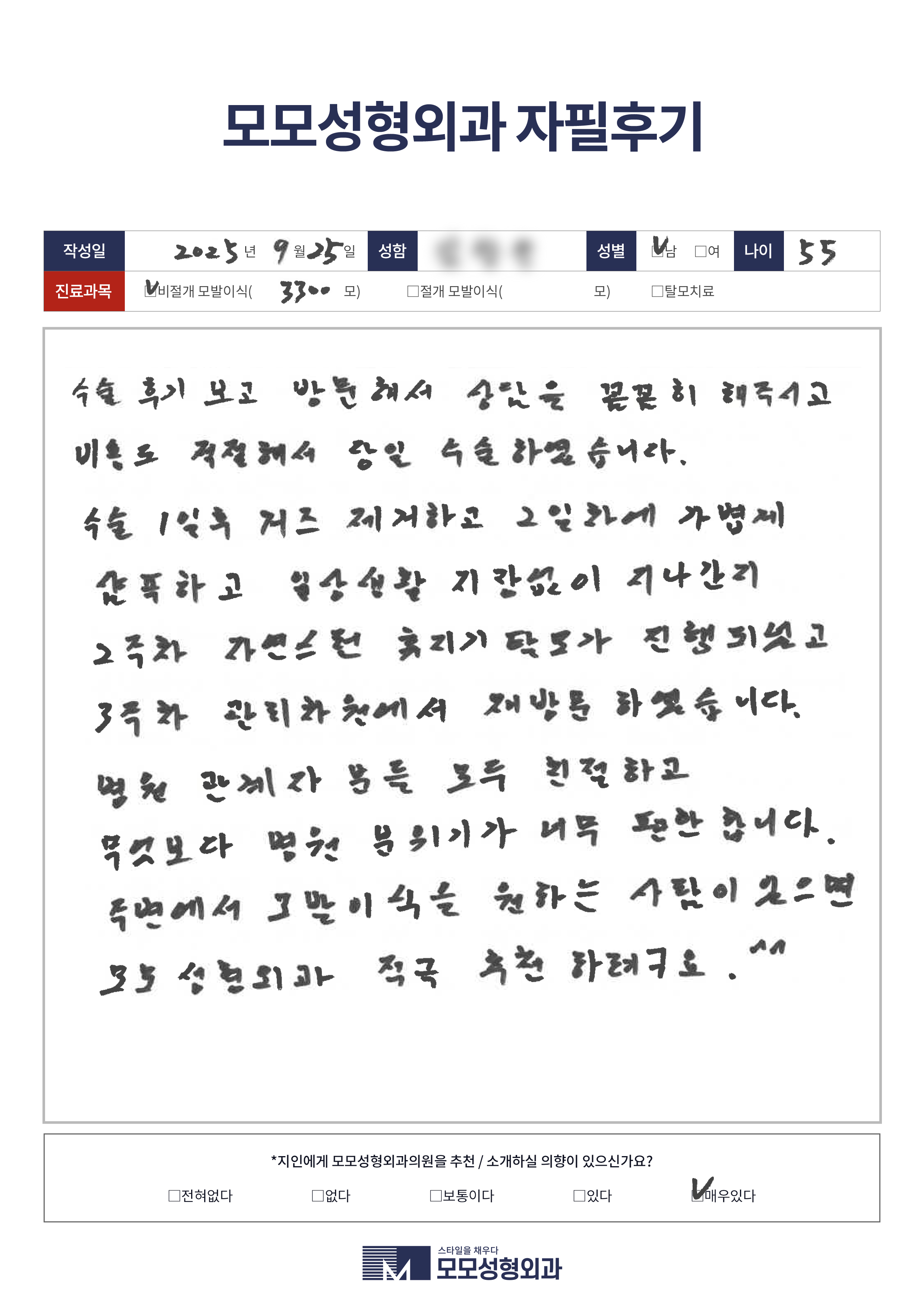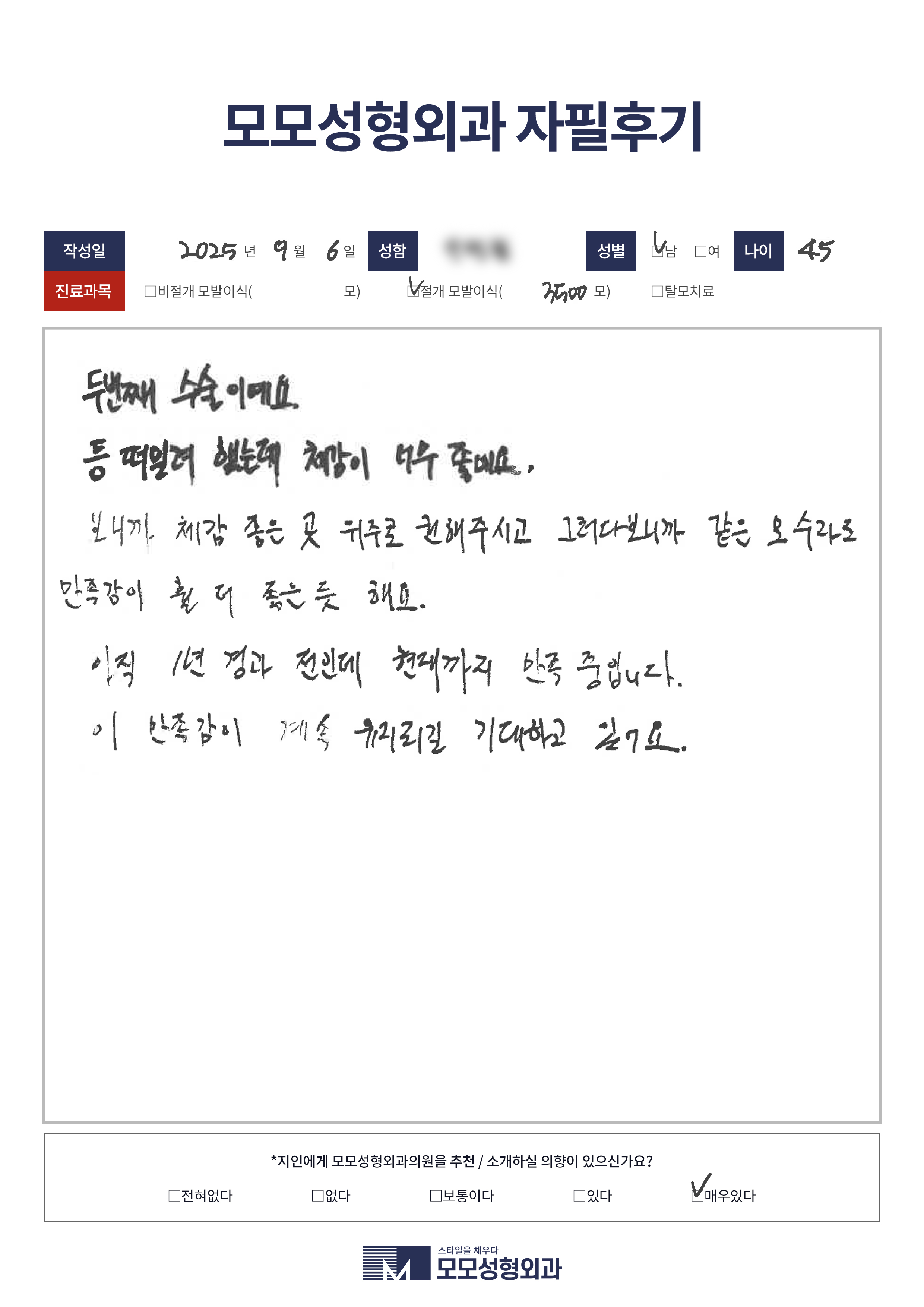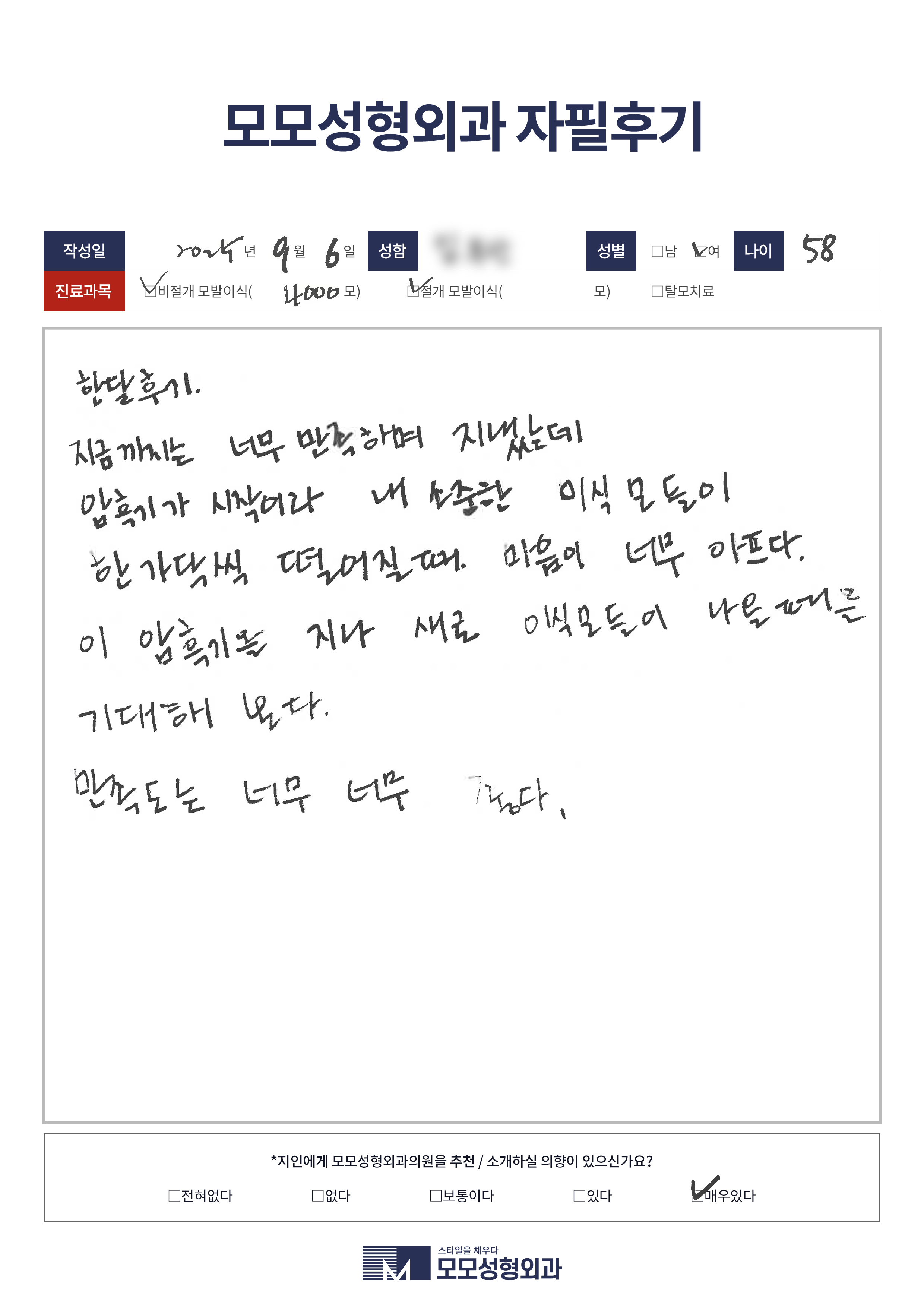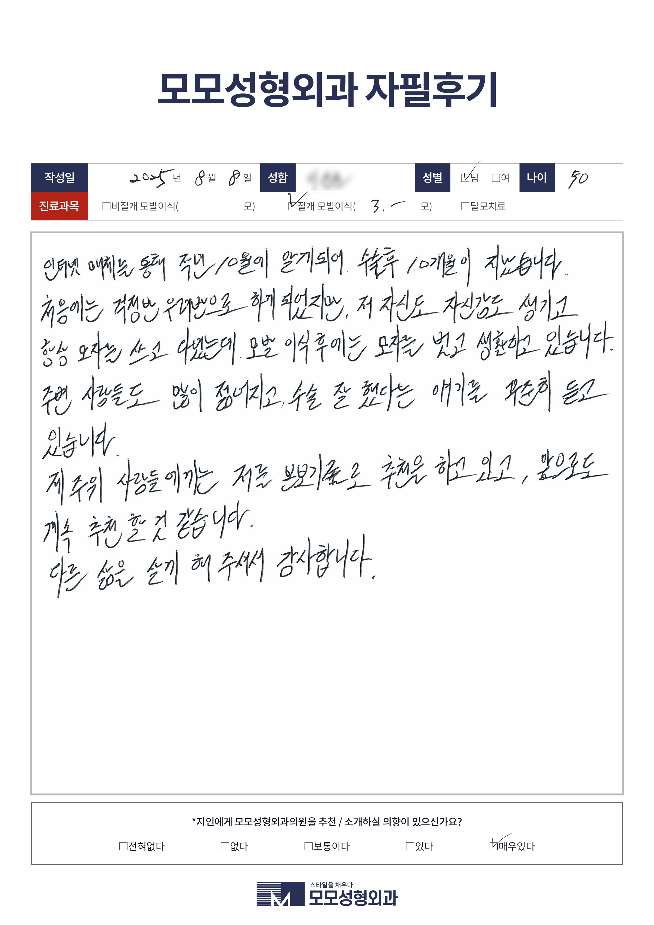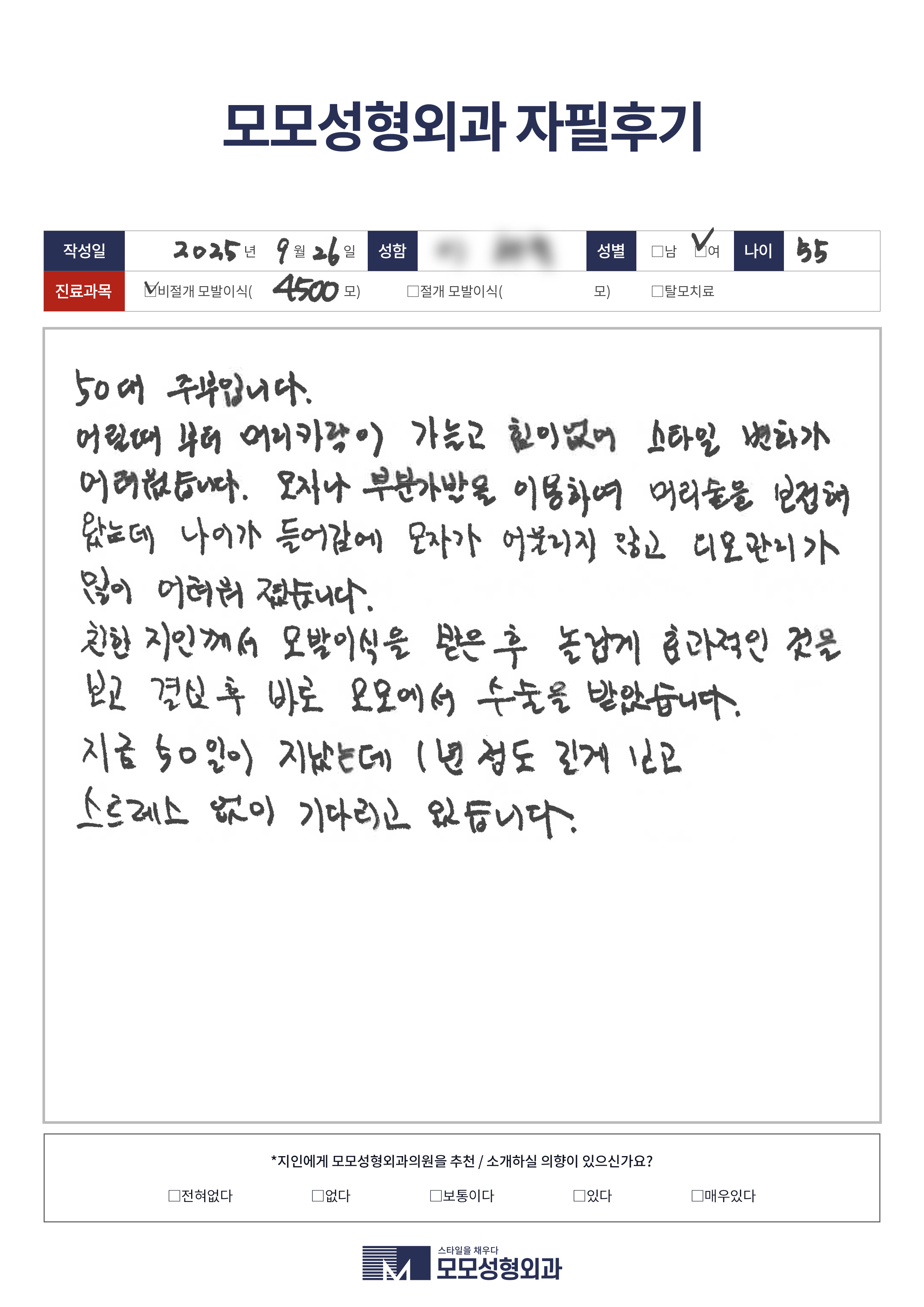 [50대]비절개모발이식
