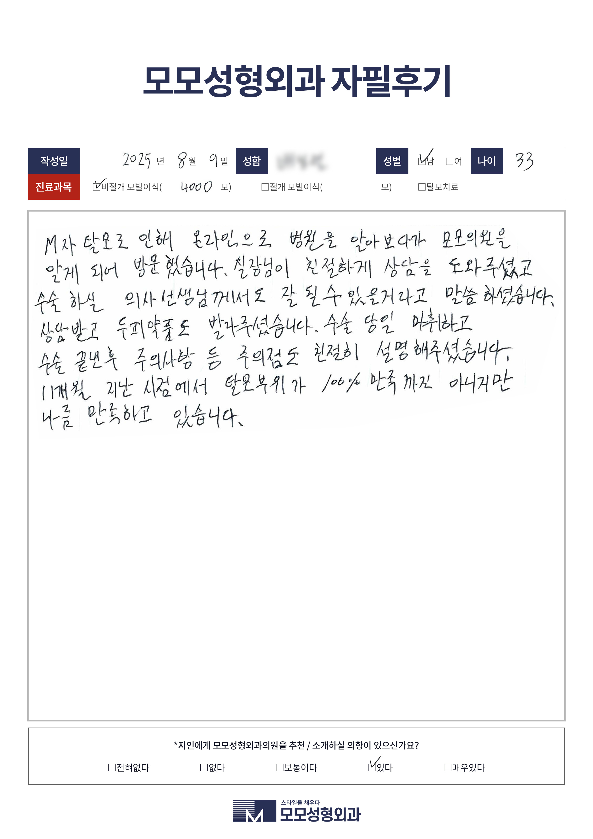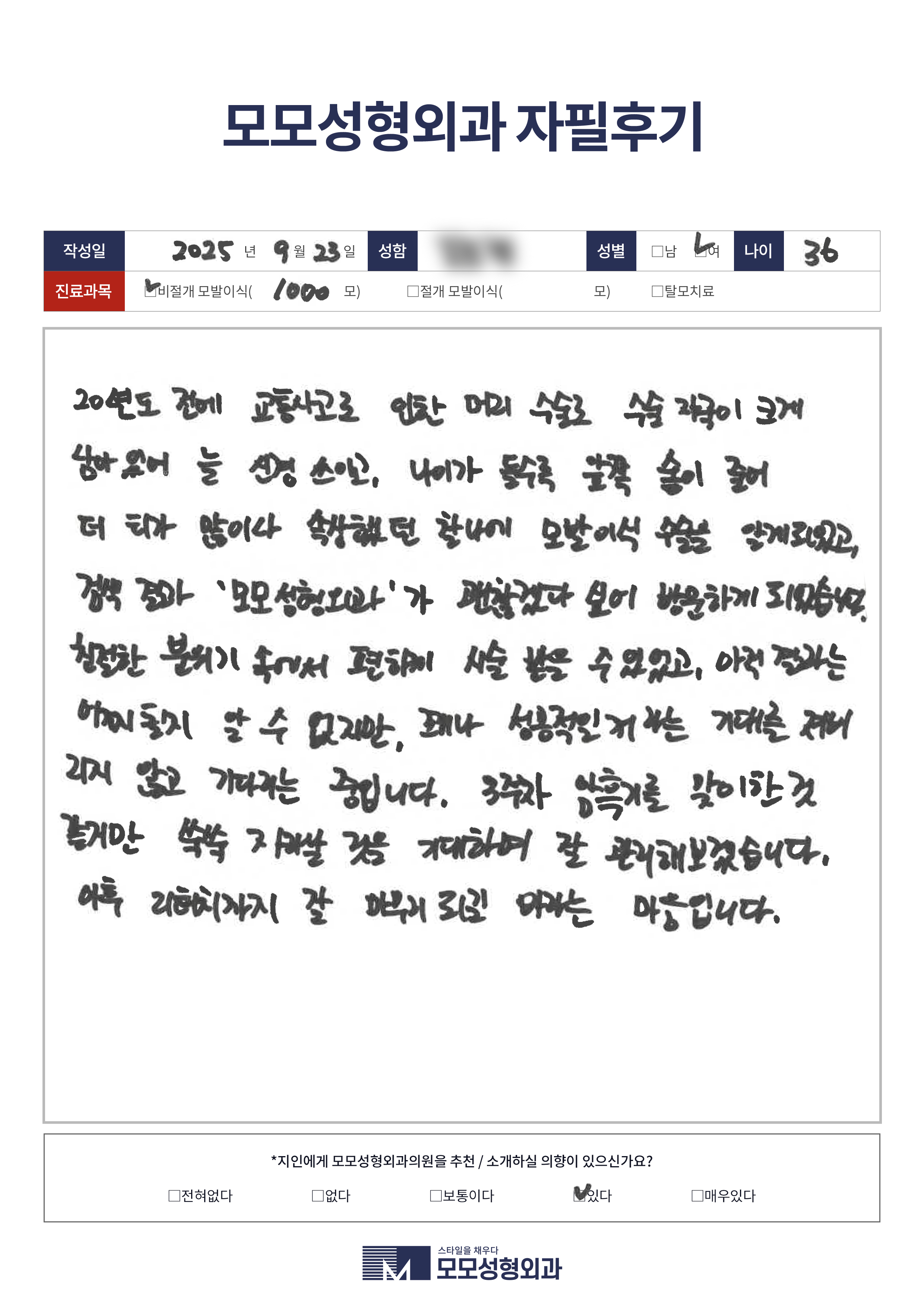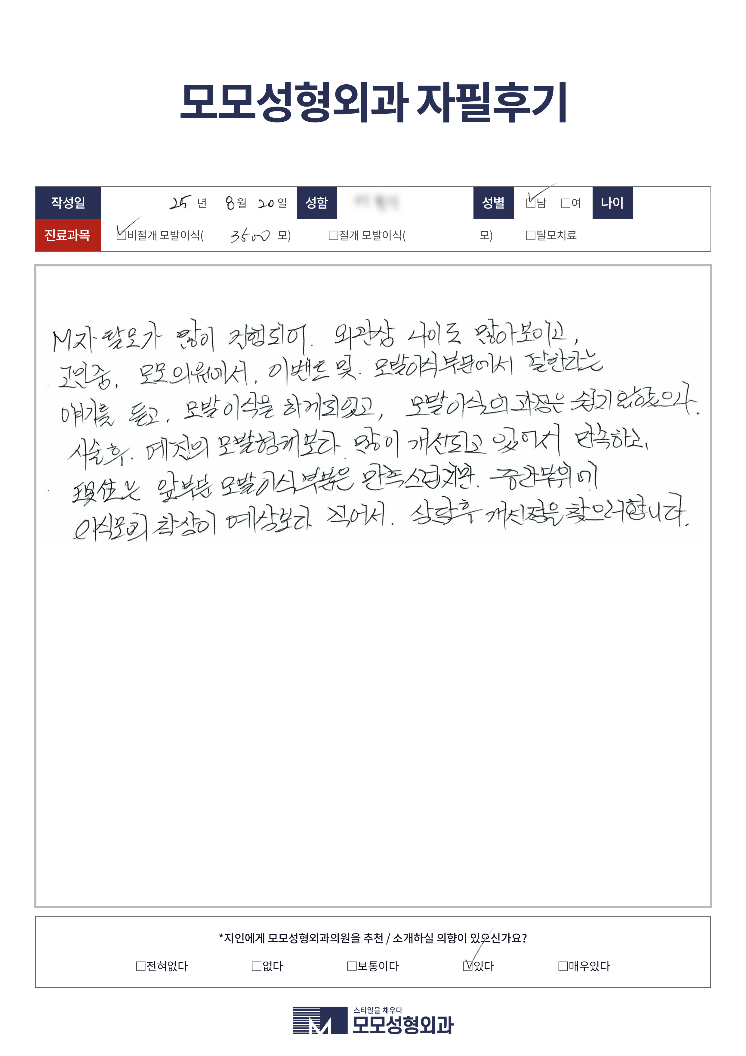 [30대]비절개모발이식