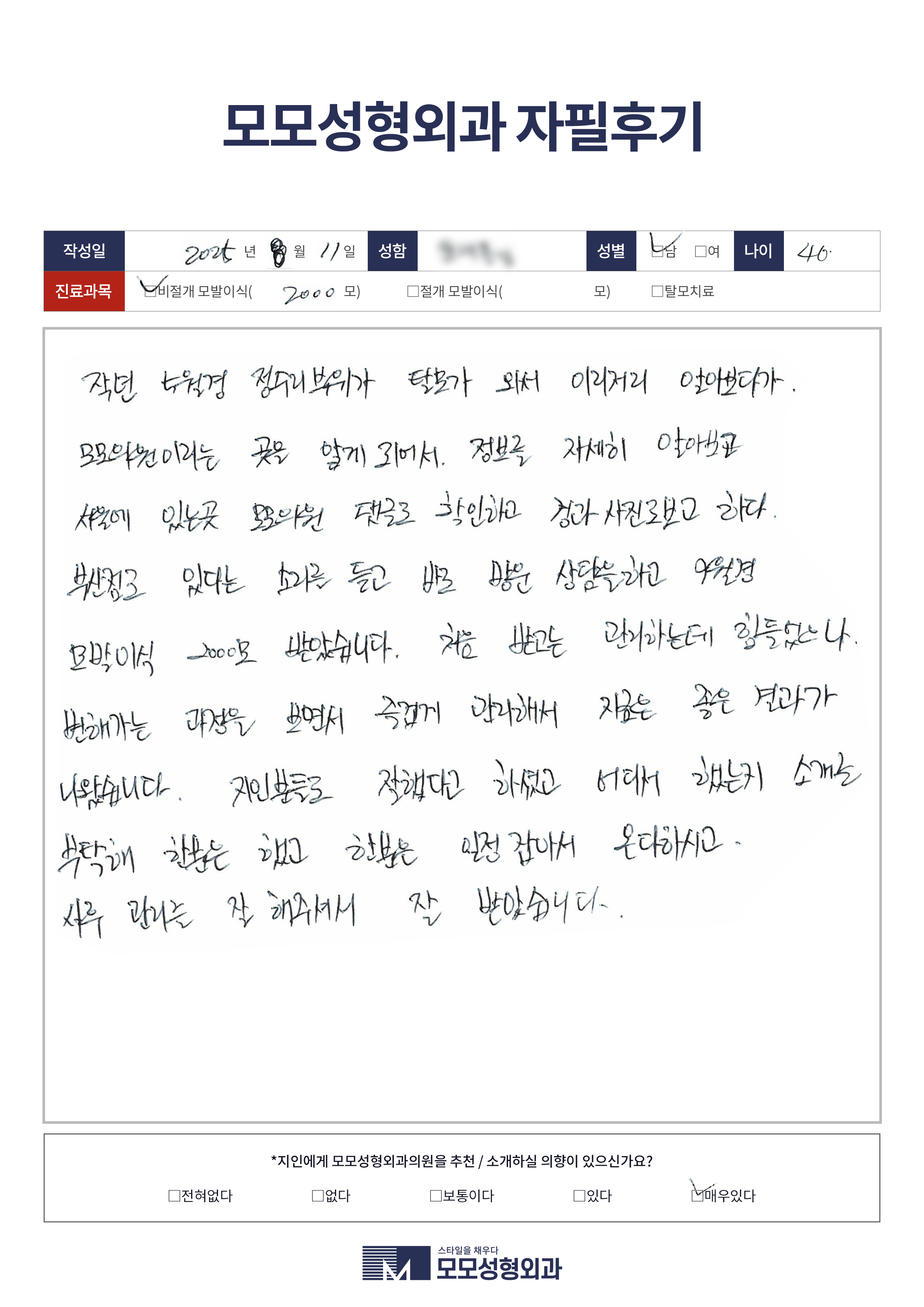 [40대]비절개모발이식
